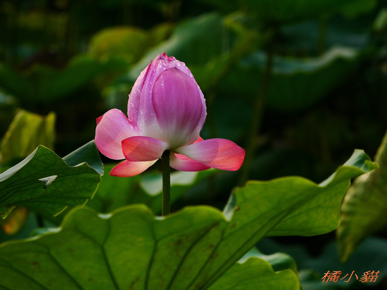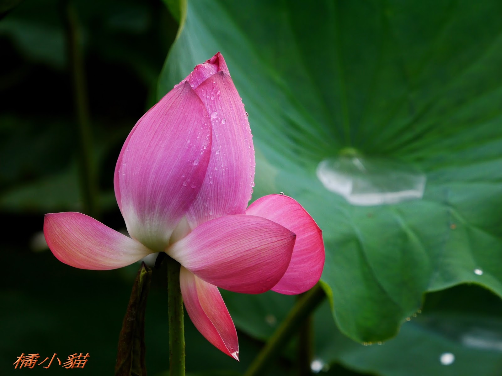 雨中的荷花格外的動人,真希望趕快好天氣,月都還沒賞到荷花呢>"<推