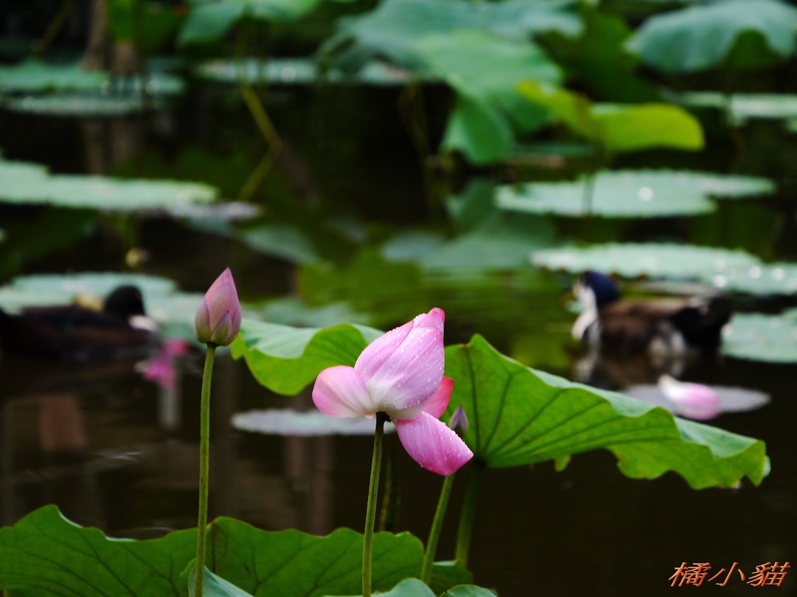 好愛荷花喔~ 不過今年的雨怎麼這麼多 雖說有雨滴也增添了許多的意境 還好最後不小心打到了鳥 有失必有得~~~