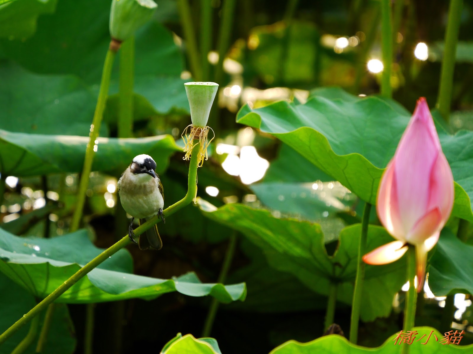 雨荷最美囉 還有小白頭翁喔 推