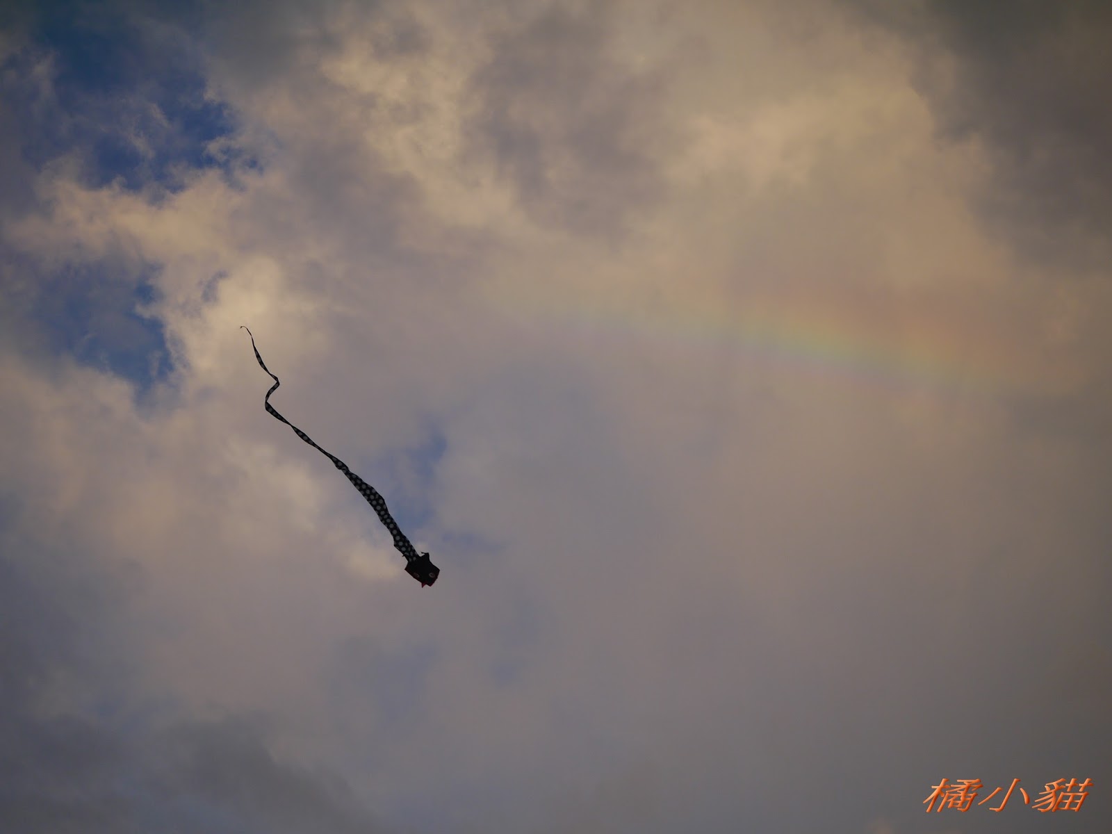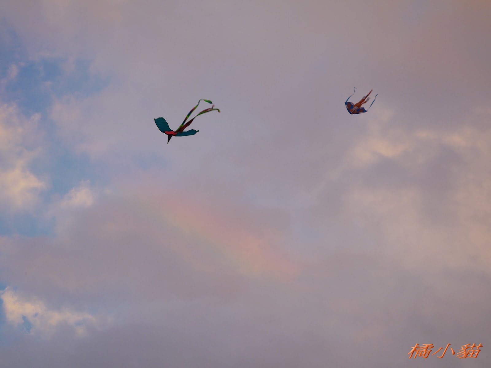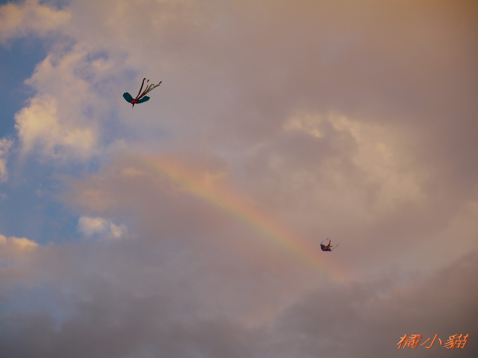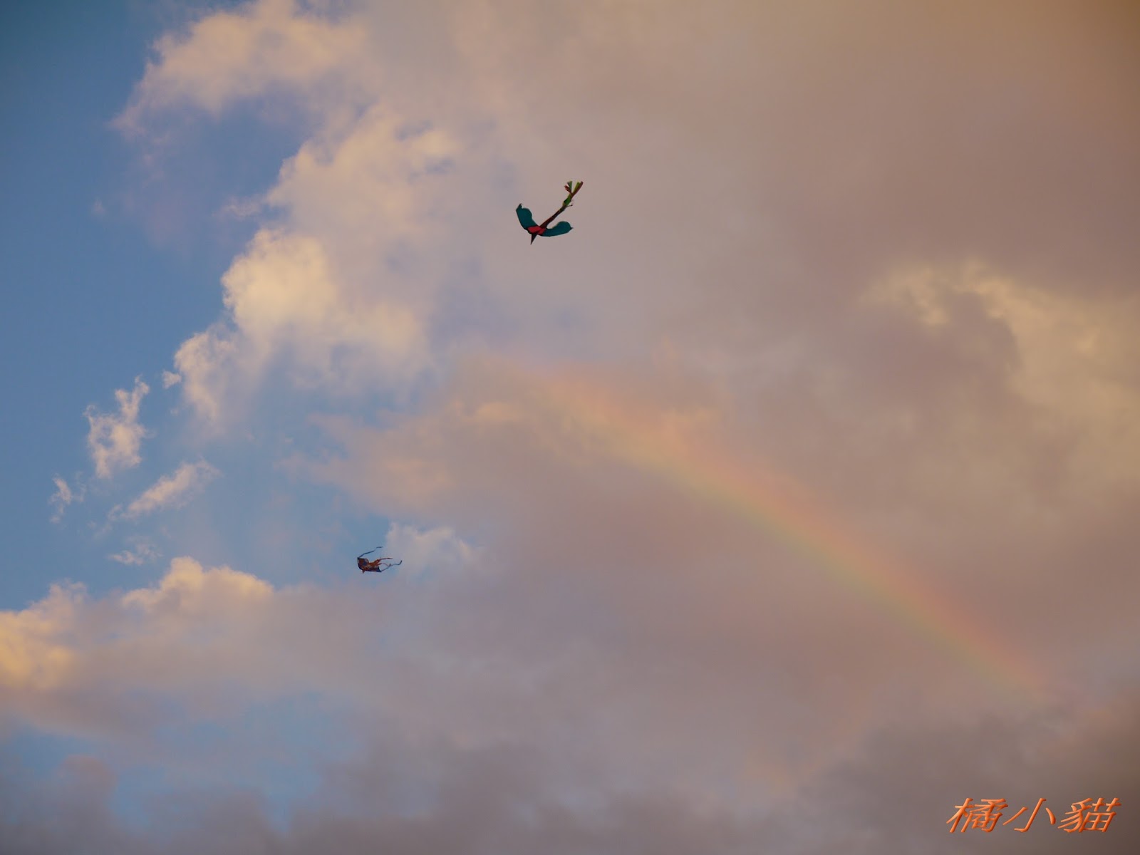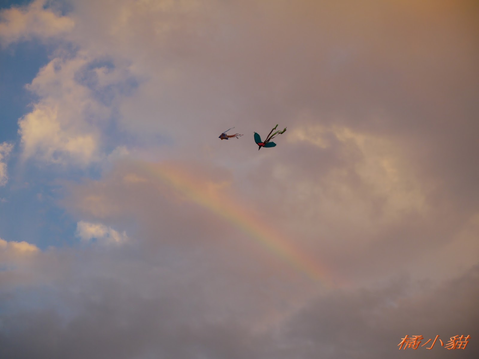 秋天風大很適合放風箏 拍風箏還可以拍到彩虹真難得耶