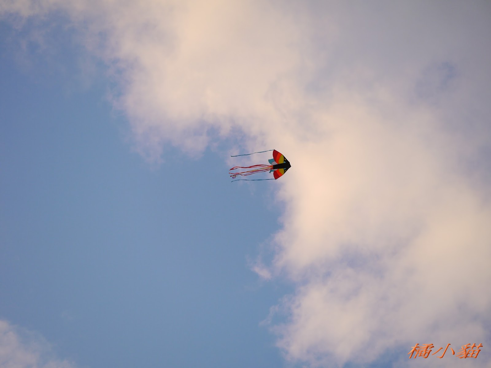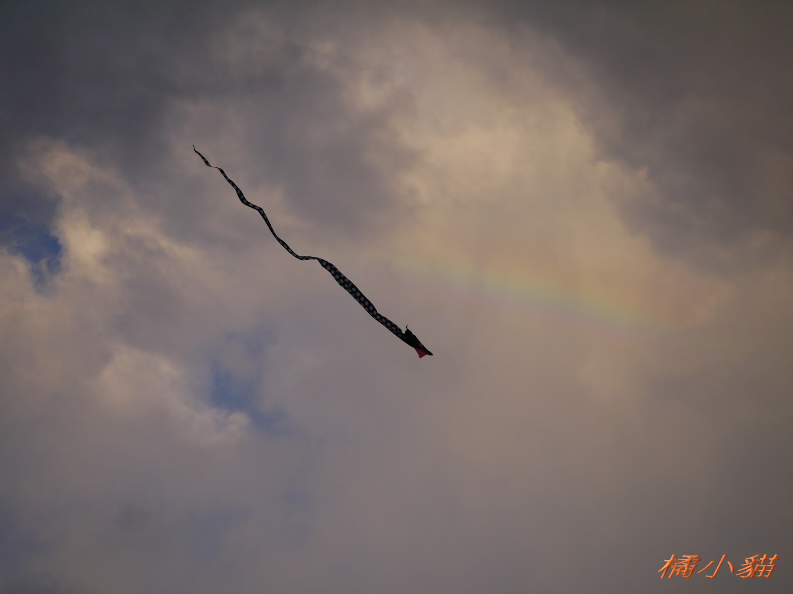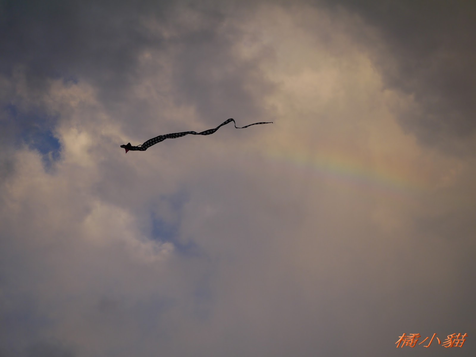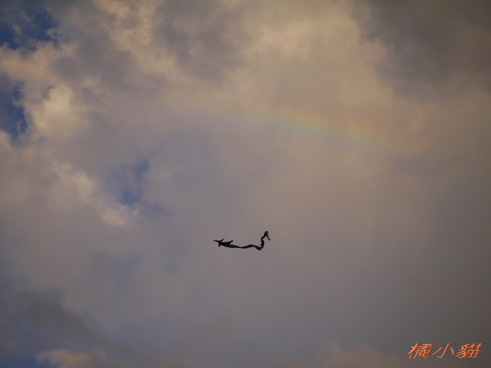 秋天風大很適合放風箏 拍風箏還可以拍到彩虹真難得耶