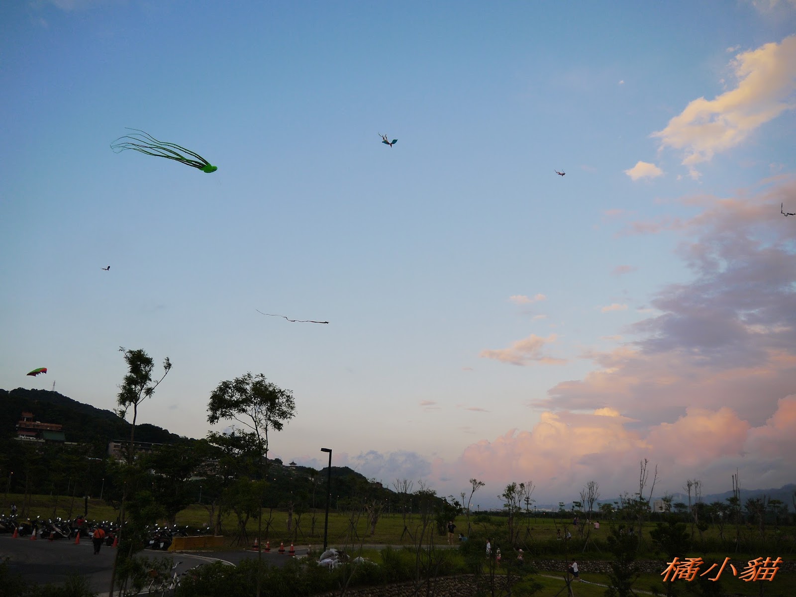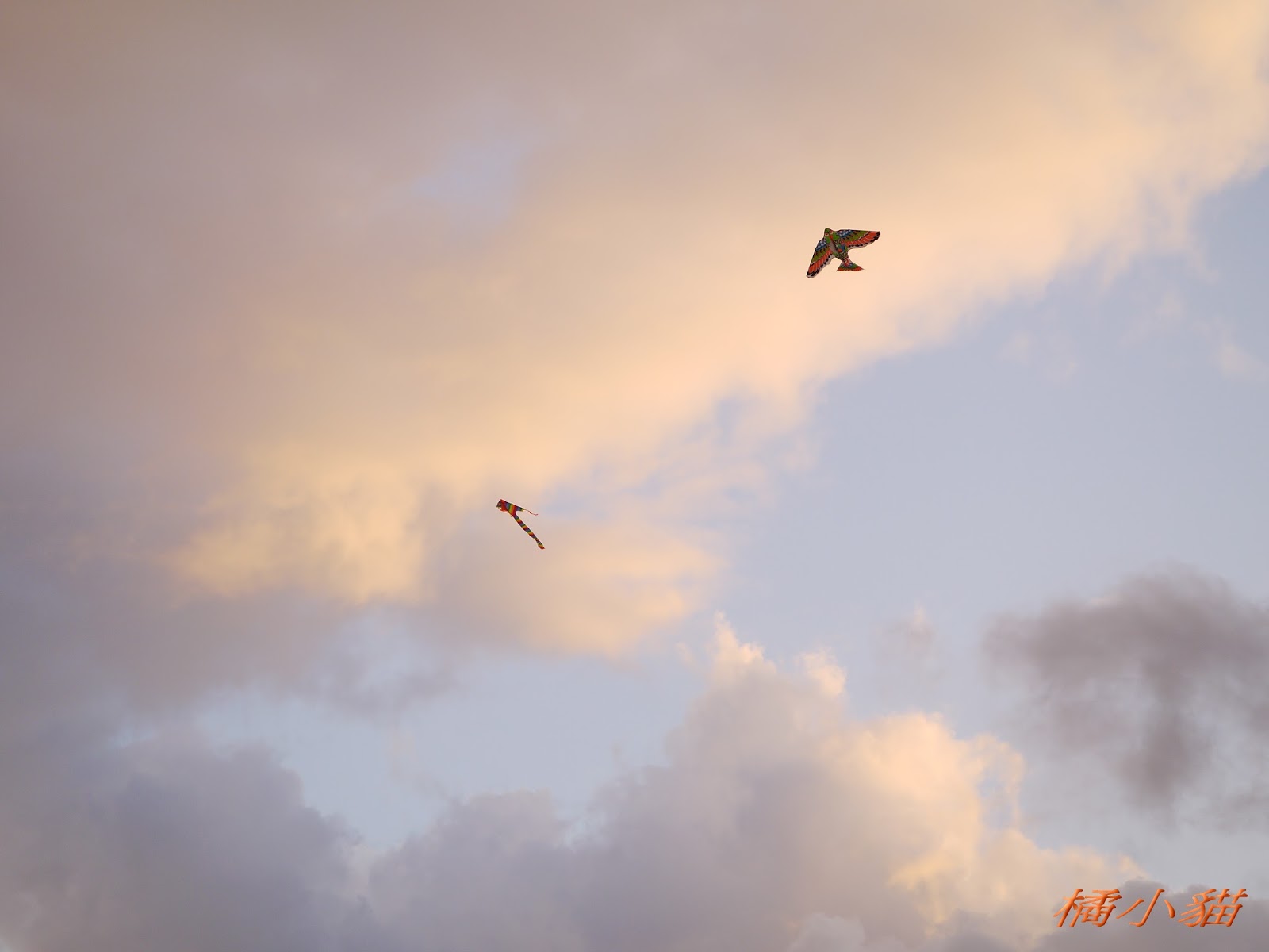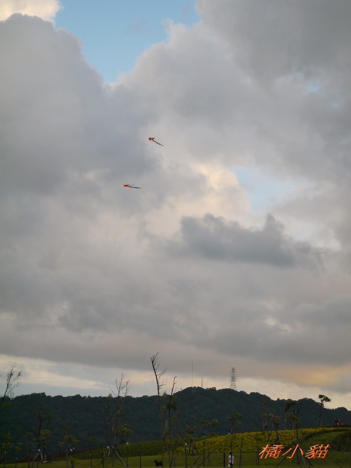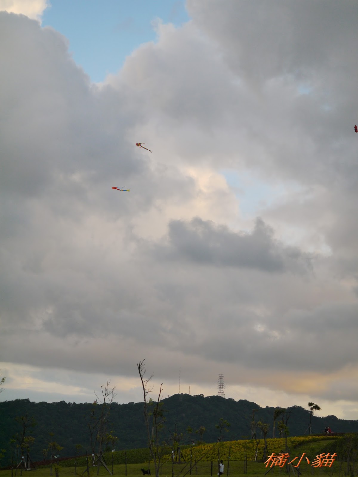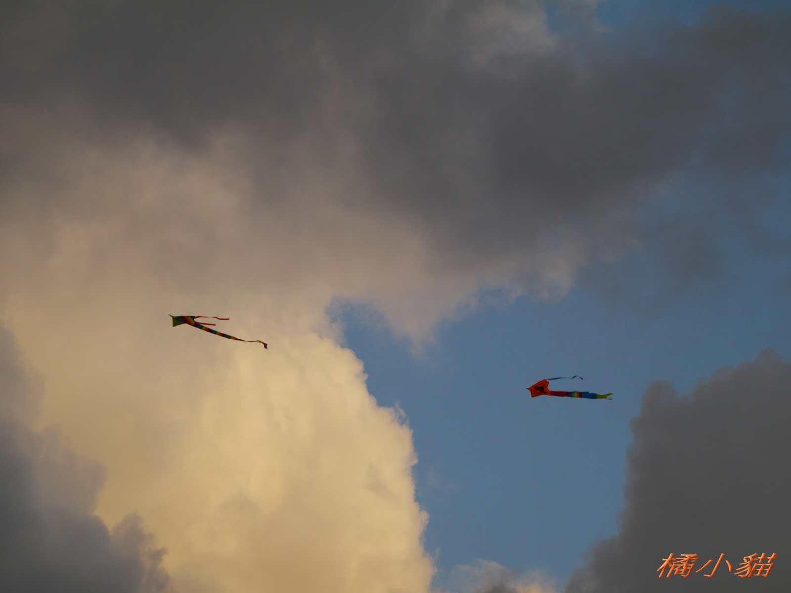 秋天風大很適合放風箏 拍風箏還可以拍到彩虹真難得耶