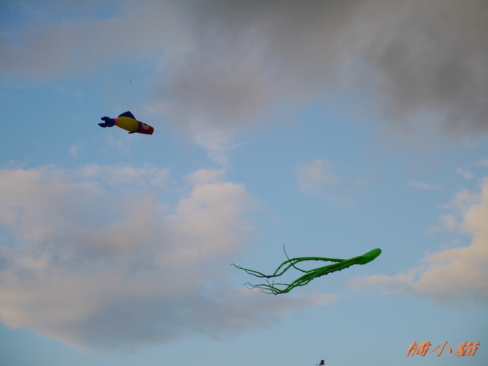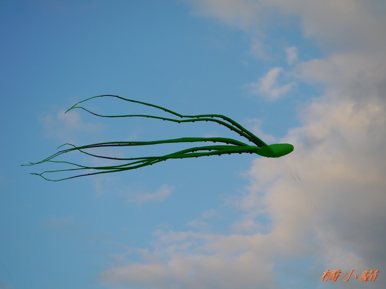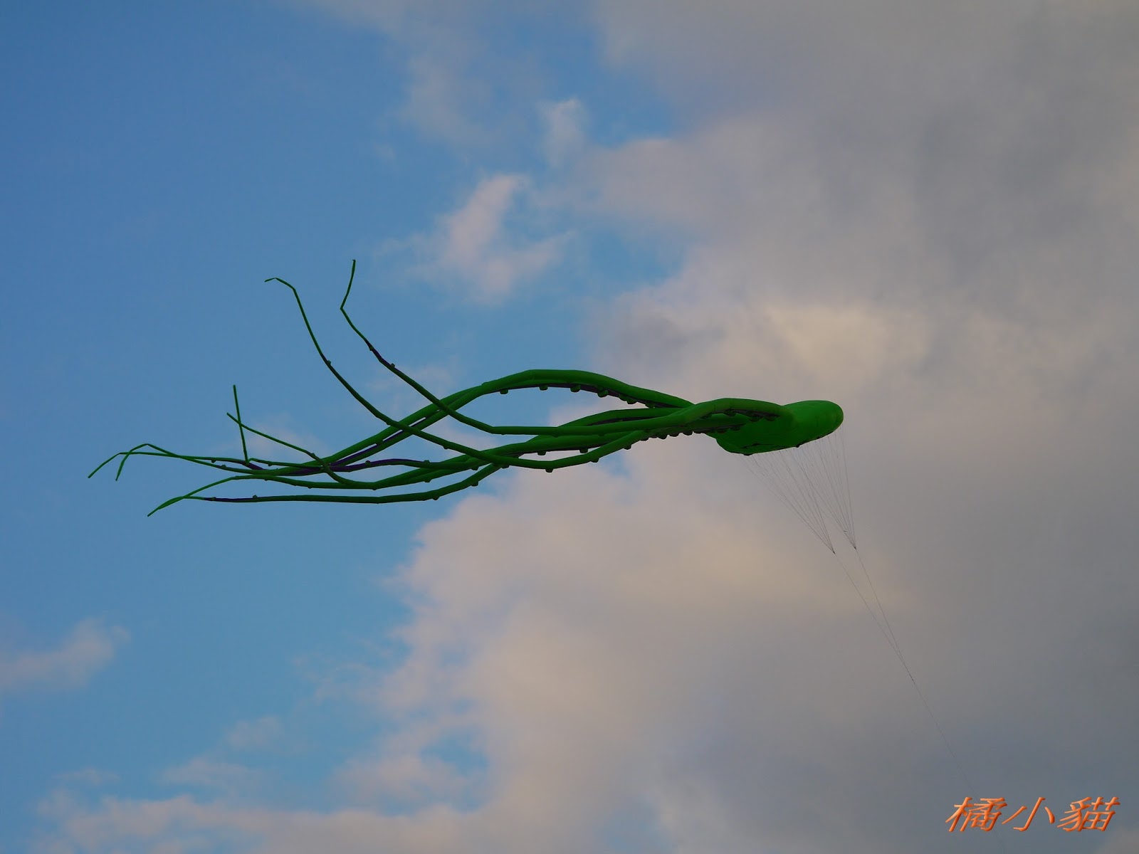 聽說 那隻大章魚 假日都會在鶯歌附近那個河堤邊 是賣風箏人的噱頭說