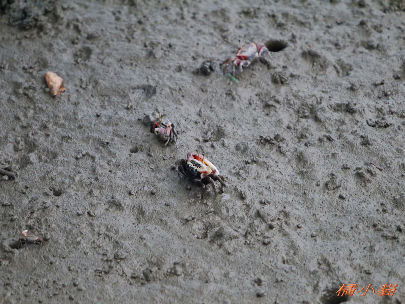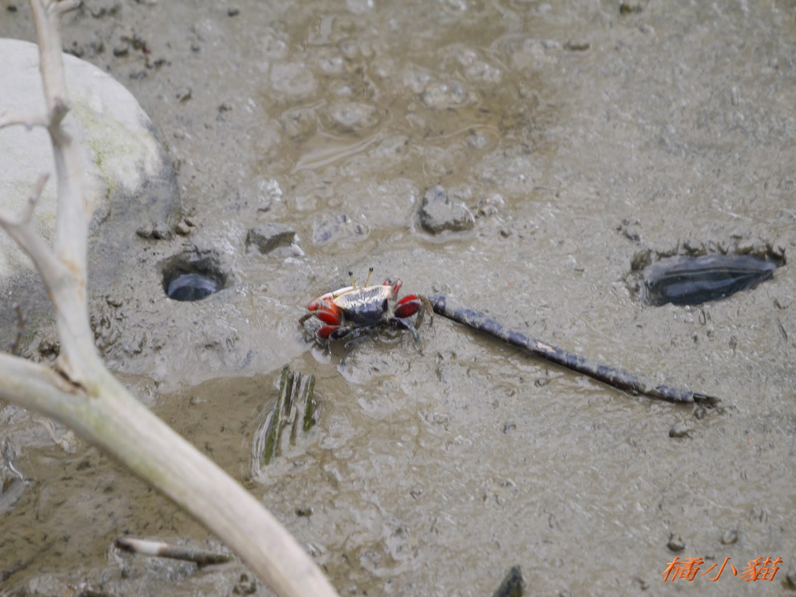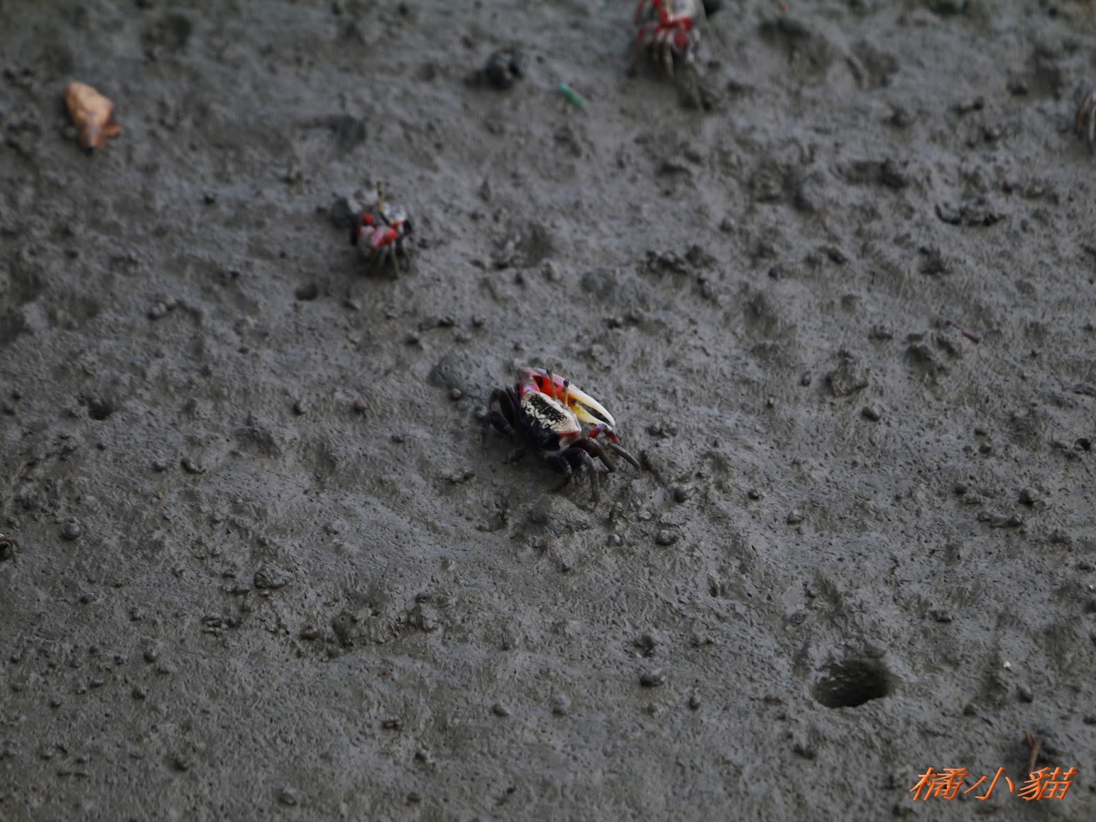 所以我就說 我這隻貓真的很幸運 我...拍的時後 沒看到她嘴裡有魚 回家才看到的 雖然遠了點 但也還滿清楚的 呵呵~ 然後...那個螃蟹 很怕人ㄟ 我一靠近就溜了 所以 只能超遠超遠拍 拍起來超小隻的拉