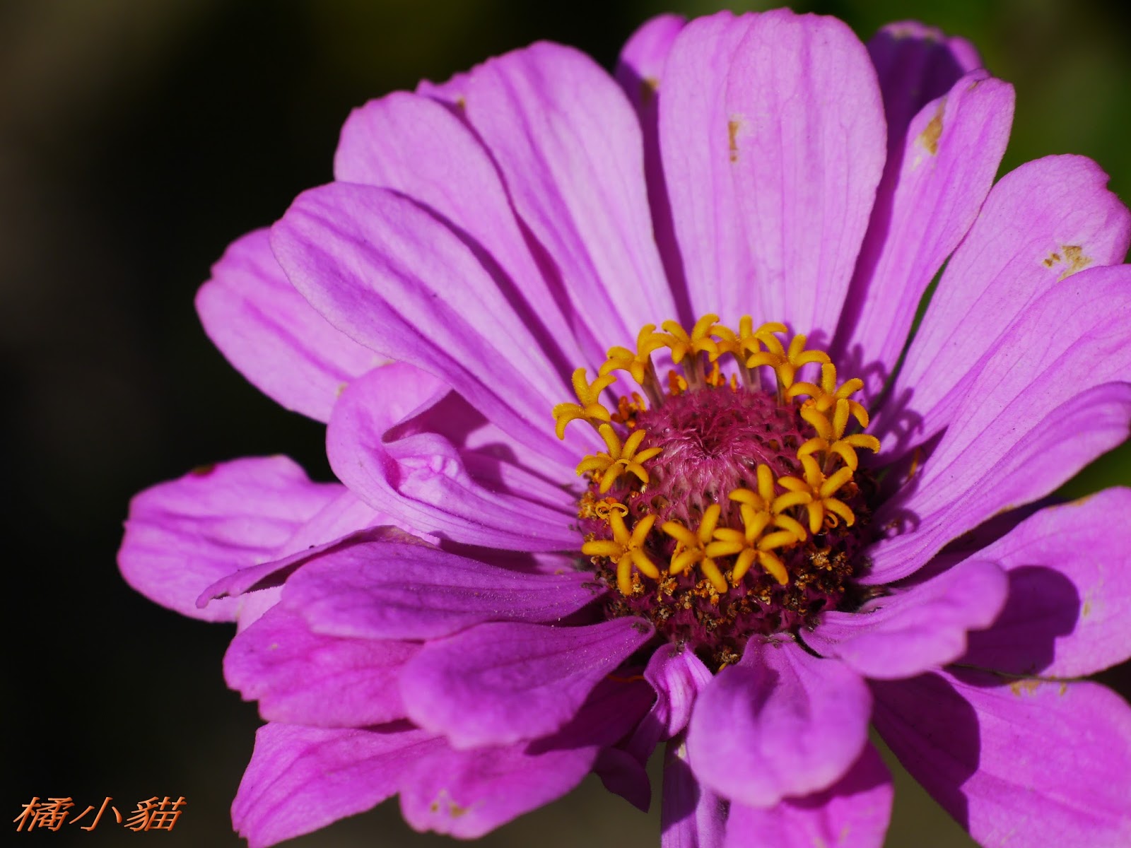 家裡養貓又養狗,幸福的家庭~~ 玻斯菊的特寫拍得漂亮~~