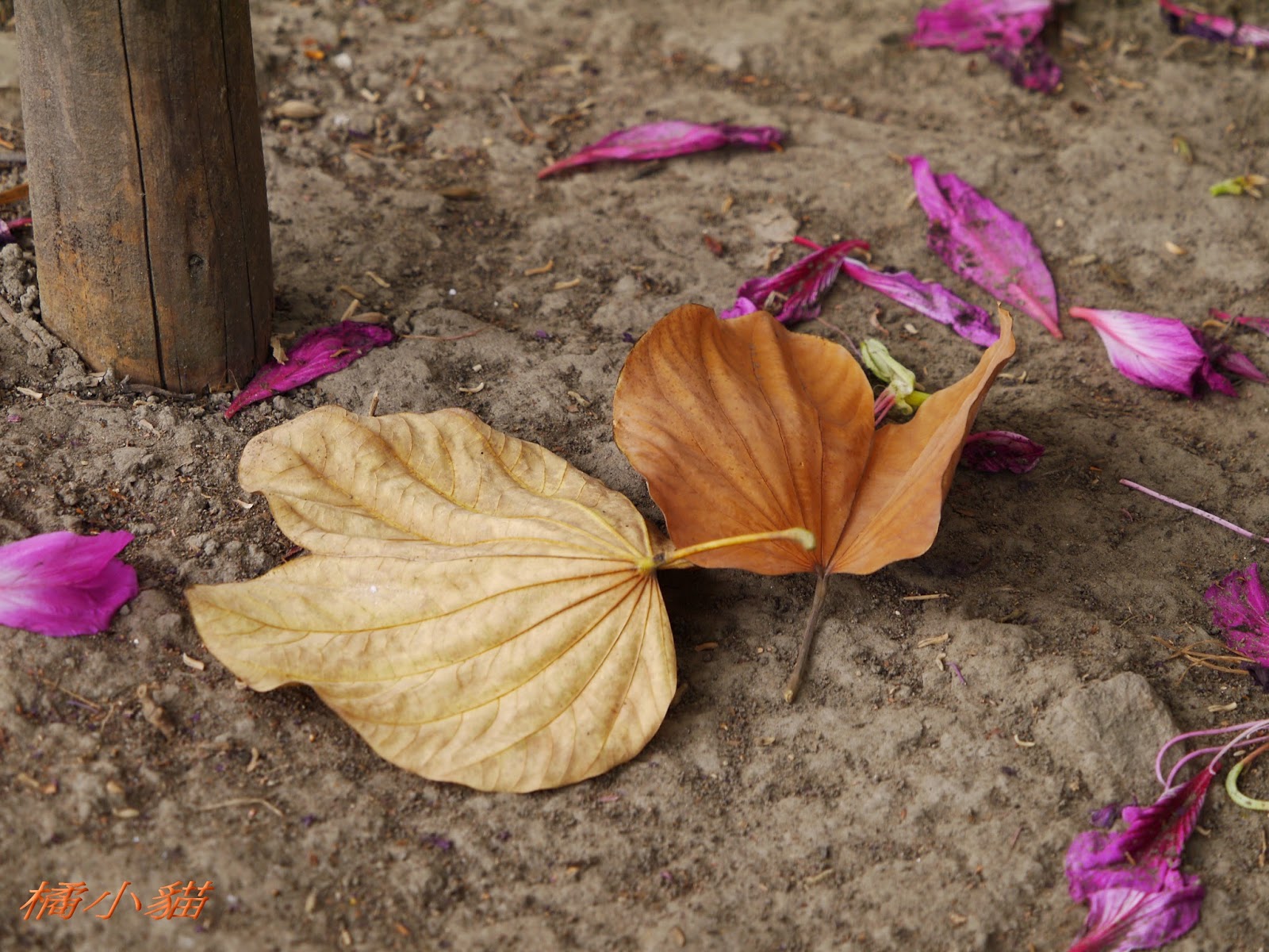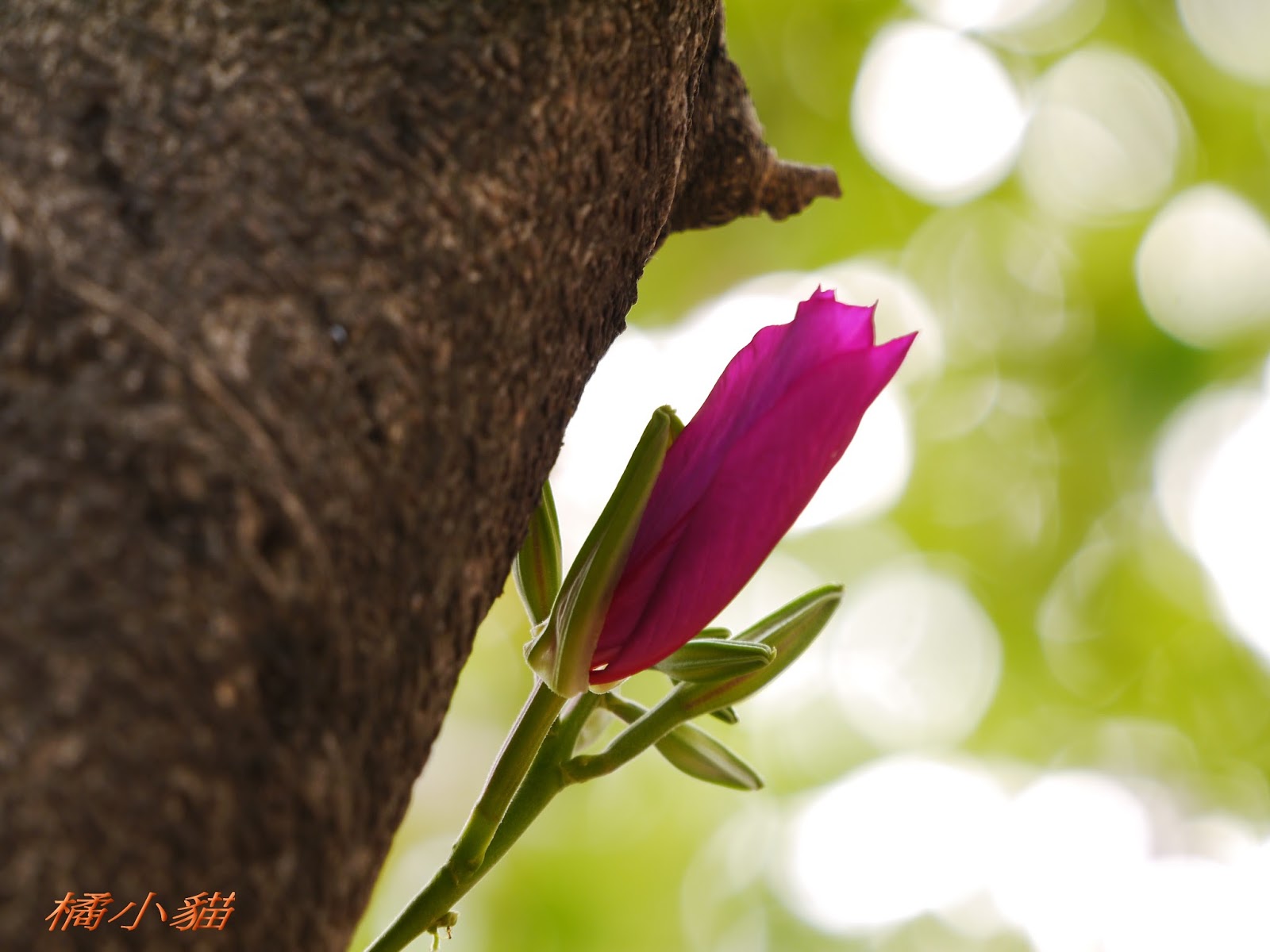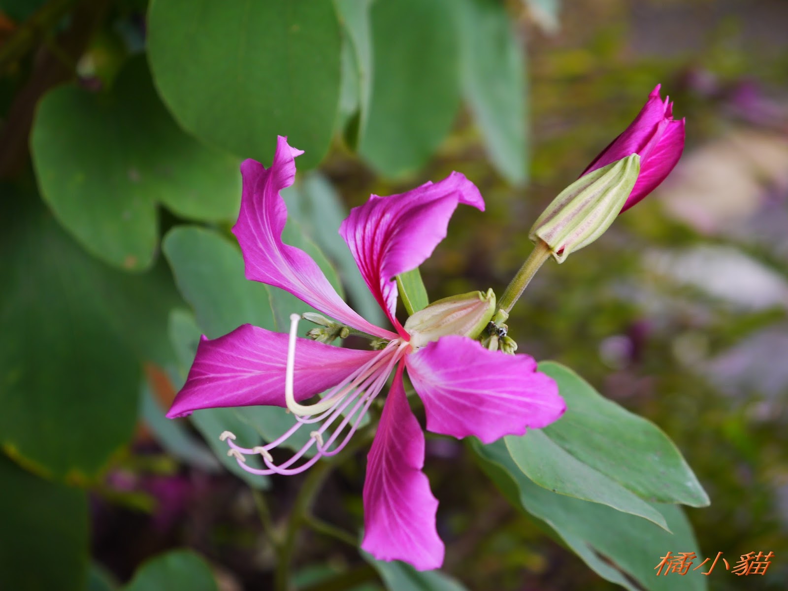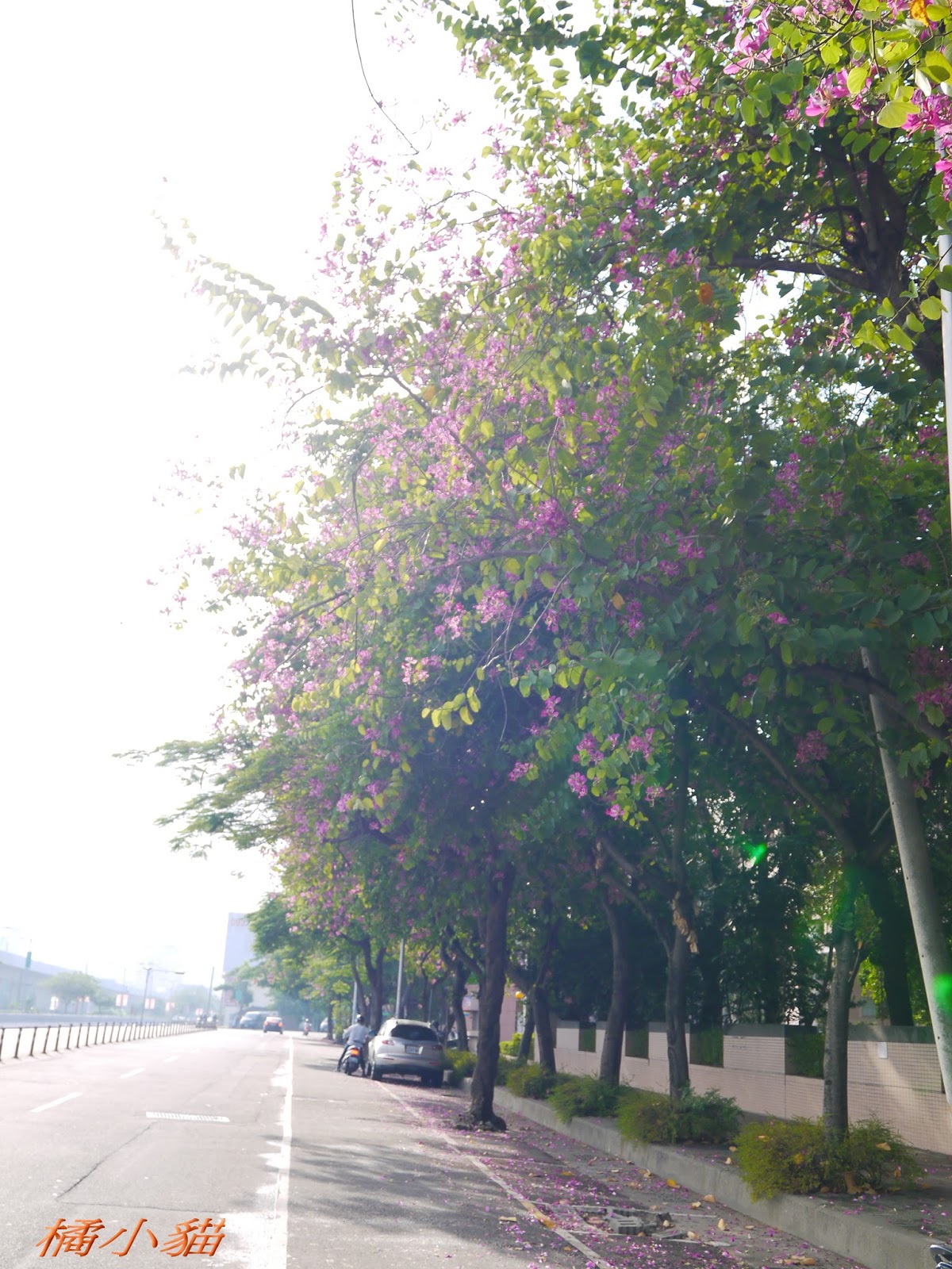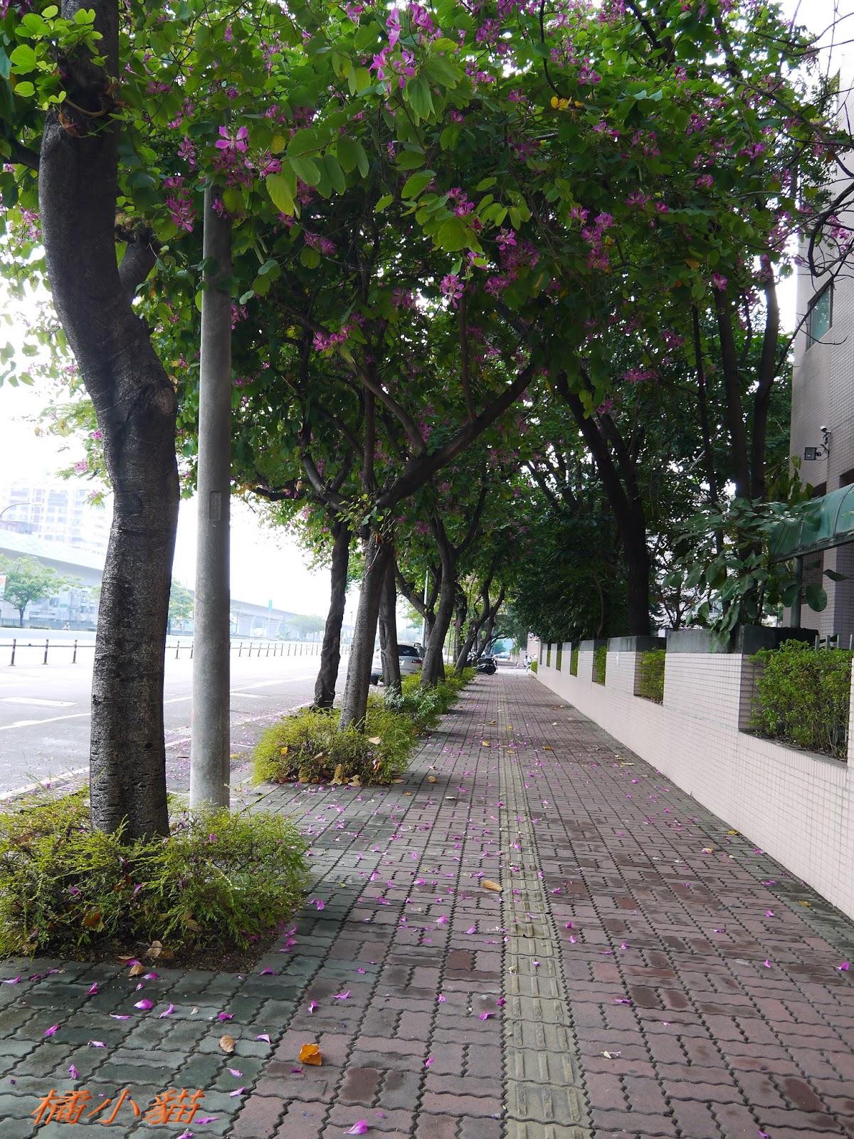 這豔紫荊好眼熟~~~好像是光明~~居仁~~女中前面j附近~~ 建國南路鐵路旁也種一大排~~開花期風一吹~~片片花瓣隨風飄逸~~ 真是美~~ 原來~~橘小貓原本的顏色是綠綠的~~
