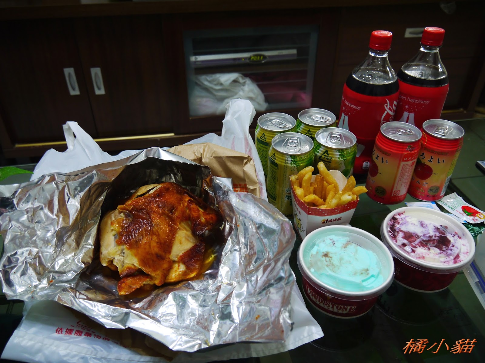 哈~ 結果只吃掉半隻雞 半盒冰淇淋 2灌水果酒 其他的 還在我家冰箱說