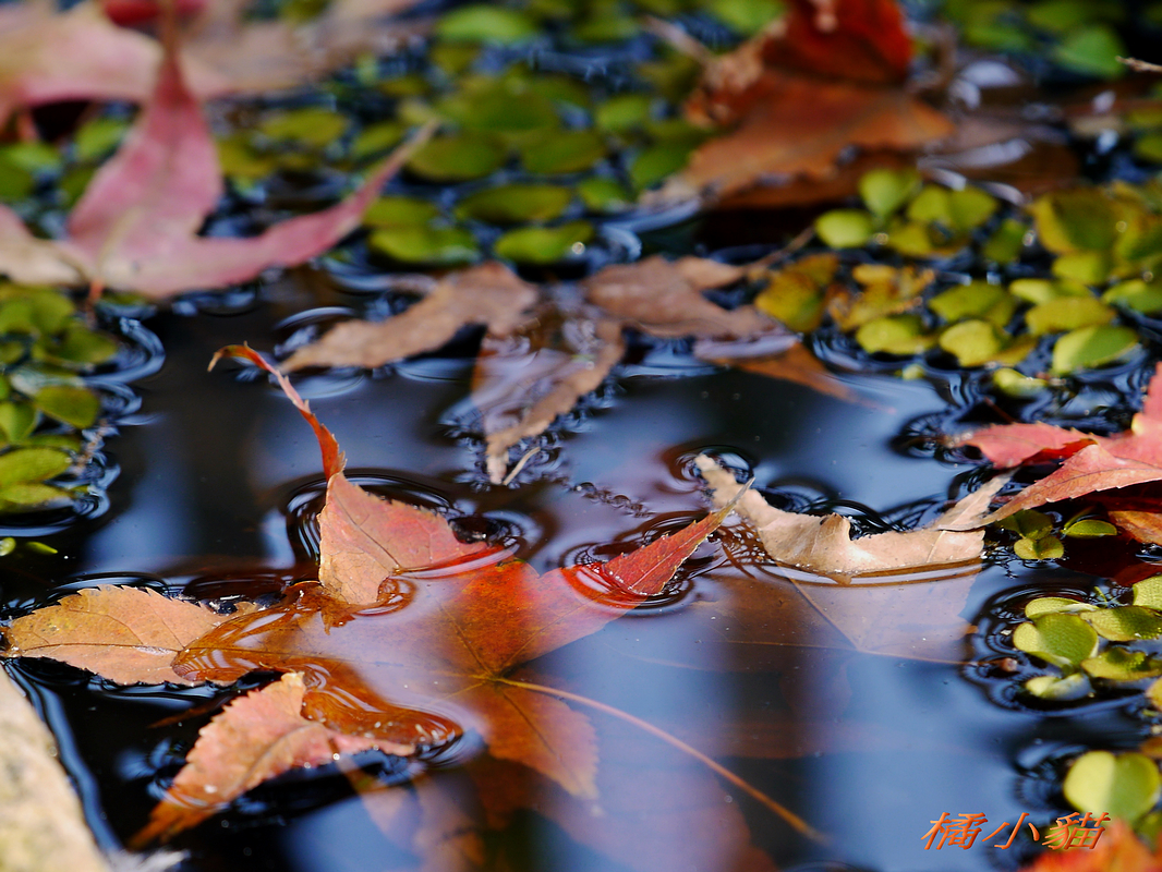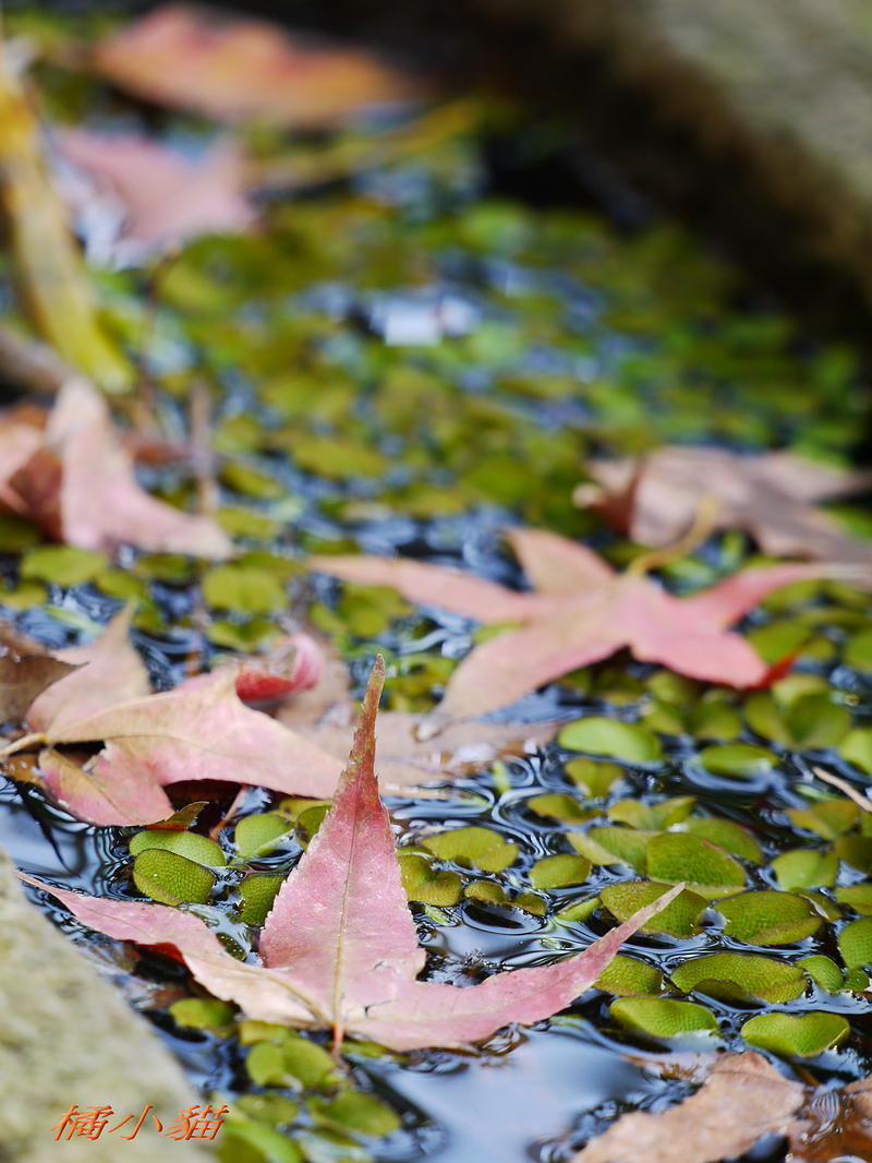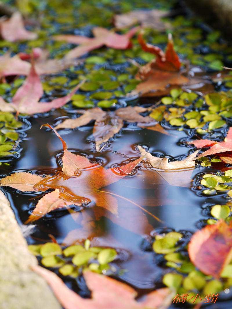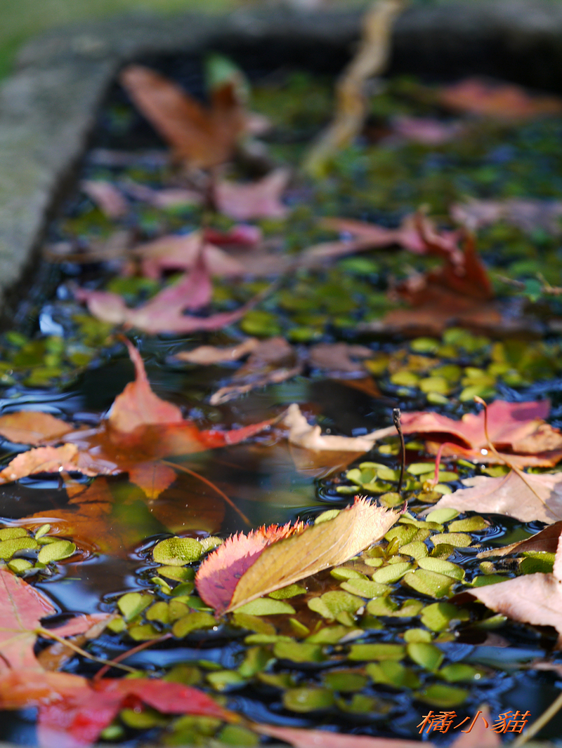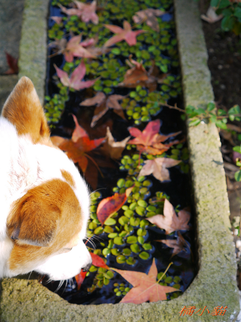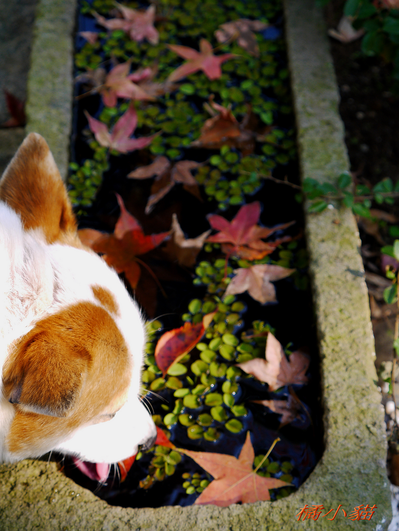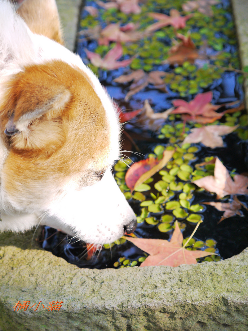 狗狗看到妳當然甘拜下風阿 手上好像有拿甚麼武器的樣子~~ 沒看它乖乖地低頭喝水 楓葉的光影與水色倒影造就出許多顏色 欄杆的影子恰好讓反射更豐富 水~