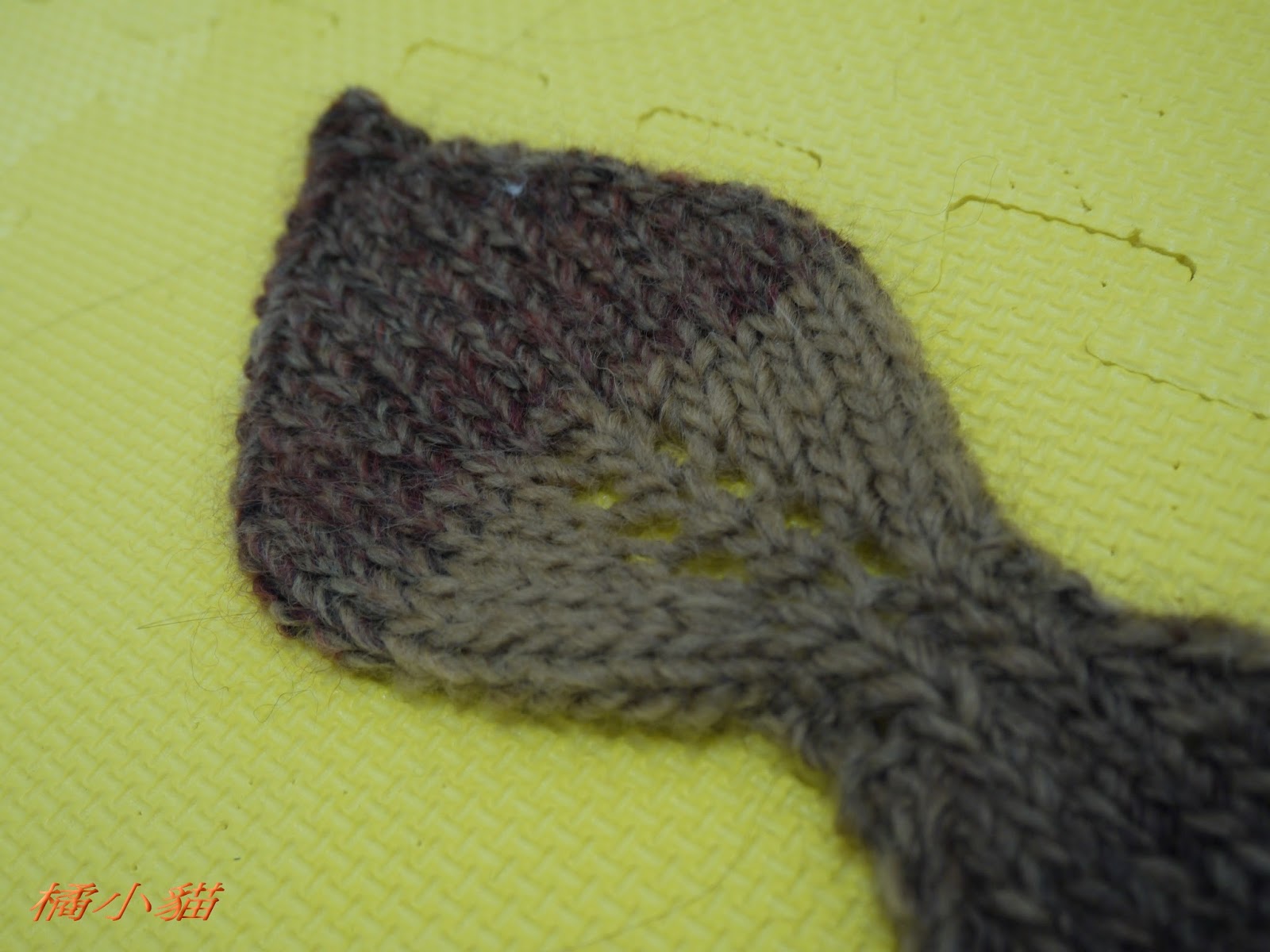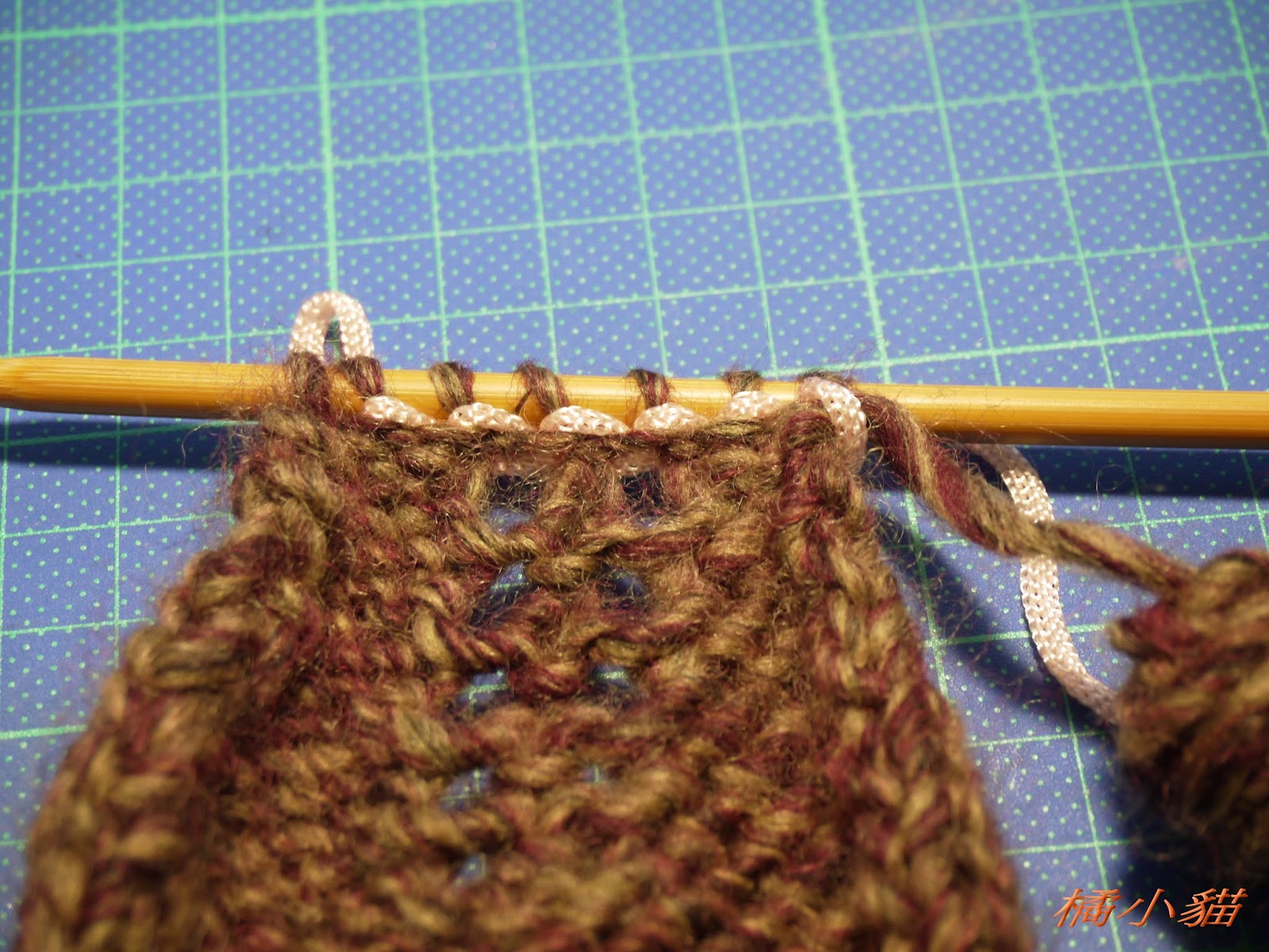 因為 要做一個洞 讓脖圍可以穿過去 所以 再剛剛別線的位置 於背面 再挑出相同針數 (等於是要織2小片) |
