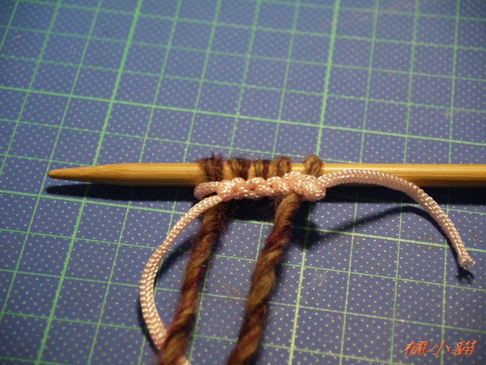 中間針的2側各掛1針 掛針法-把線放上來棒針上 直接之下針 這樣就會多一針了