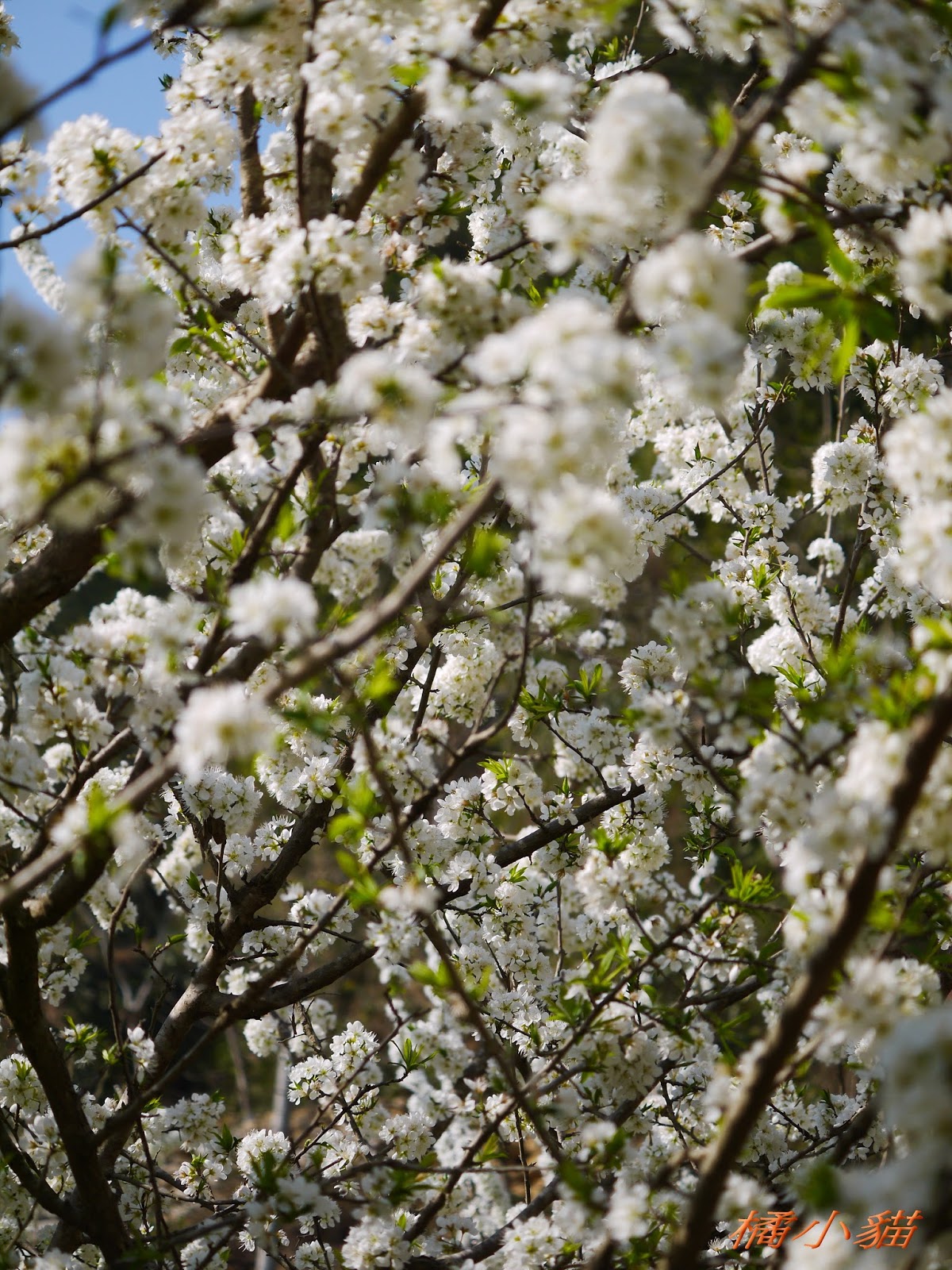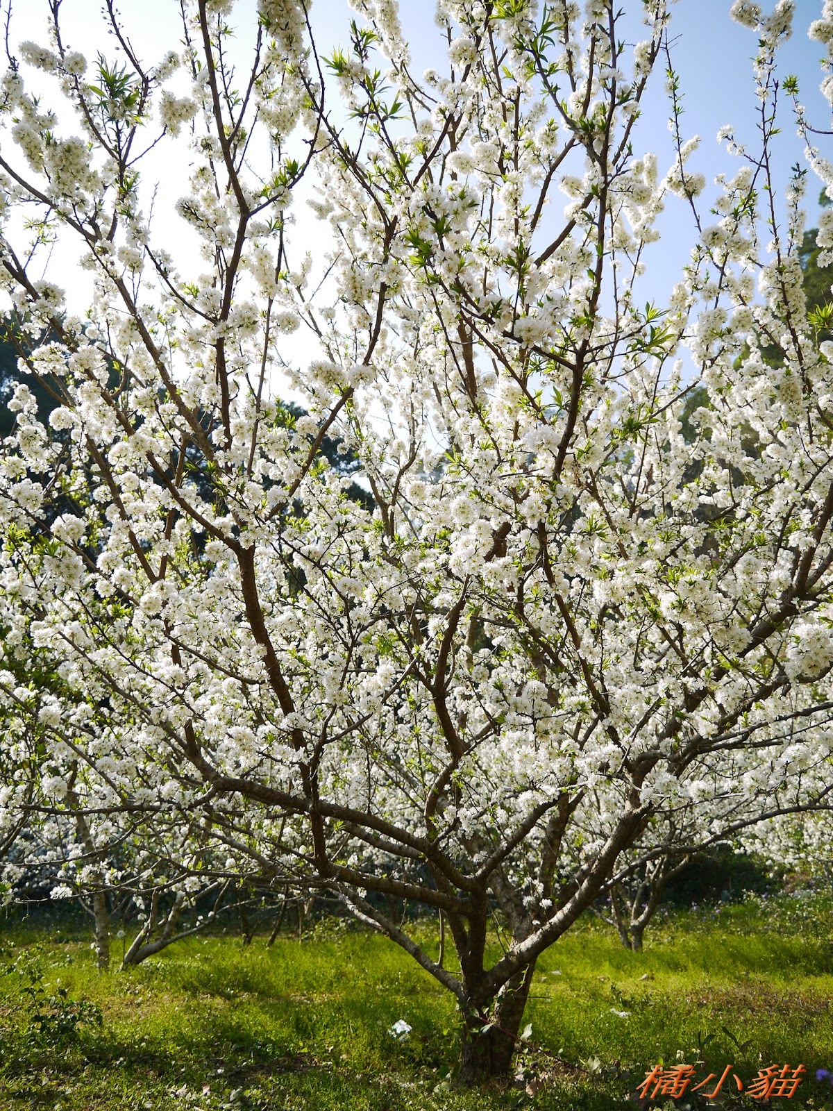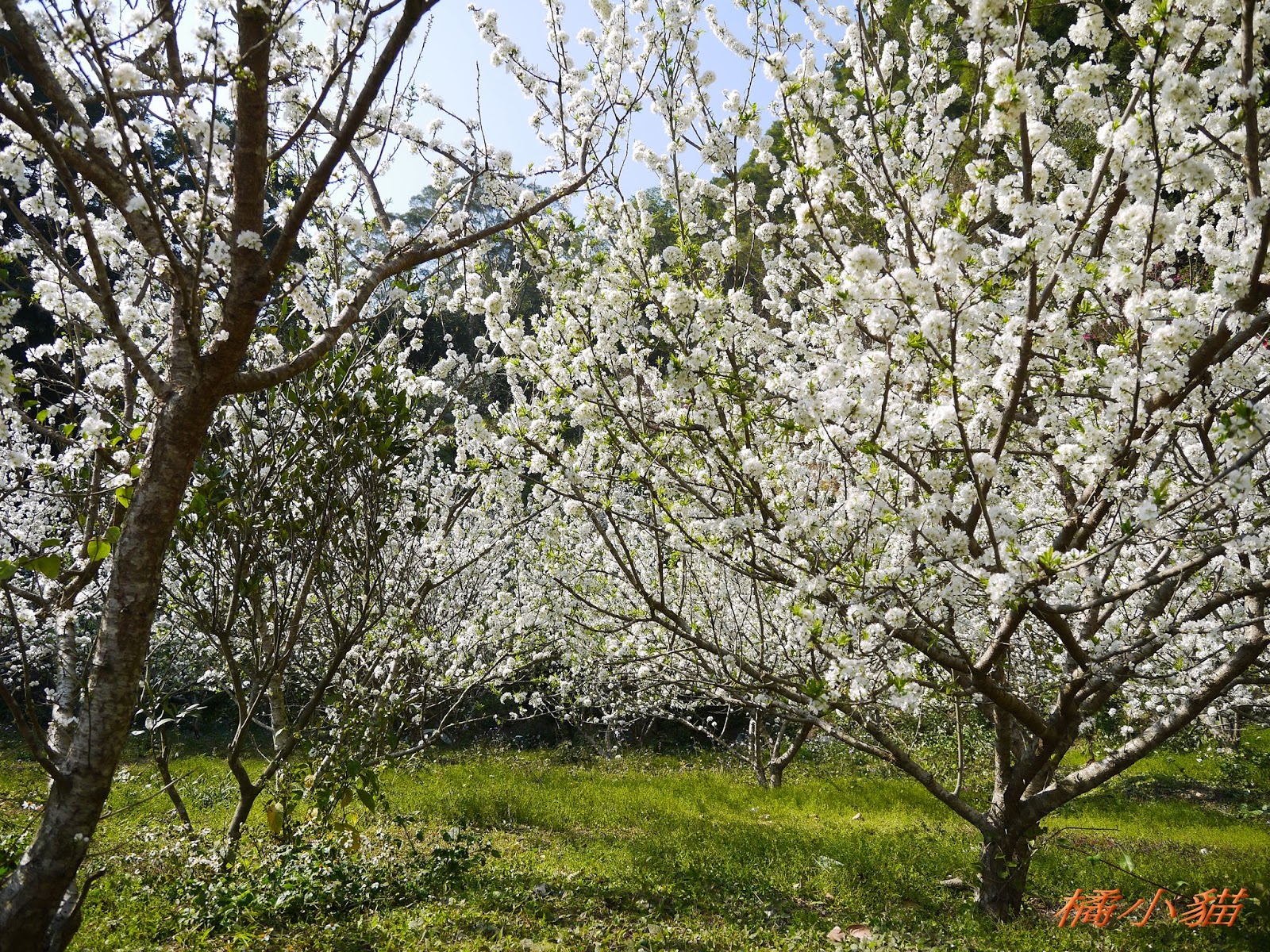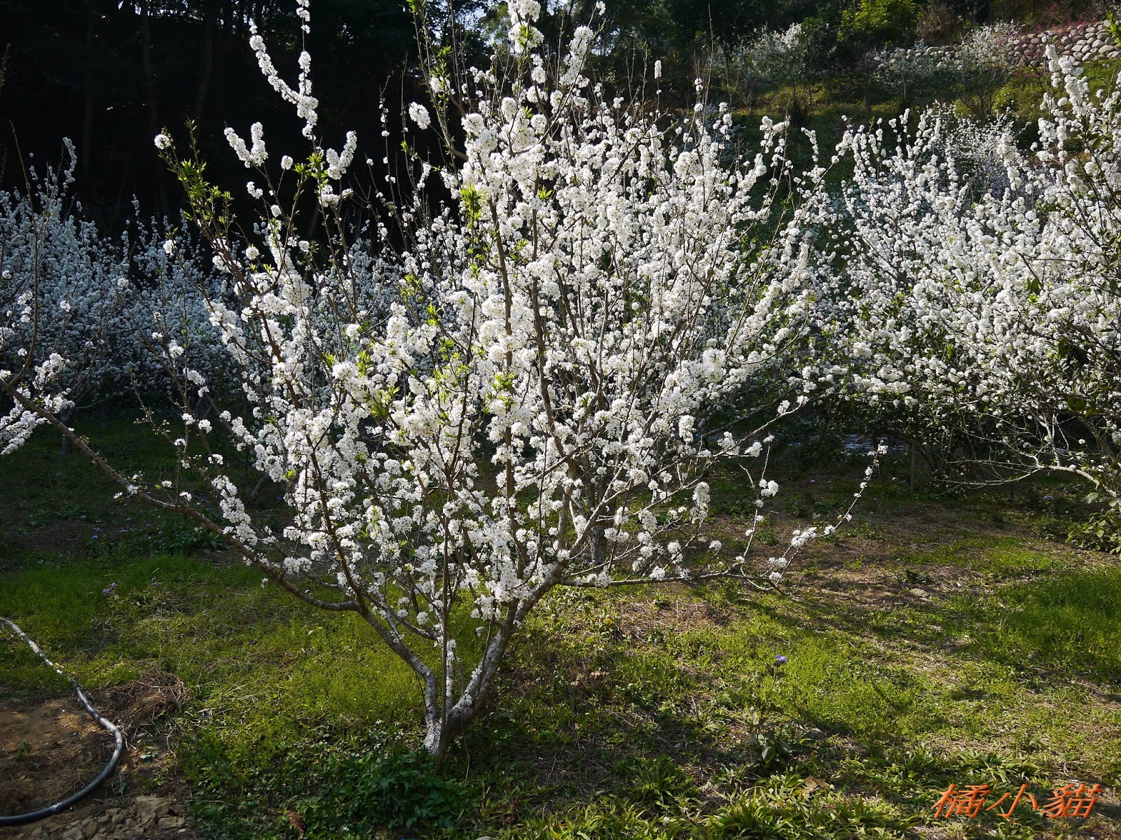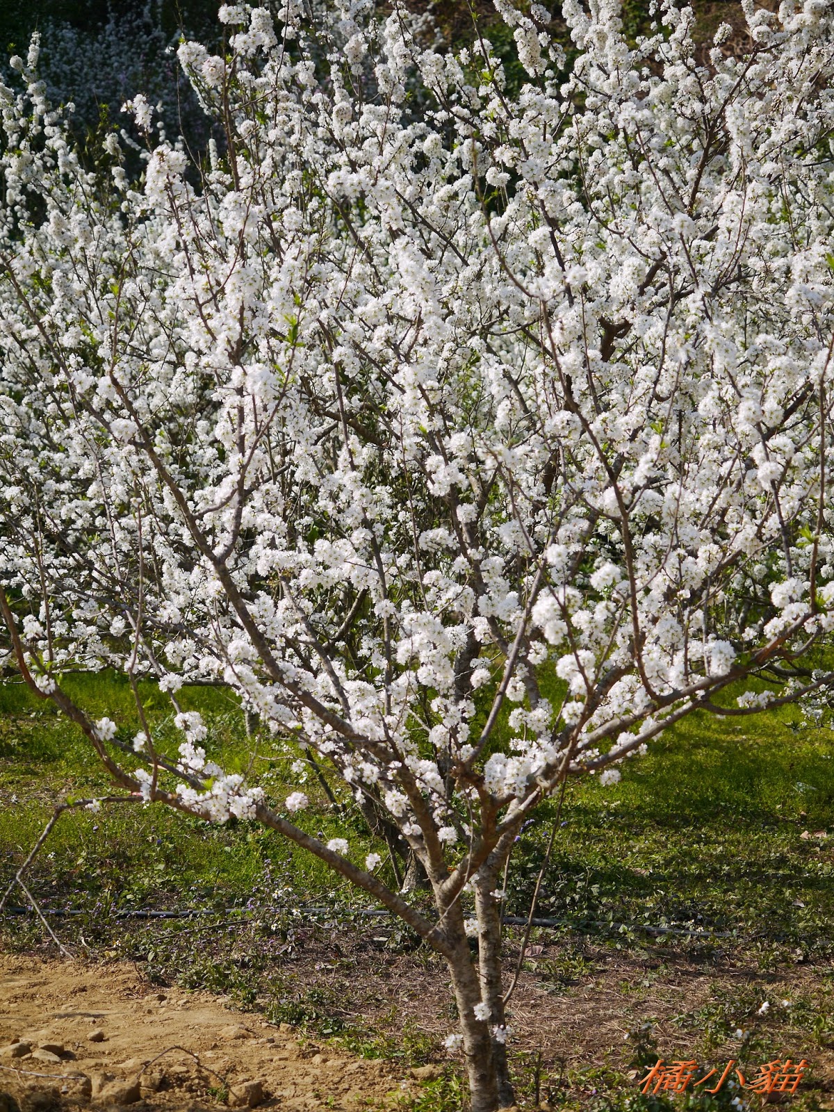 這園子的李花開得不錯,花多也很密,長得還蠻高的,看起來照顧得不錯。 三義也有李花園,苗栗真的有很多賞李花的地方。