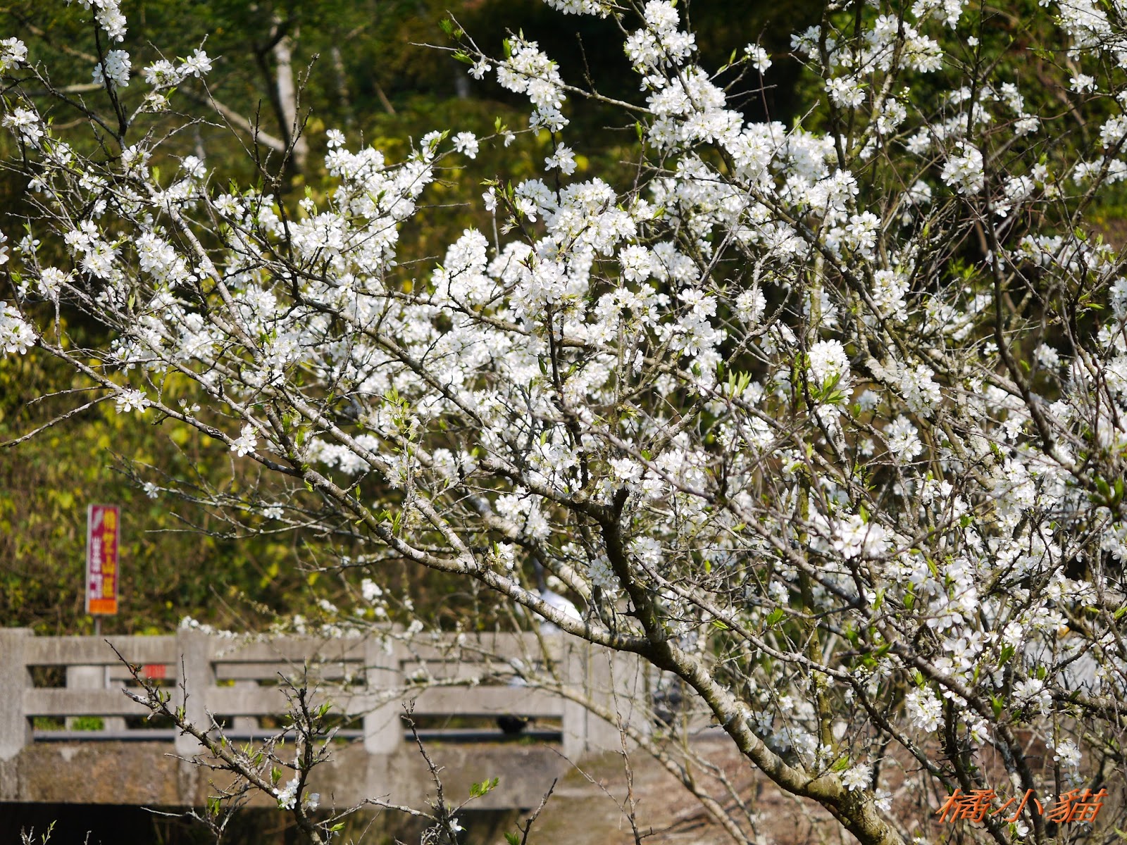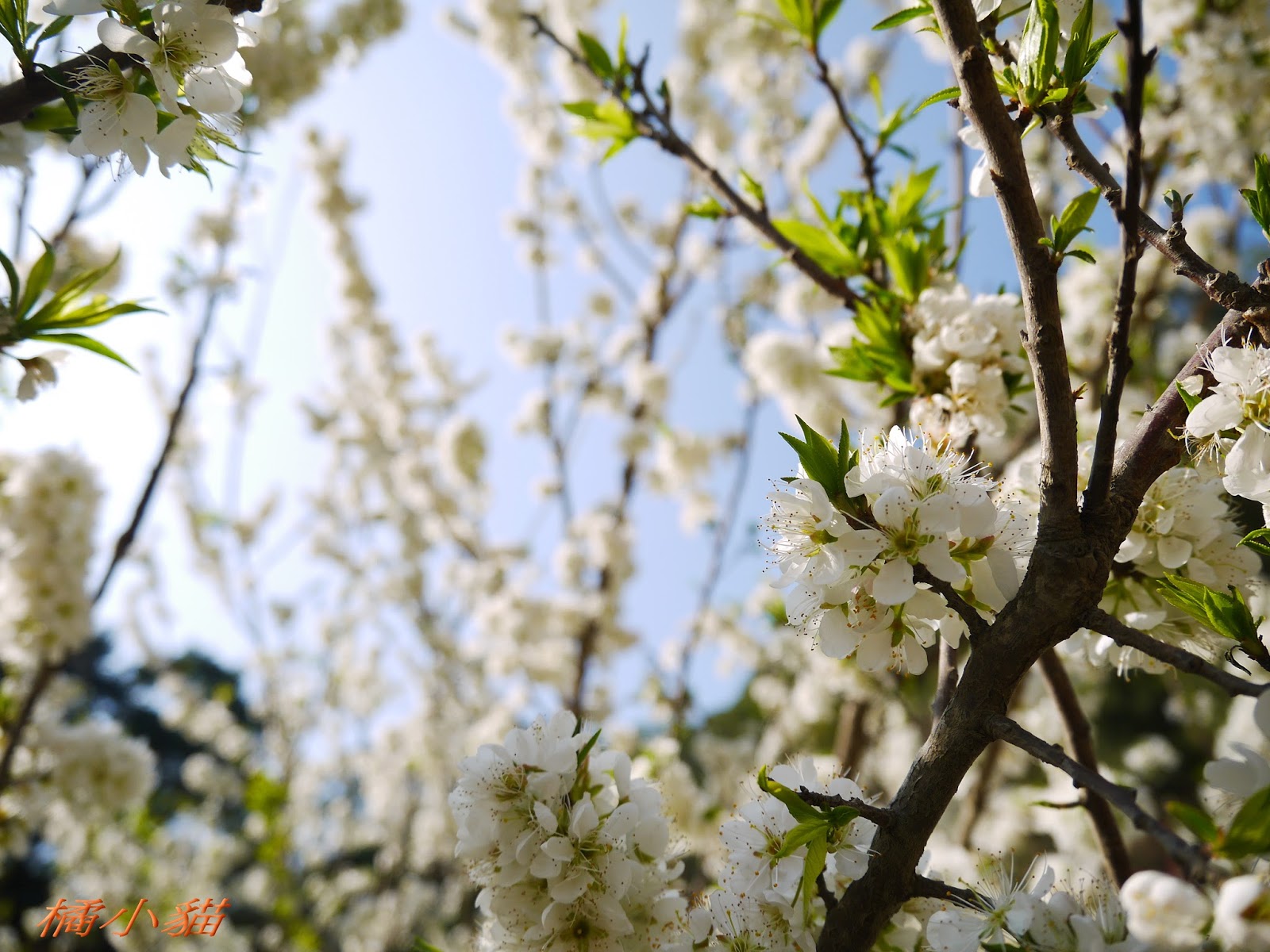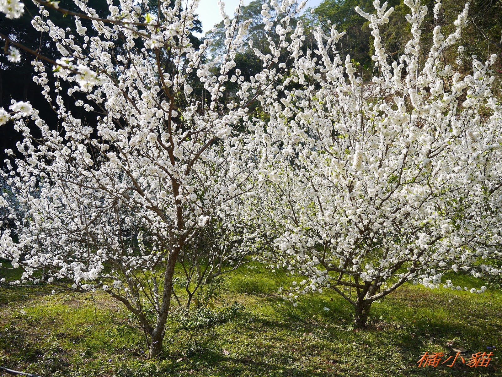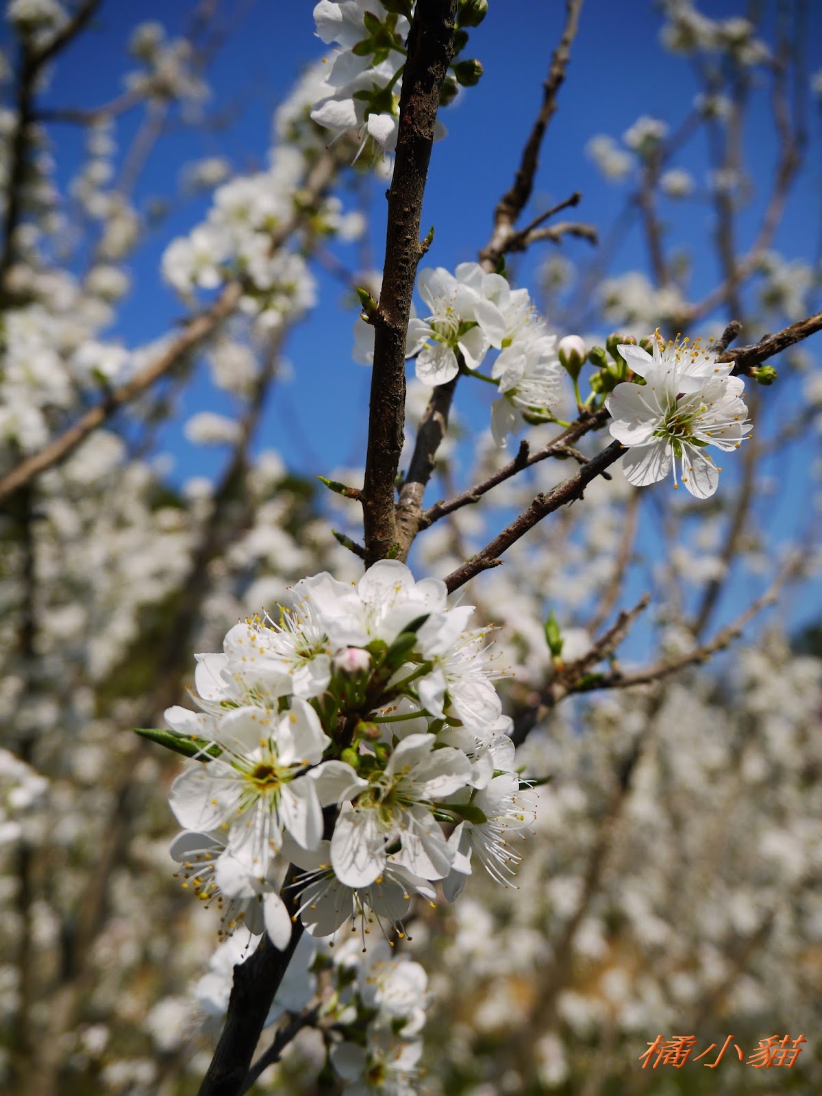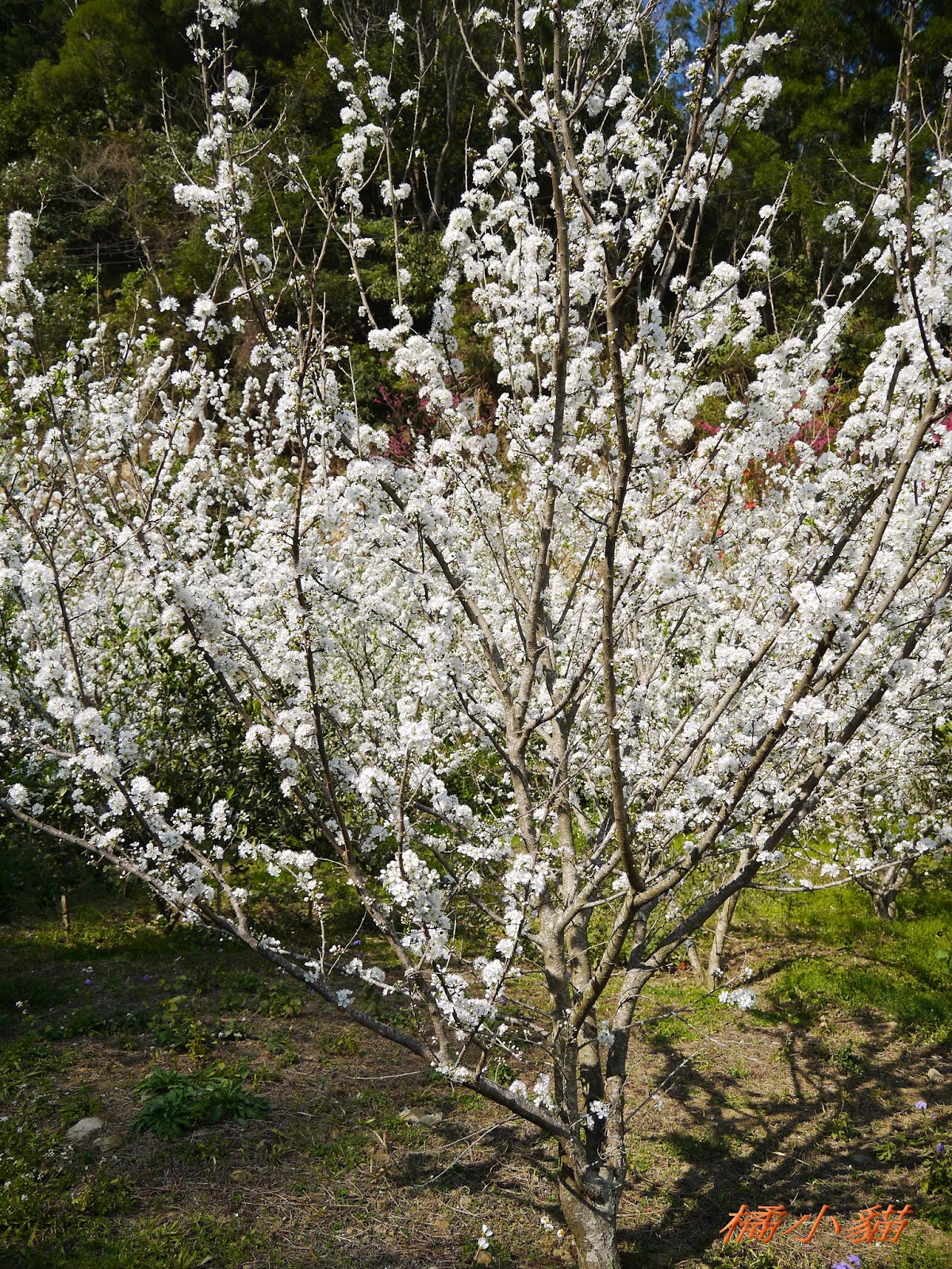 這園子的李花開得不錯,花多也很密,長得還蠻高的,看起來照顧得不錯。 三義也有李花園,苗栗真的有很多賞李花的地方。