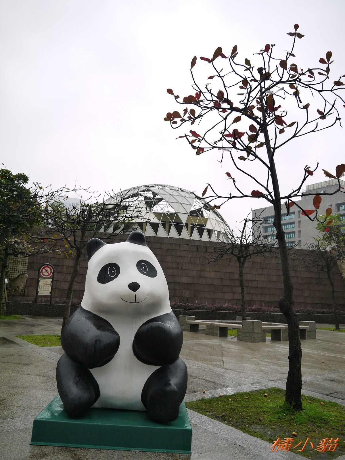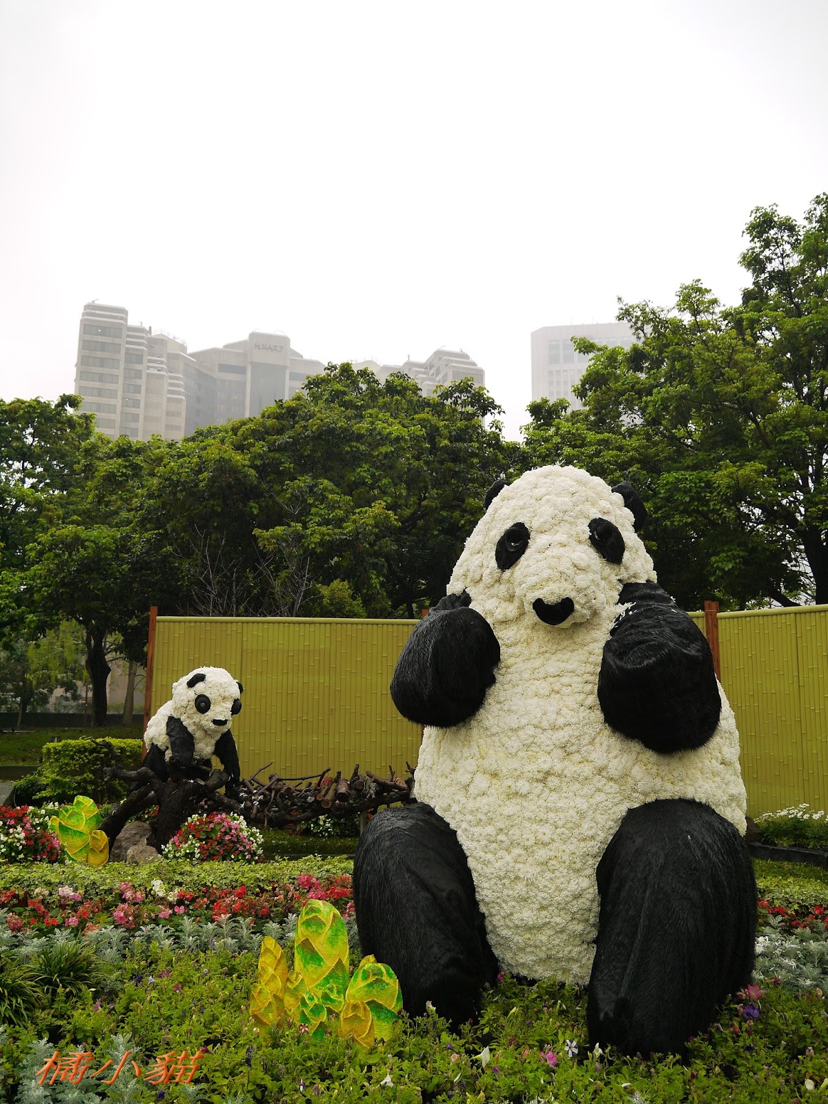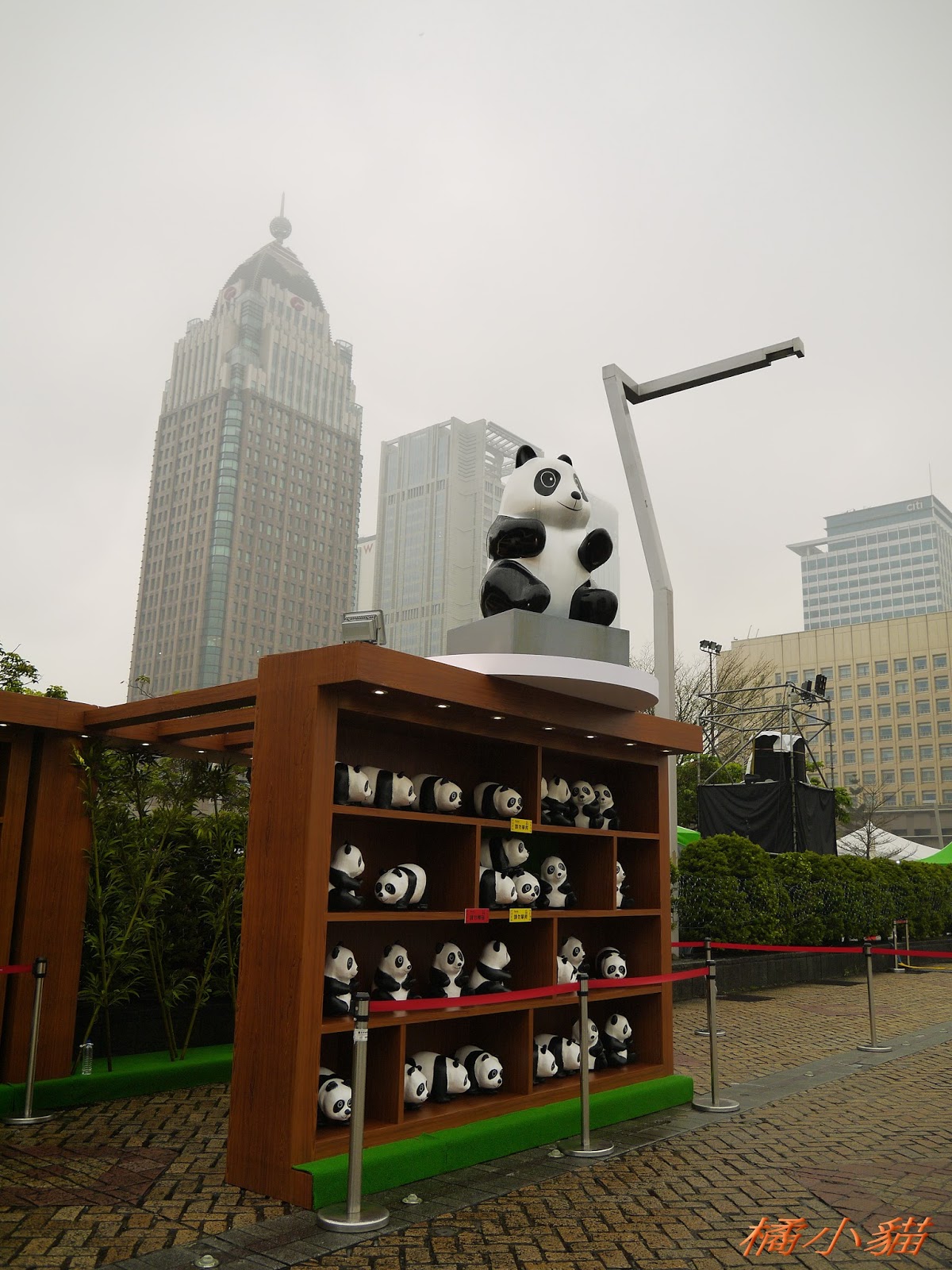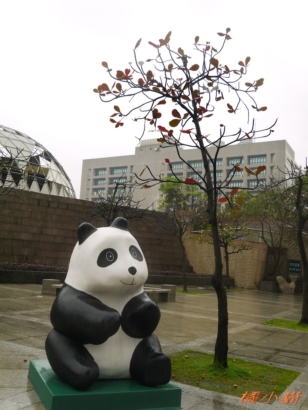 1600隻紙熊貓戴著雨衣展出真是創舉 小葉欖仁樹沒葉子照得很有意境很美!推~~~