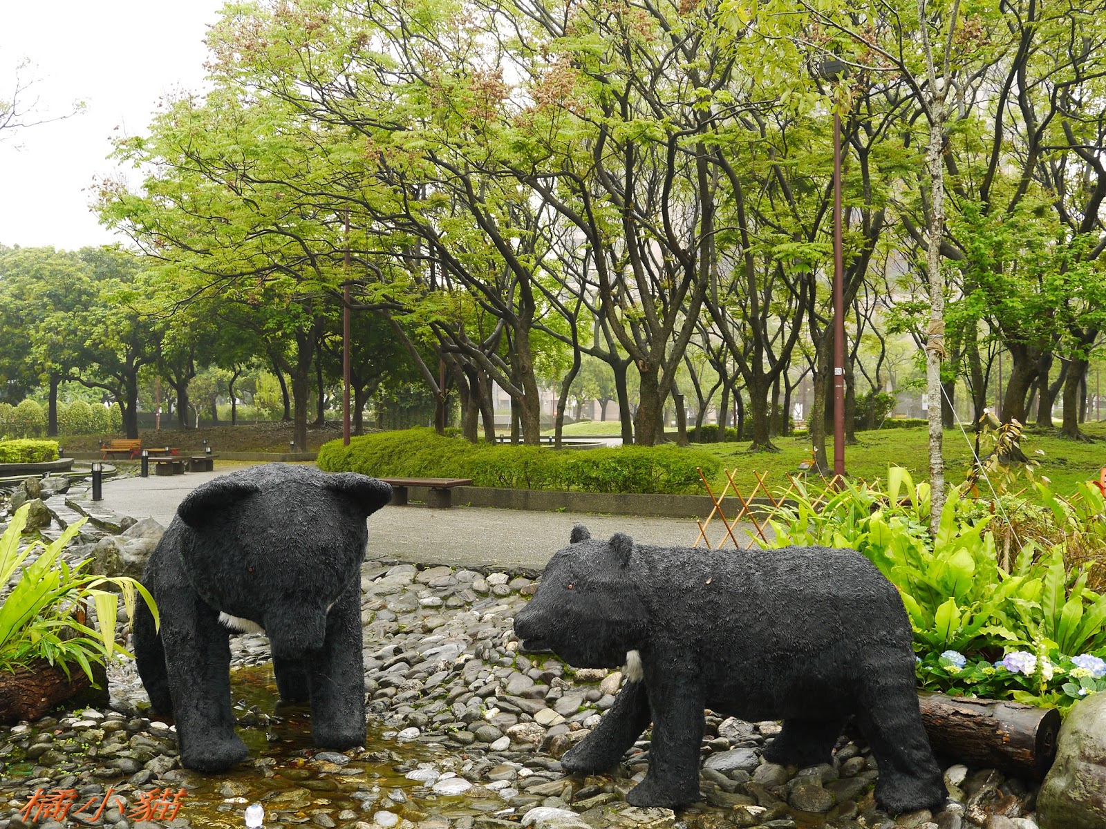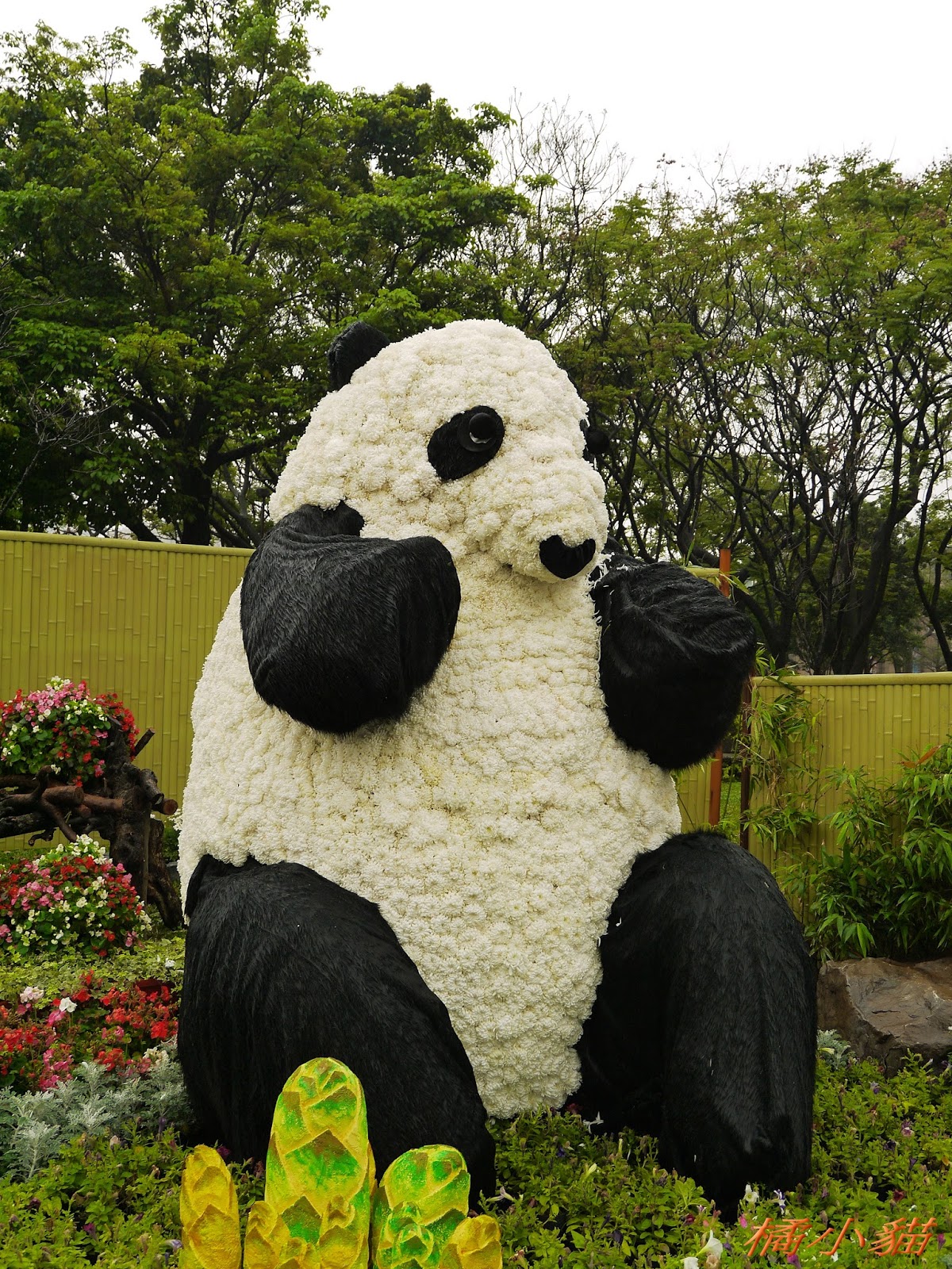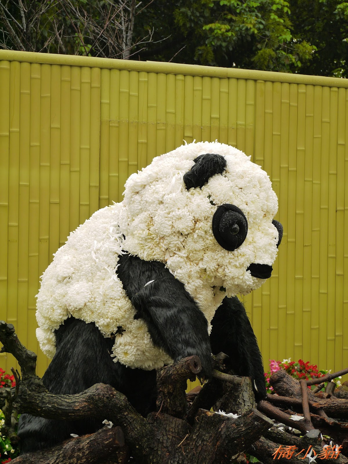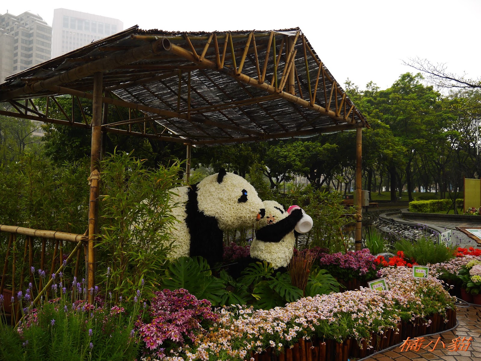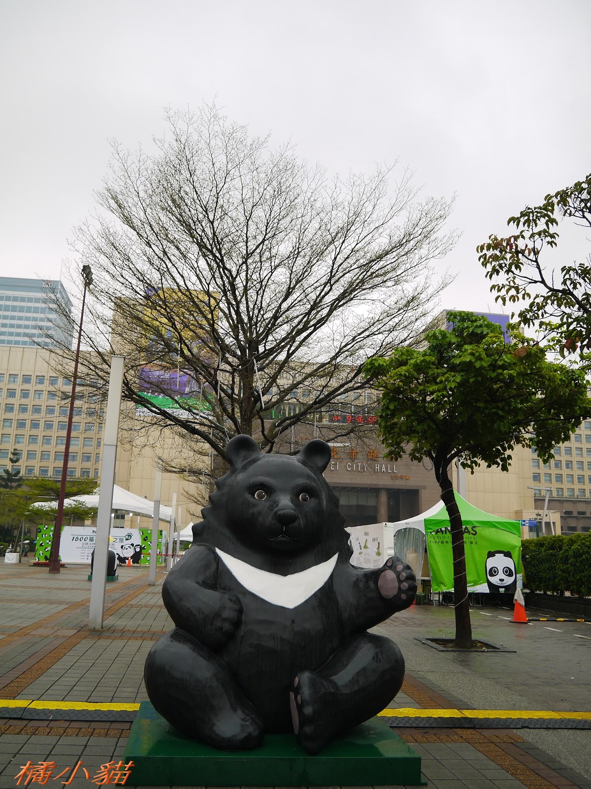 1600隻紙熊貓戴著雨衣展出真是創舉 小葉欖仁樹沒葉子照得很有意境很美!推~~~