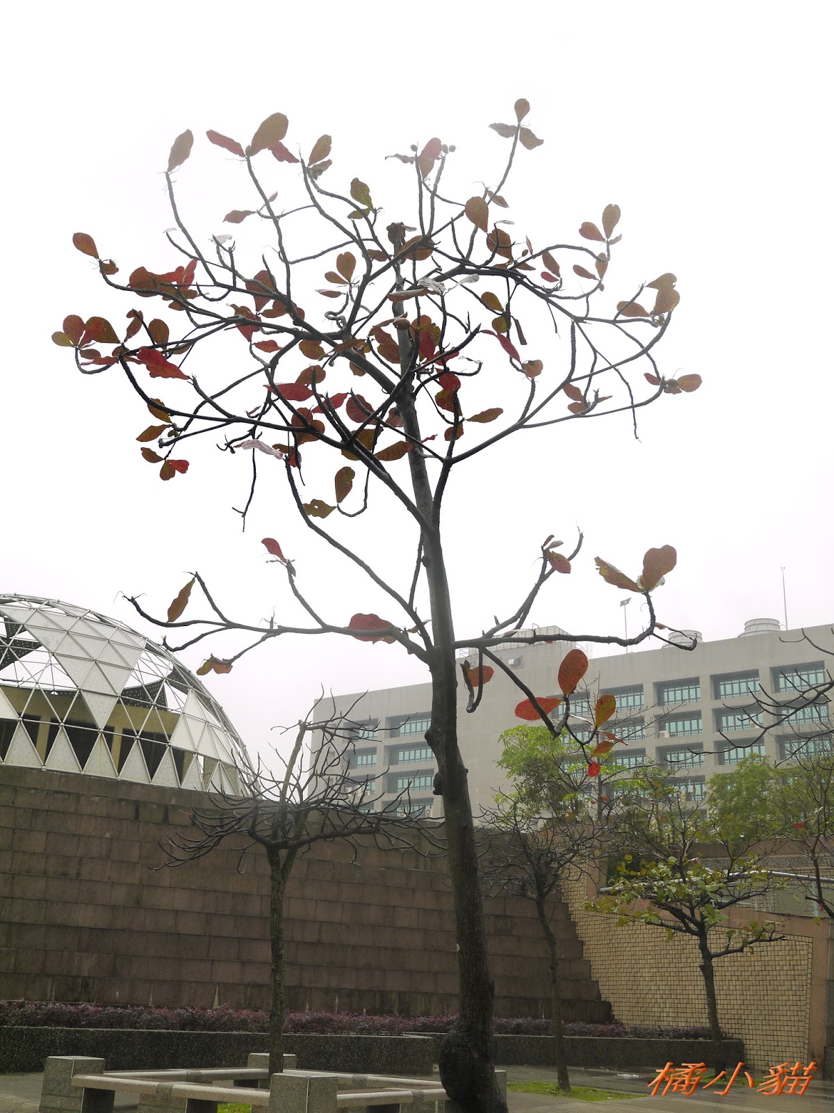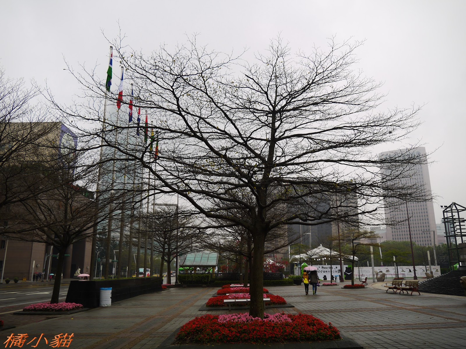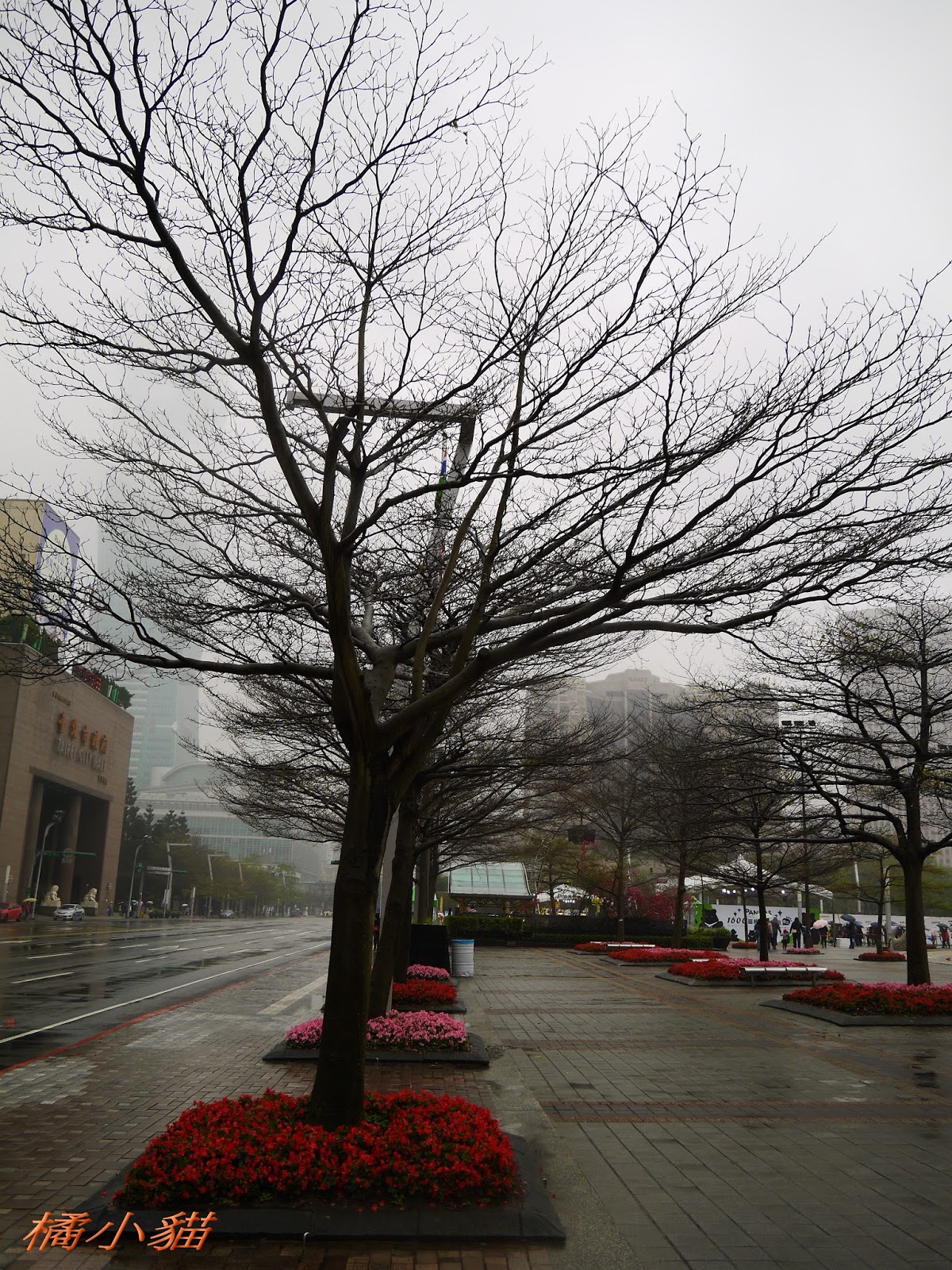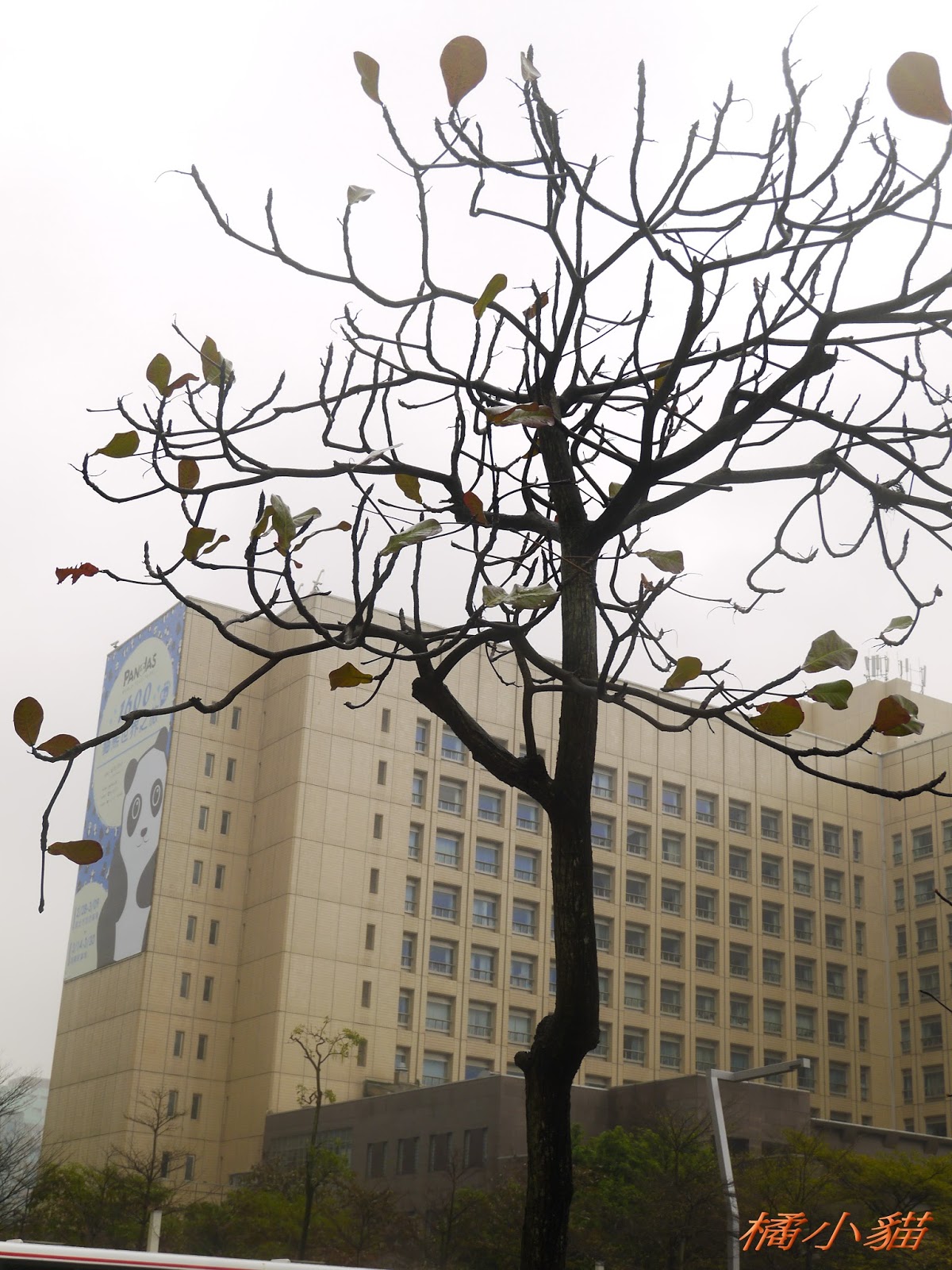 1600隻紙熊貓戴著雨衣展出真是創舉 小葉欖仁樹沒葉子照得很有意境很美!推~~~