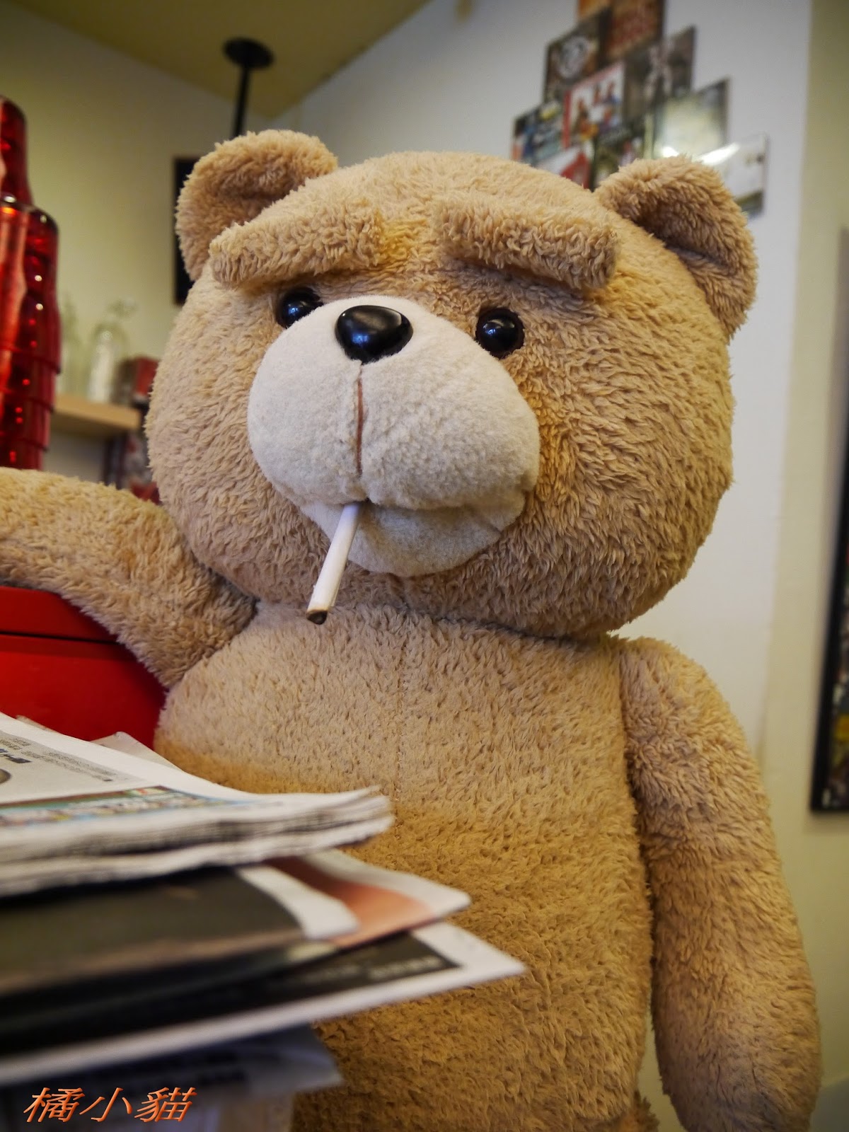 嘿呀~ 那天騎車去台北市政府看紙熊貓 回來時 下雨 又冷又餓...就..... 哈哈哈~~~ 我有問過老闆 他說 是熊壞壞 討菸抽的 XDD