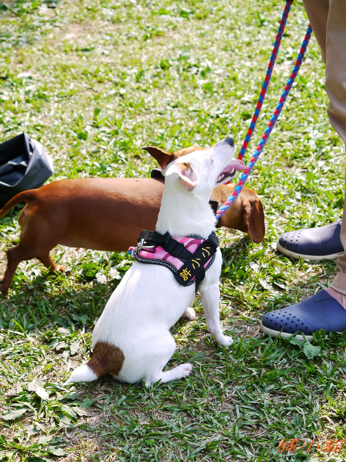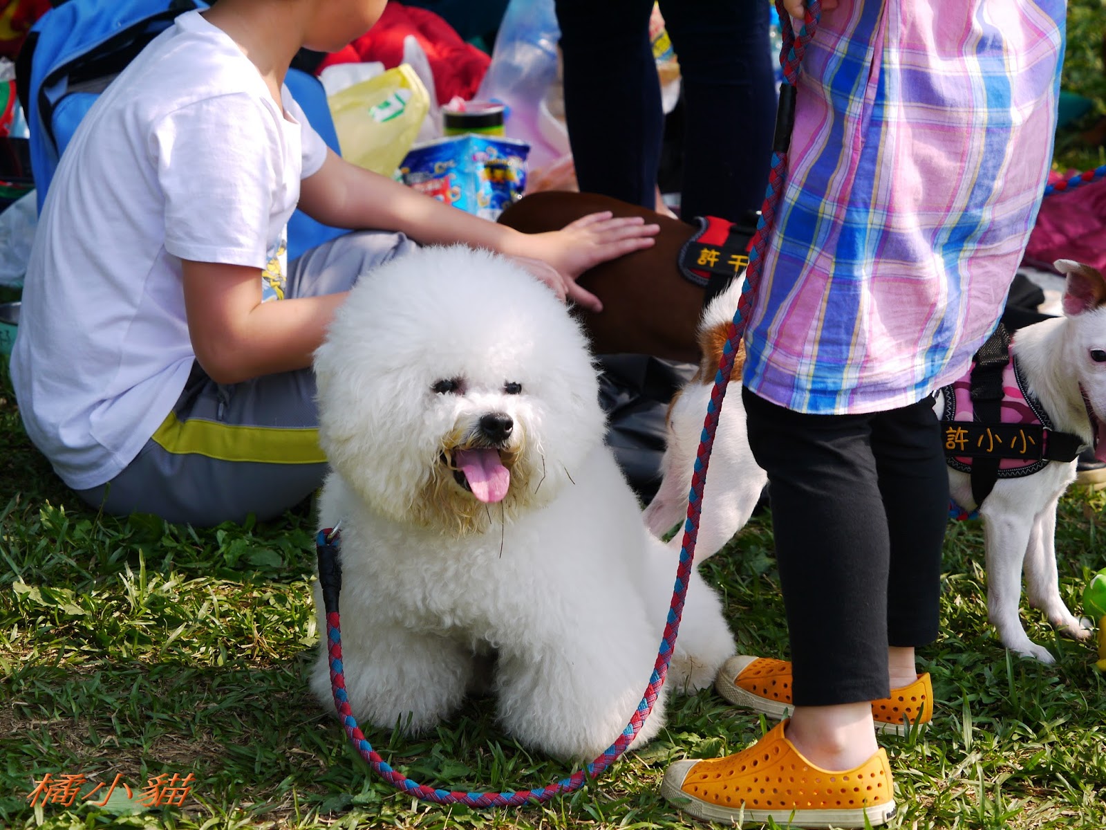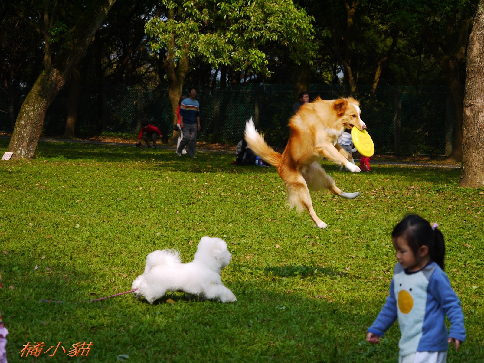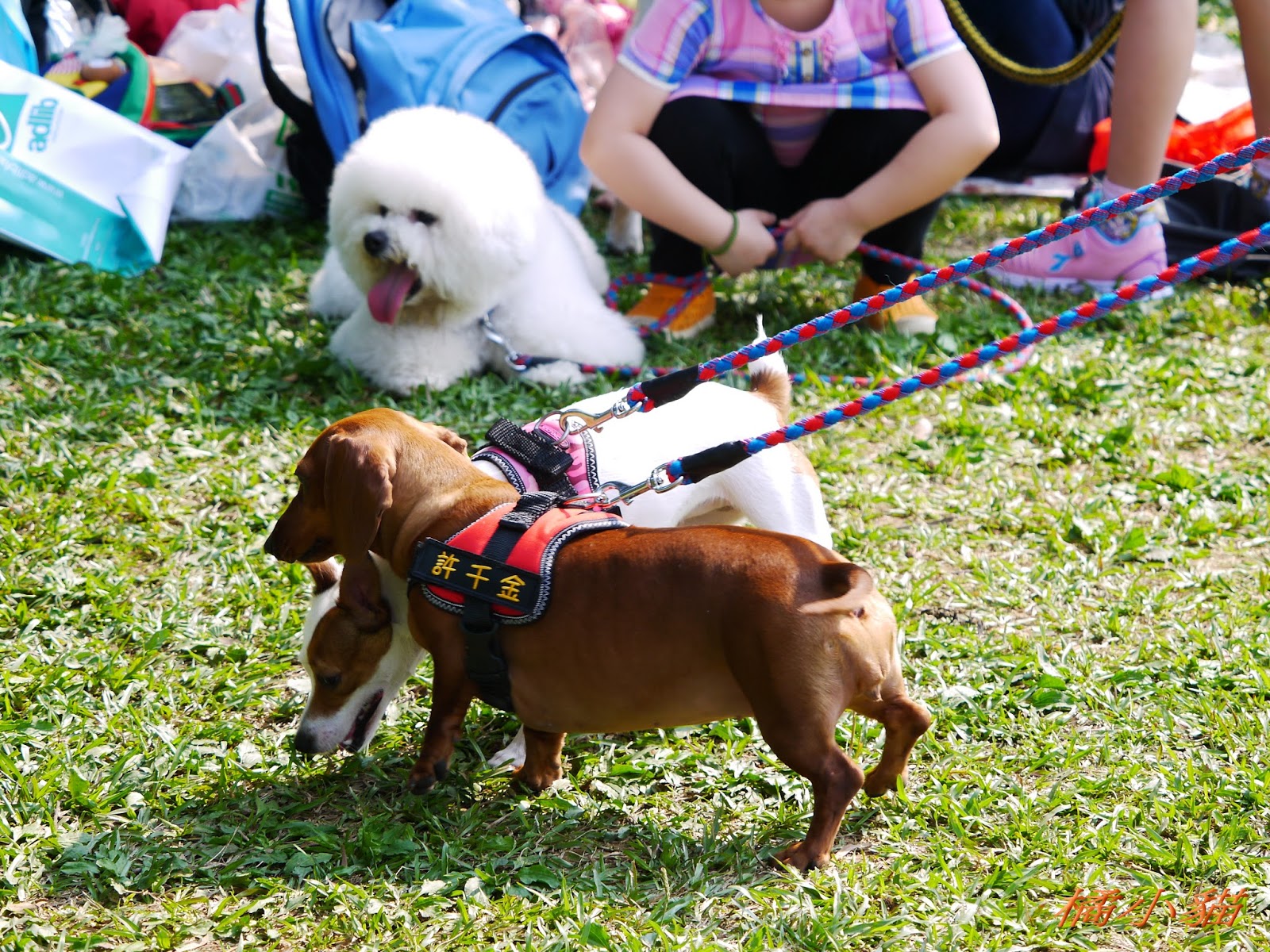 喬巴要哭了!!! 少認識了很多朋友 狗狗接飛盤好厲害唷!!! 我家Q比每次撿完玩具都不給我,都直接咬進他的房間= = 許千金直接在牽繩上繡名字好酷唷XDD 還有白狗背背包也好可愛 現在的主人帶寵物出門不是要比才藝就是要比行頭耶!!!