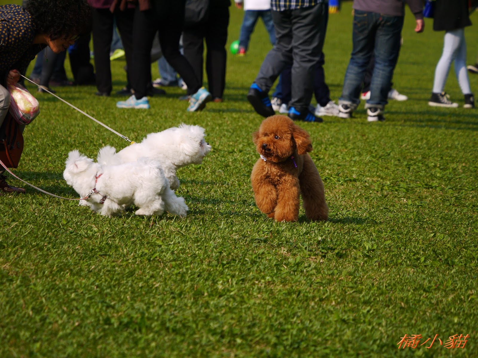 那隻小小紅貴賓應該是茶杯吧~!!體型超小滴...喬巴應該很傷心在家哭哭縮~XD哈哈