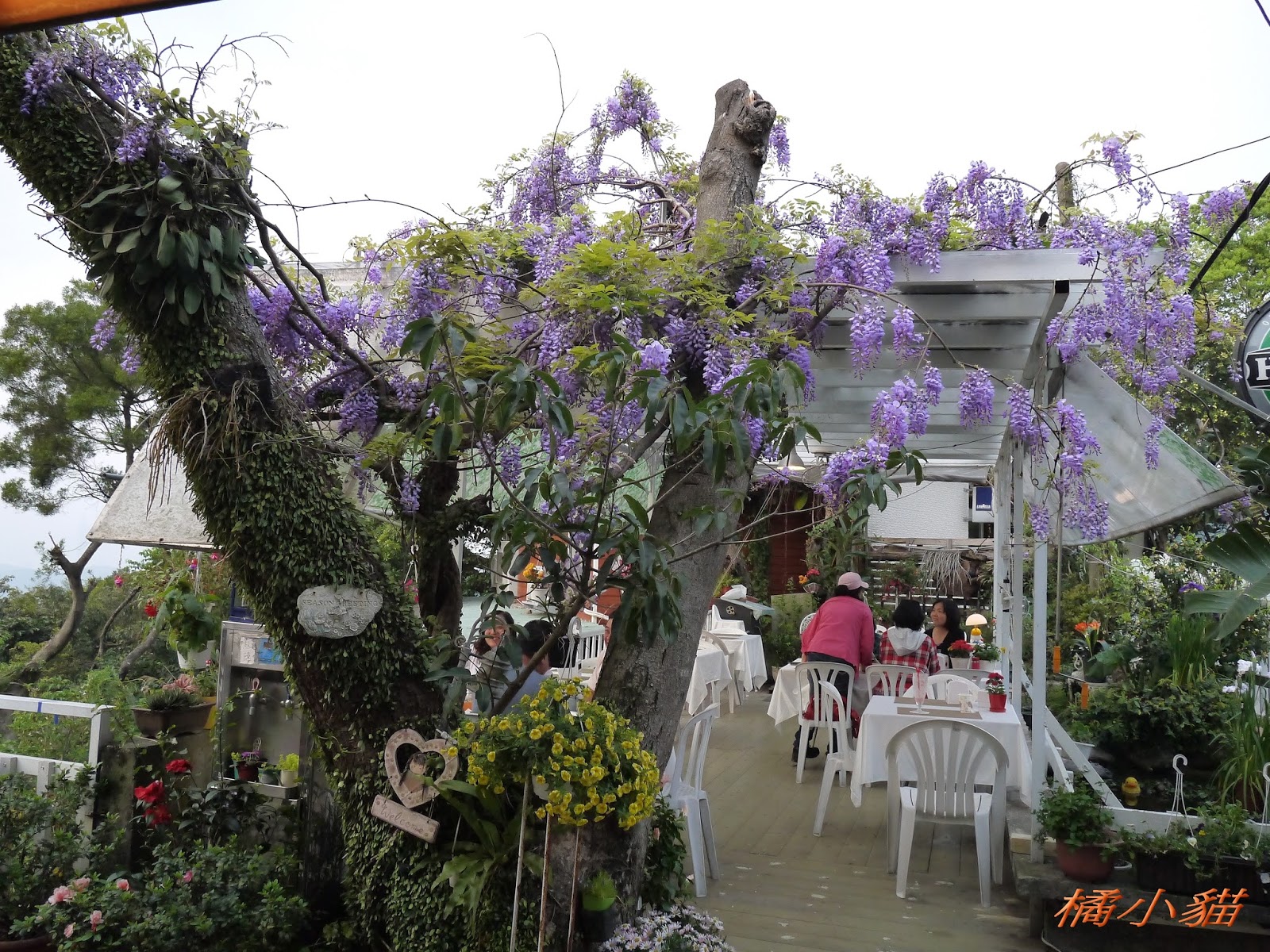 這間店的紫藤高掛在樹上很特別 我之前去拍魯冰花時也有看到