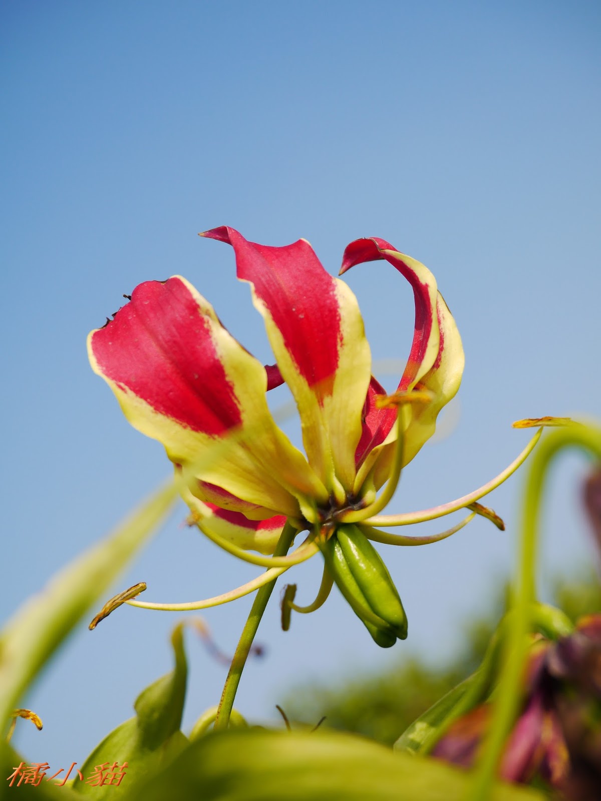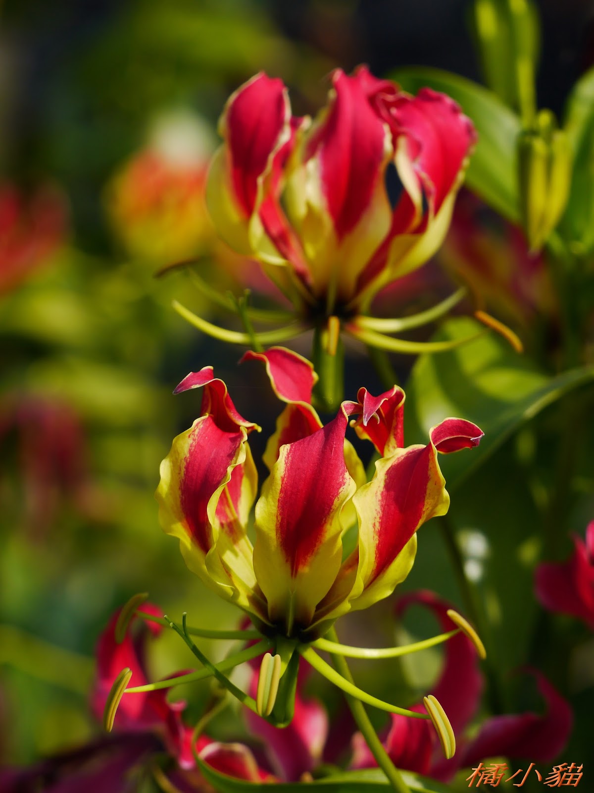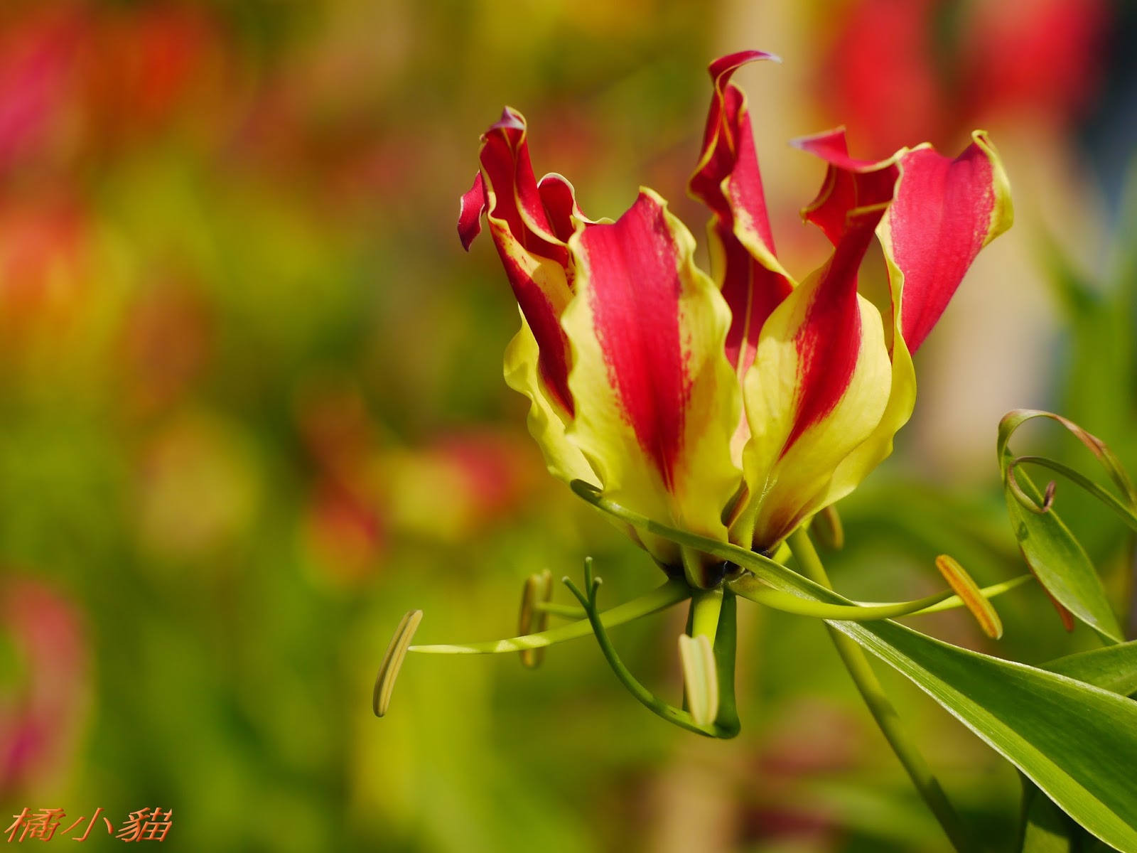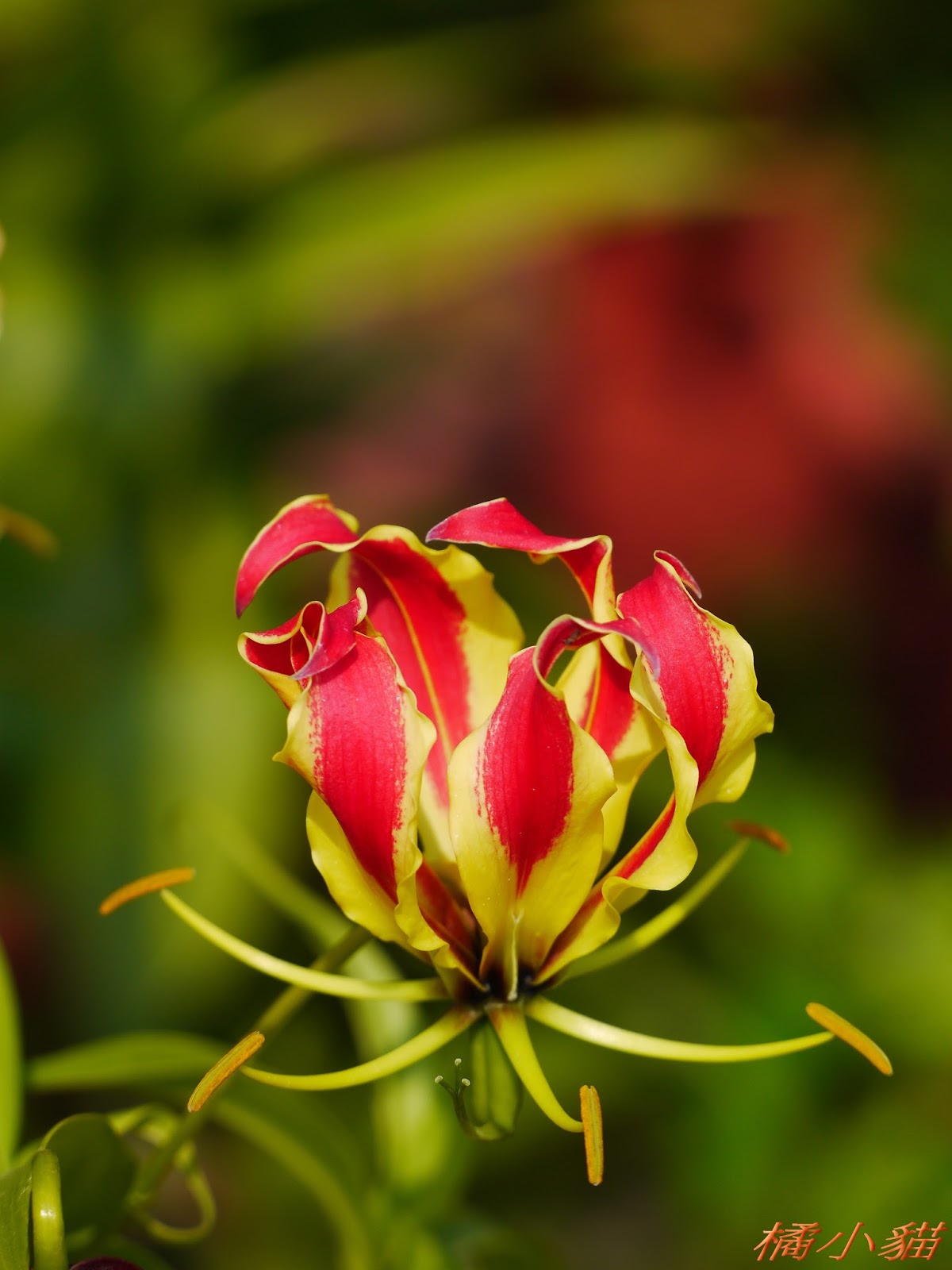 學名:Gloriosa rothschildiana O'Brien 科別:Liliaceae 百合科 又稱:嘉蘭百合、火焰百合、印度百合、蔓百合、戰勝葛、鐵線雞爪 花期:夏至秋季開花 瓶插壽命:七~十天 特性:原產地在熱帶亞洲,多年生球根花卉,花色下部為黃色,上部為紅色。花絲細長、花藥著生於一點,迎風搖動,產色華麗,甚受歡迎。 花語:頑強、光榮、榮耀