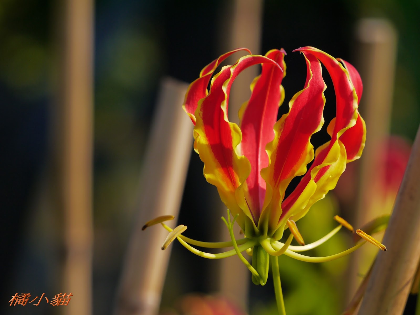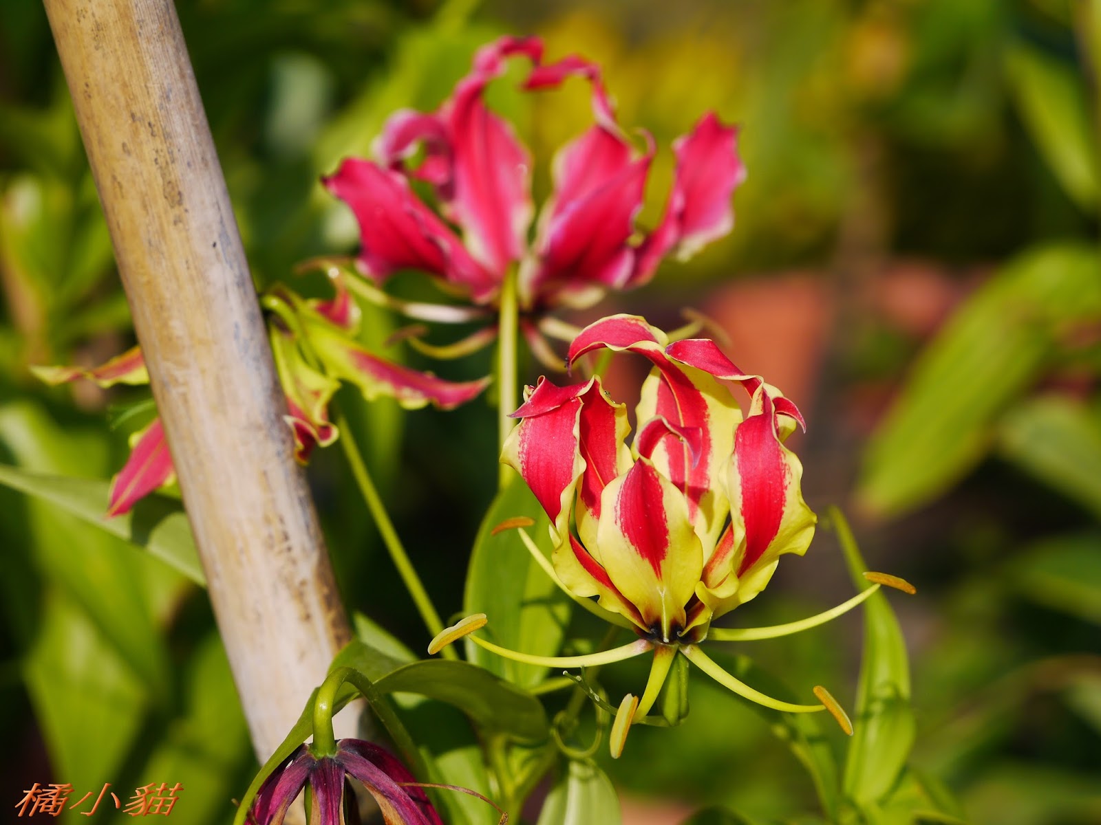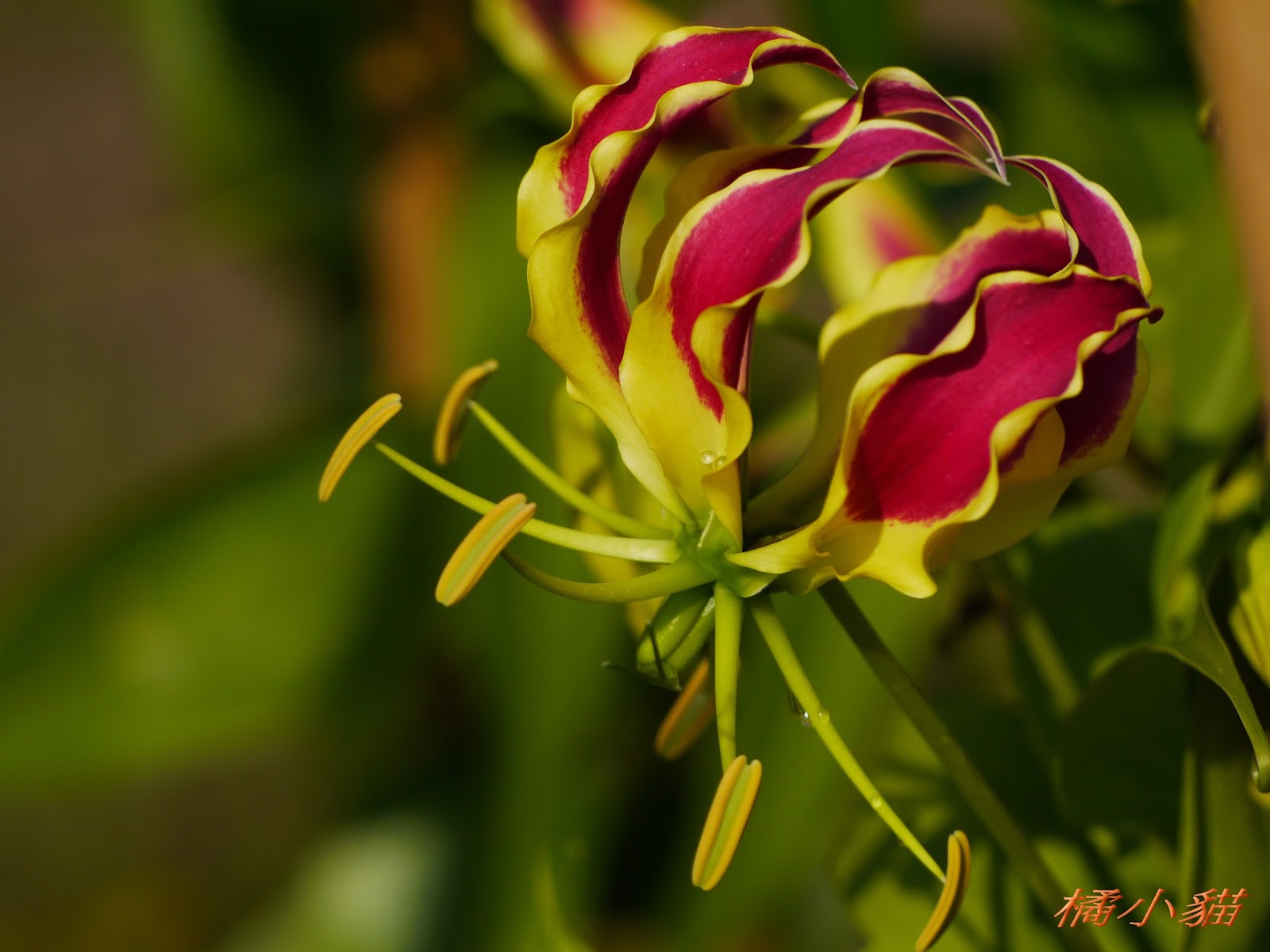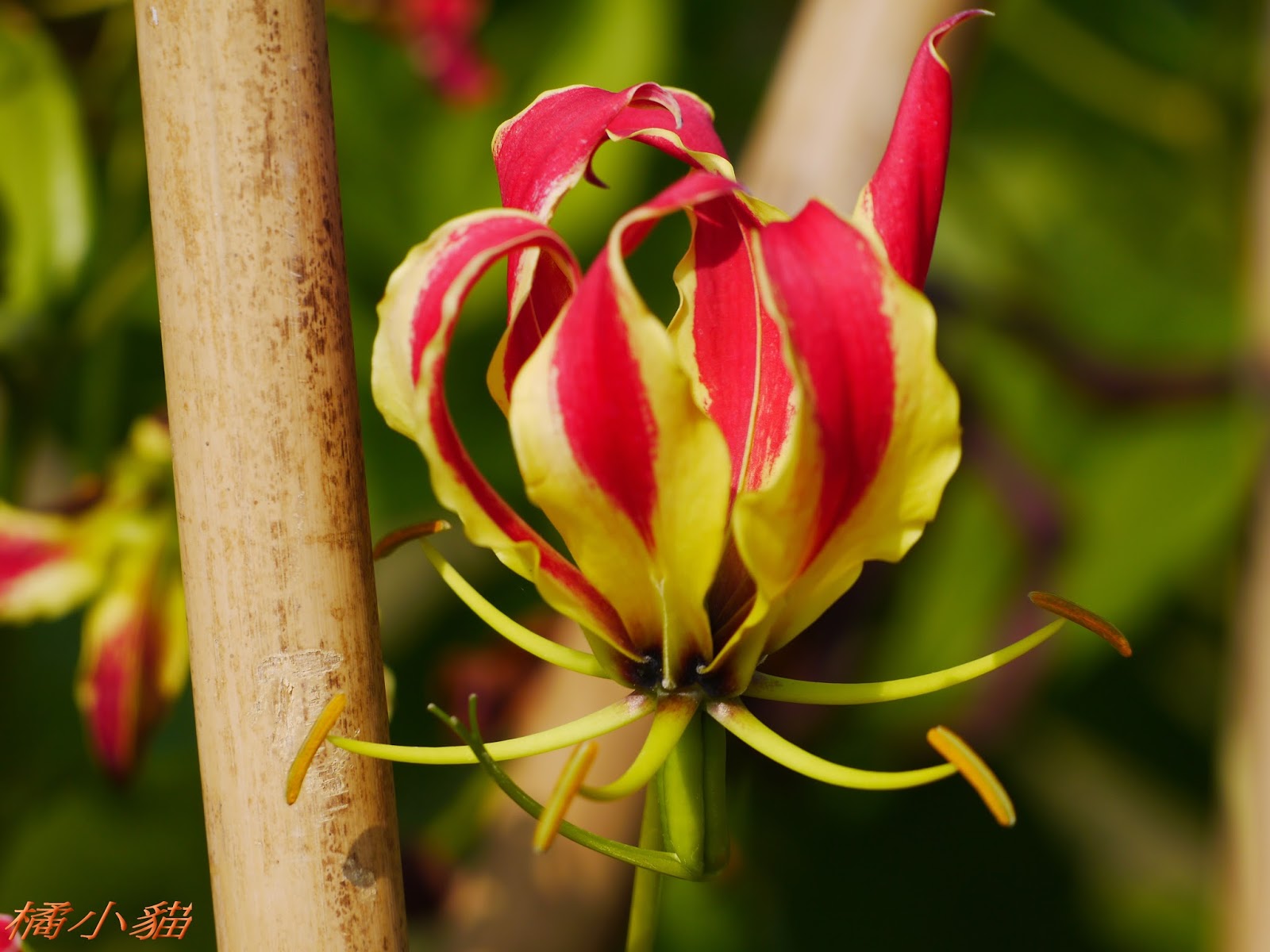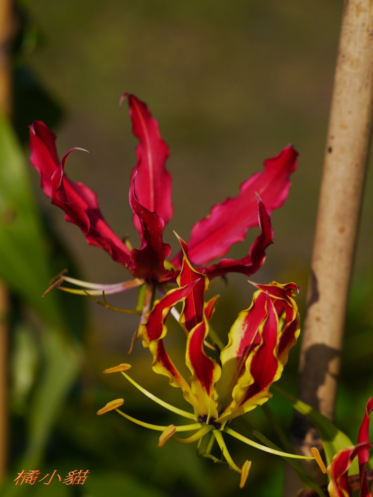 學名:Gloriosa rothschildiana O'Brien 科別:Liliaceae 百合科 又稱:嘉蘭百合、火焰百合、印度百合、蔓百合、戰勝葛、鐵線雞爪 花期:夏至秋季開花 瓶插壽命:七~十天 特性:原產地在熱帶亞洲,多年生球根花卉,花色下部為黃色,上部為紅色。花絲細長、花藥著生於一點,迎風搖動,產色華麗,甚受歡迎。 花語:頑強、光榮、榮耀