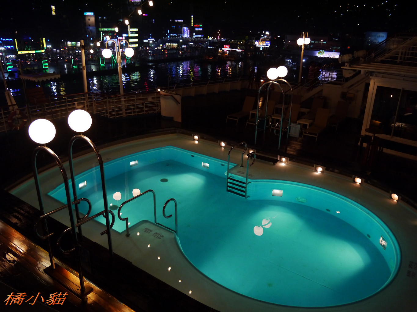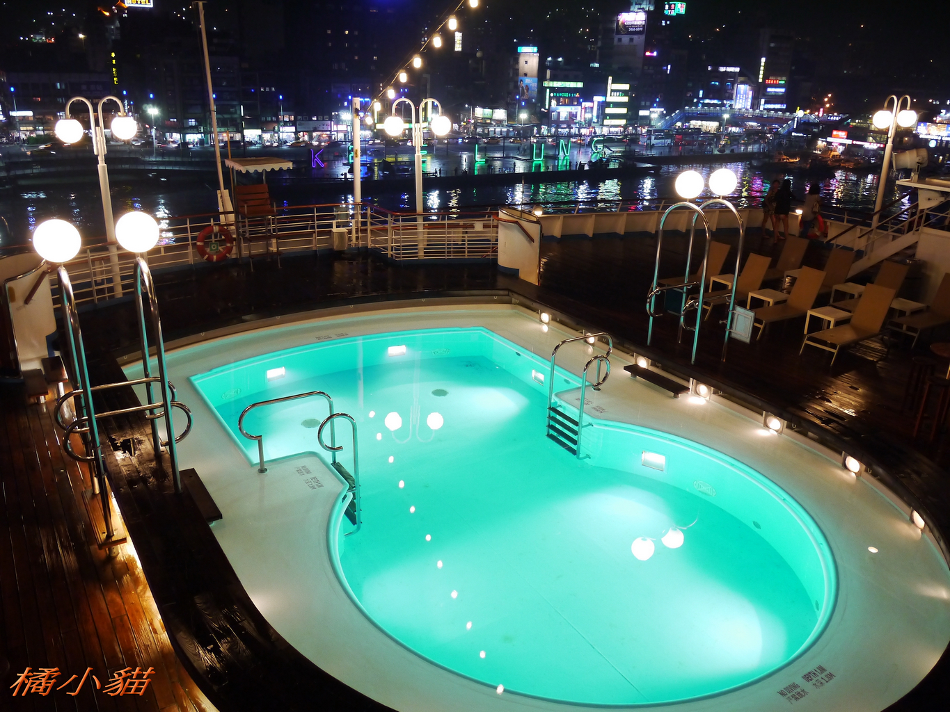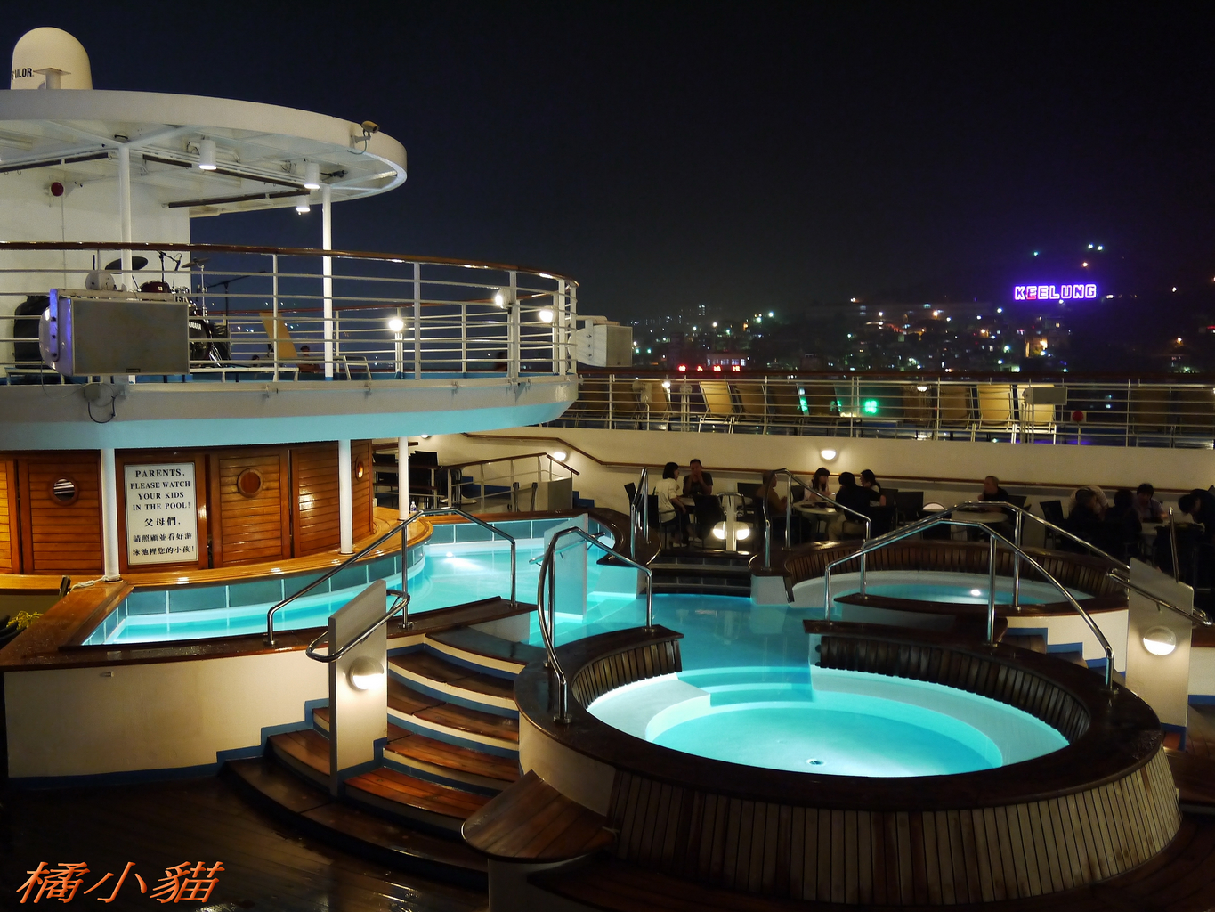 果然是豪華郵輪!!! 連最弱的餐點看起來都覺得很高級 游泳池如果有比基尼辣妹伴游會更好XDD 夜景超美!!一度以為是高雄港((港口應該都長得很像吧!!!