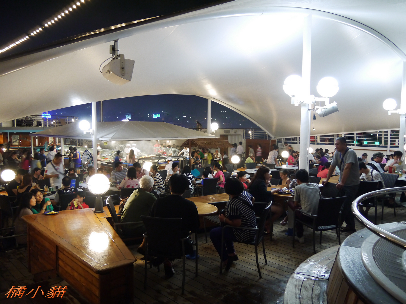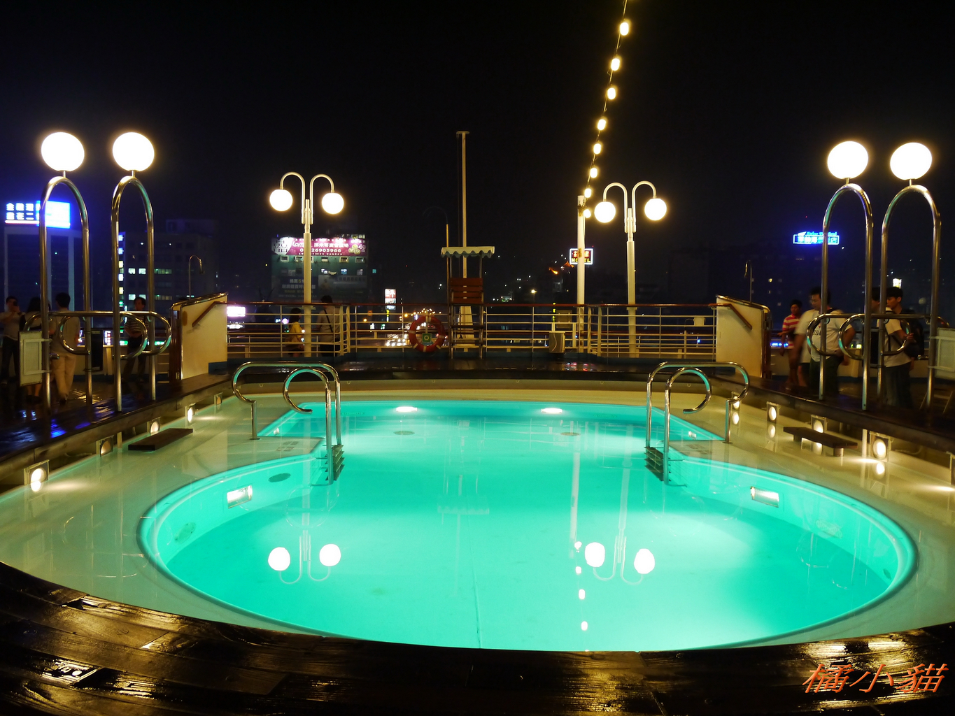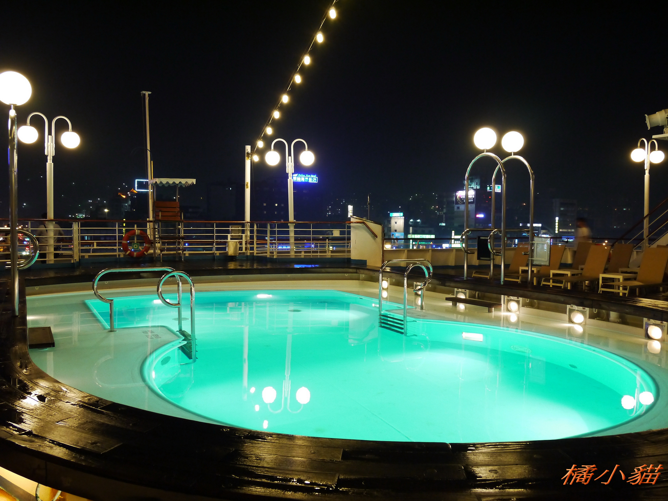 果然是豪華郵輪!!! 連最弱的餐點看起來都覺得很高級 游泳池如果有比基尼辣妹伴游會更好XDD 夜景超美!!一度以為是高雄港((港口應該都長得很像吧!!!