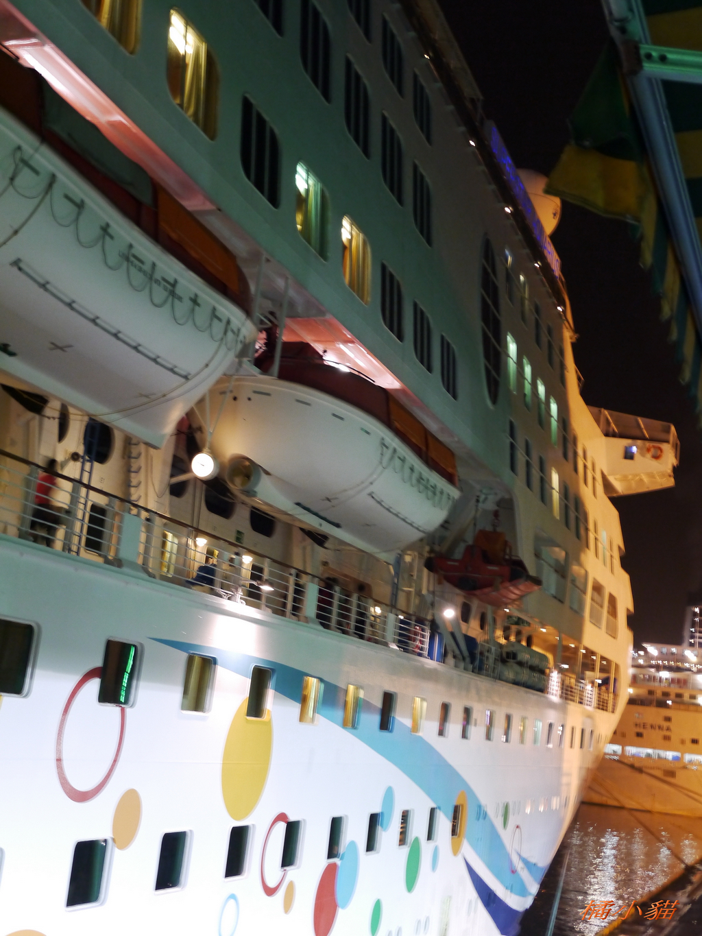 好豪華的郵輪~~ 夜晚的港口~~真美~~~