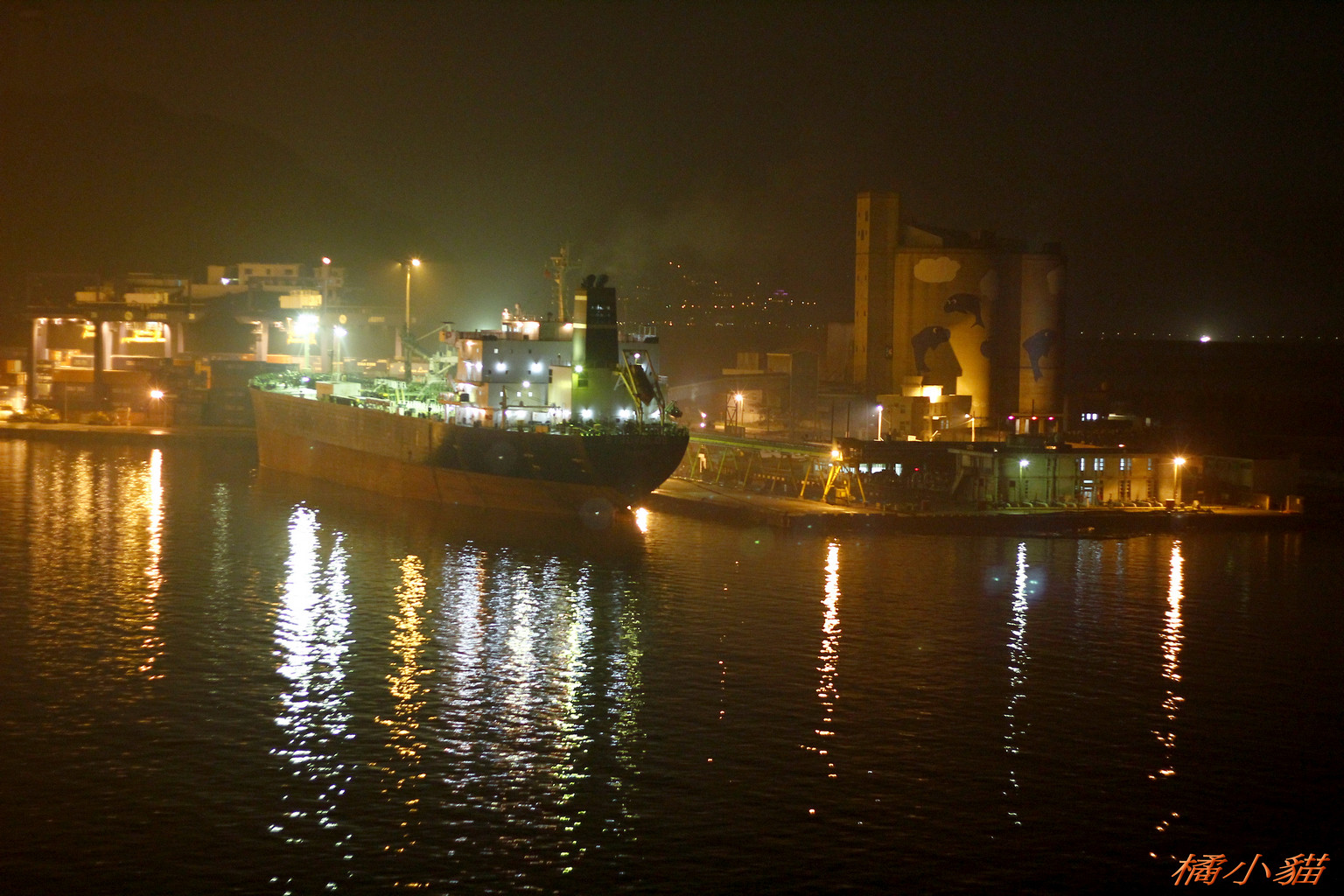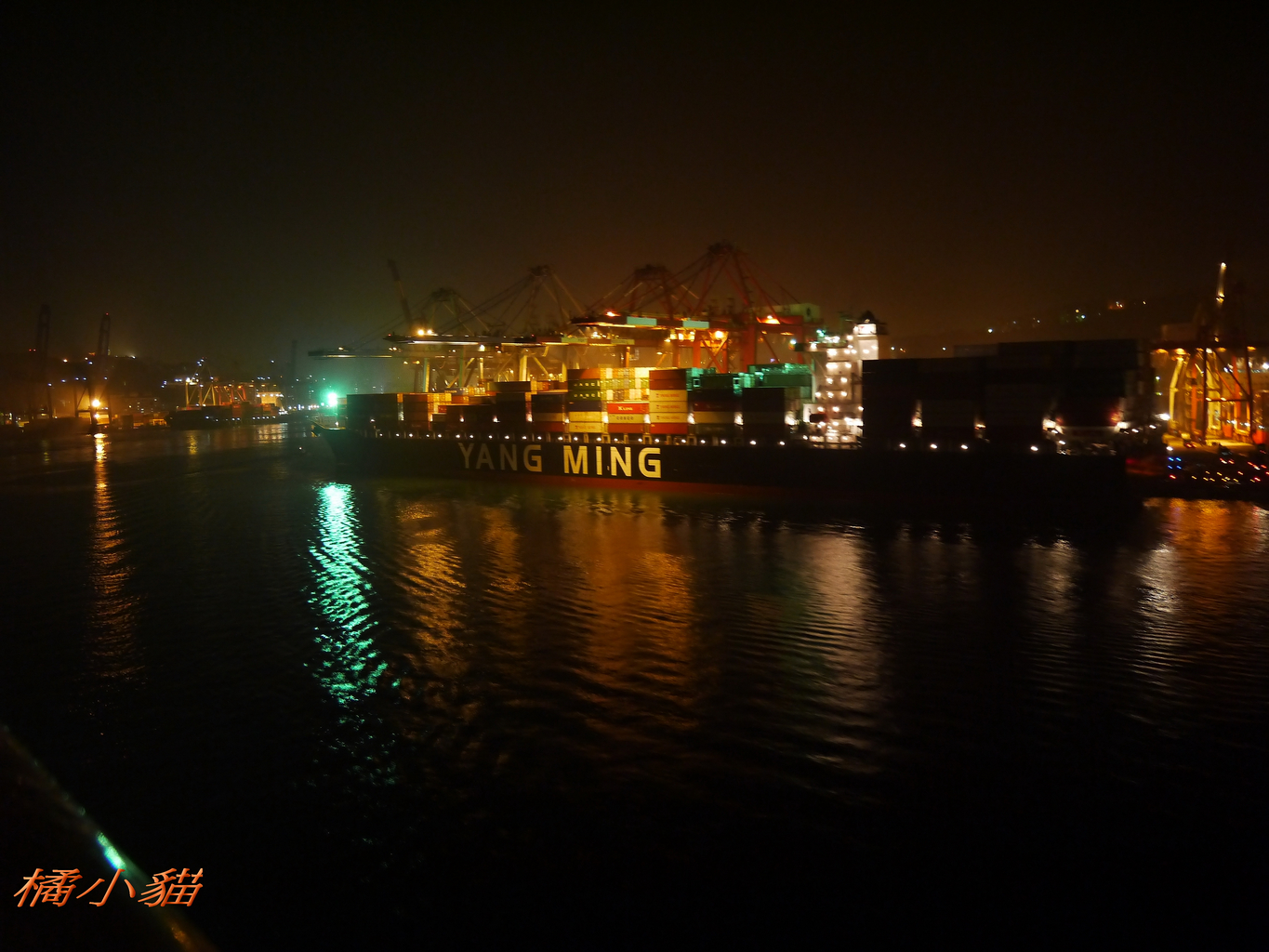港口的夜景很美,基隆港我以前去過!就是梅登上麗星郵輪^^ 船在晃?還沒出港口怎會? 暈船在晃? 真的很會牽拖......哈哈! 不過那陽明海運的貨櫃船拍的很清楚阿~