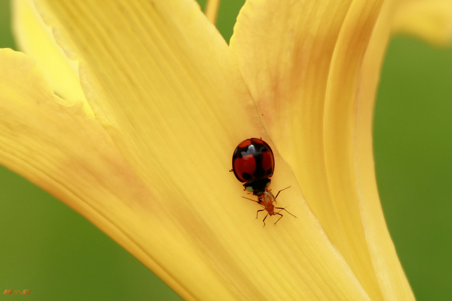 瓢蟲在金針上的照片有一種特別的寧靜感呢! 雖然不知不覺會想喝金針湯XDDD貓貓又想到吃得上面去了 :P