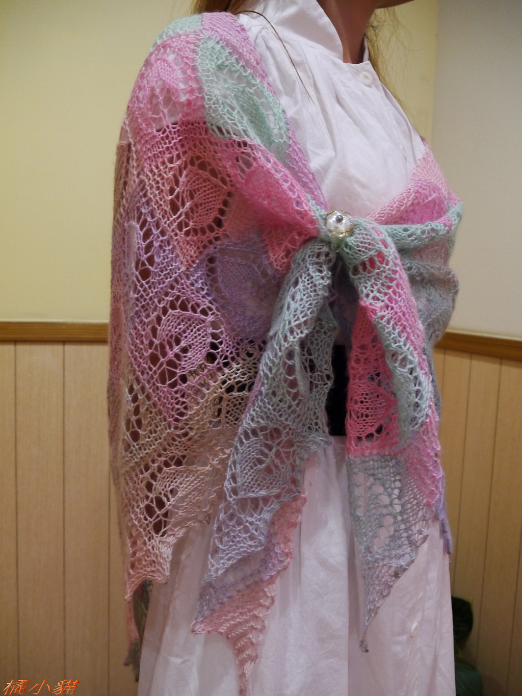 嘩~~美呆了!!! 這披肩真的好美喔! 工好細,顏色好搭,這是哪位大師編織的呢? 我眼裡完全沒見到什麼麻豆不麻豆的! 眼裡就只見到那條高雅優美的披肩!!! (喔喔~小白鯨的鼻子變長了~~~~~)