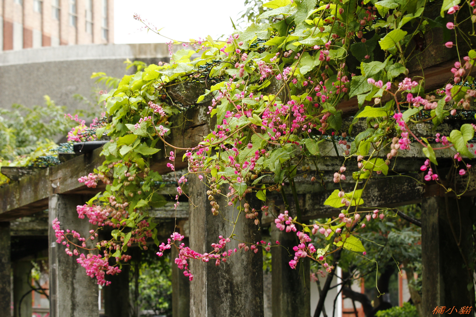 喵拍得好 ! 這珊瑚藤棚架化很美,如果野放則成為林木殺手之一