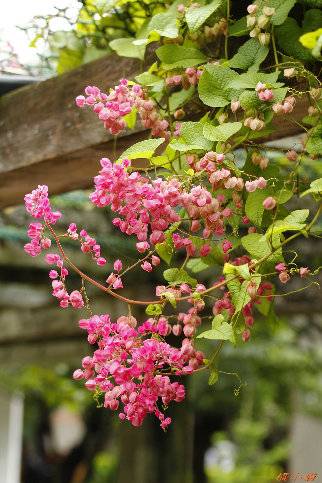 嬌小玲瓏好可愛的珊瑚藤 開花時滿屋頂的粉紅~~~超美ㄋㄟ[:emotion1389600513-1859365991.gif]