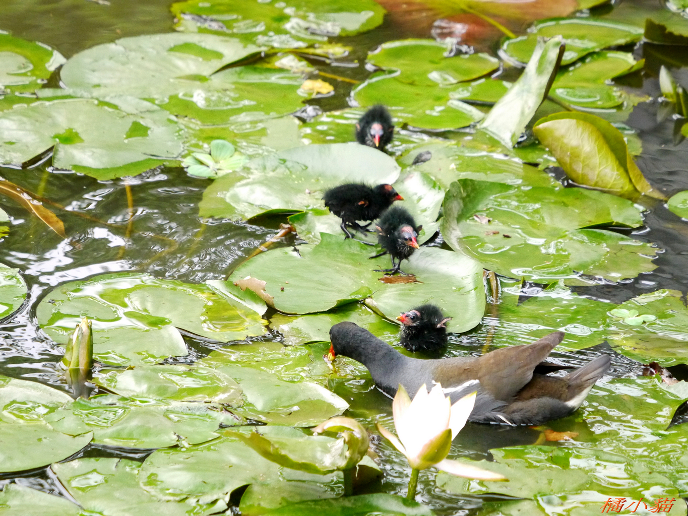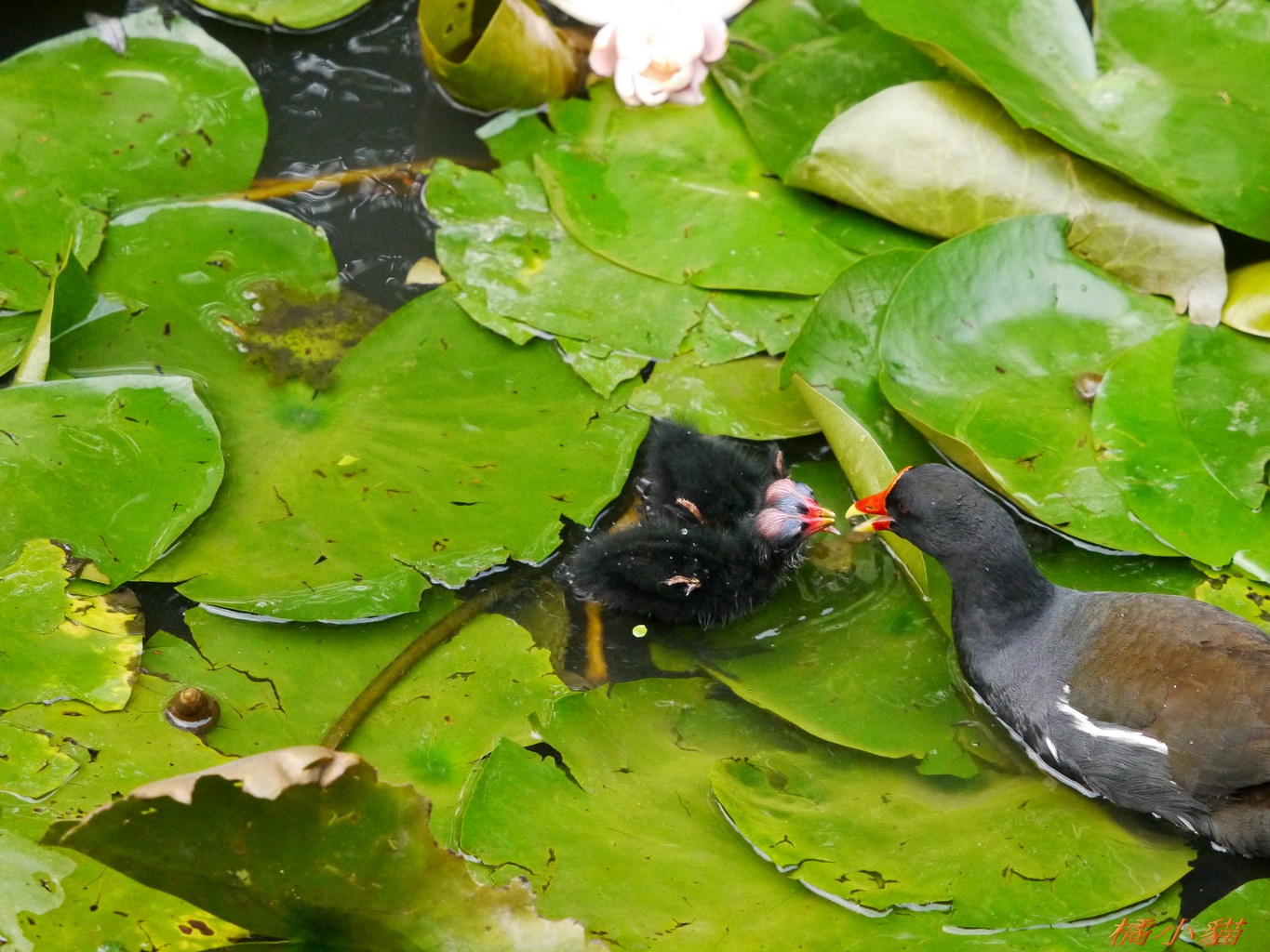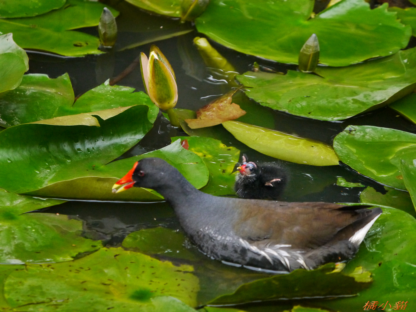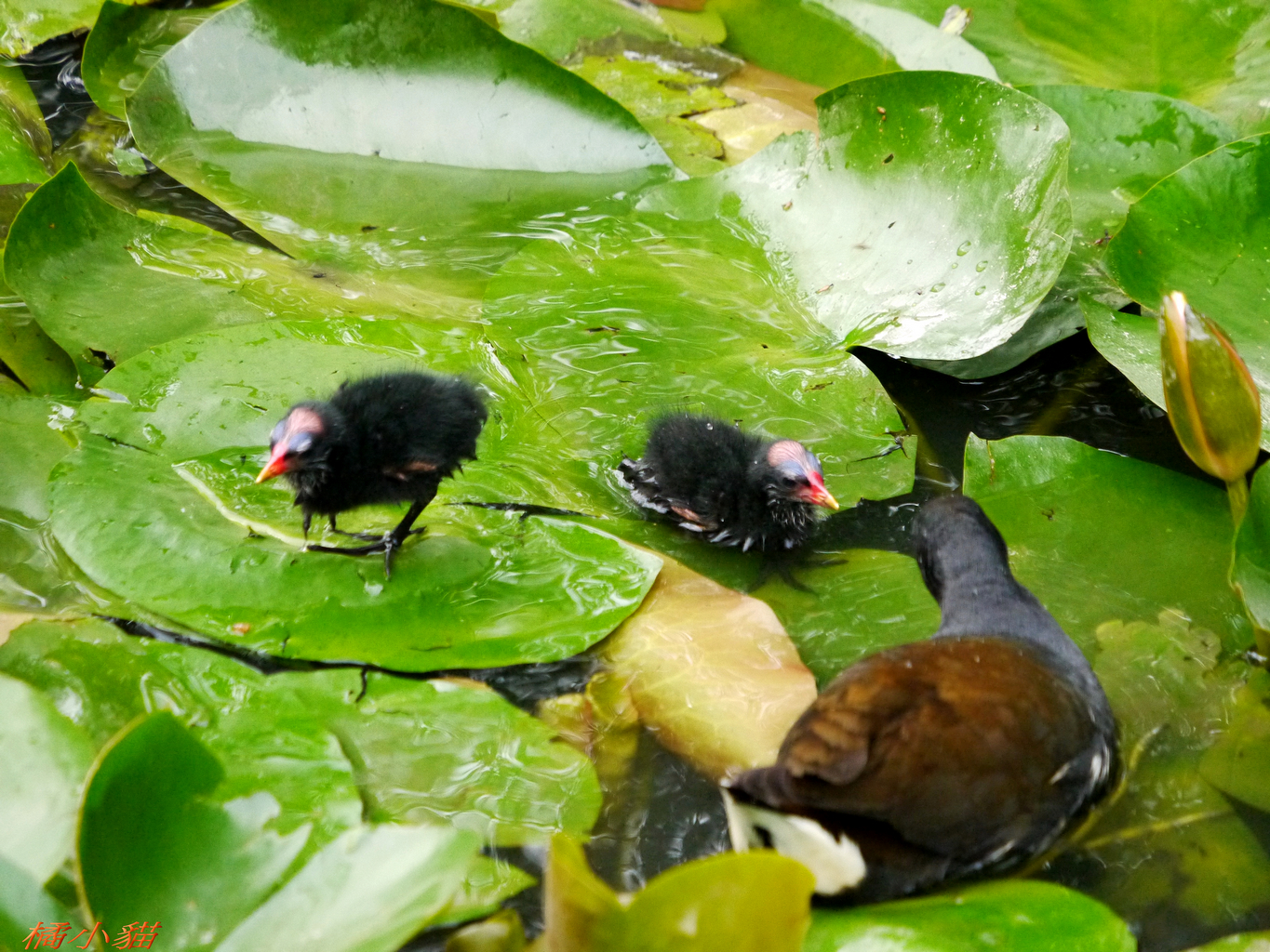 蓮花池裡 蓮花開 但此時的紅冠水雞~餵食秀~~~比蓮花更搶眼 橘小貓真是有耐心 張張精彩紀錄母鴨養小鴨的可愛!