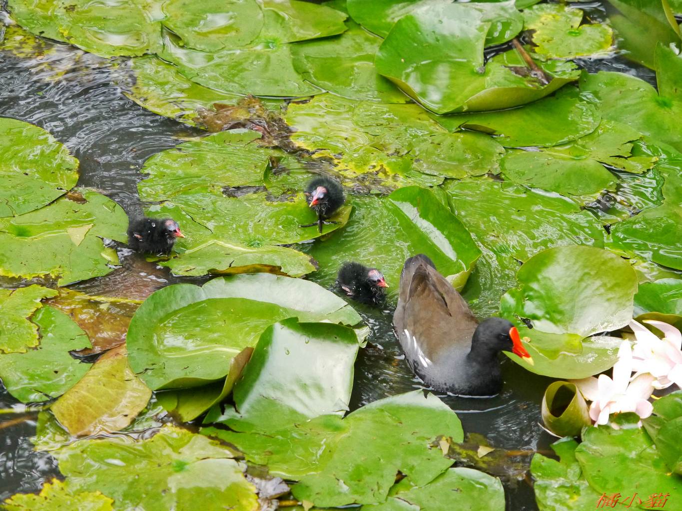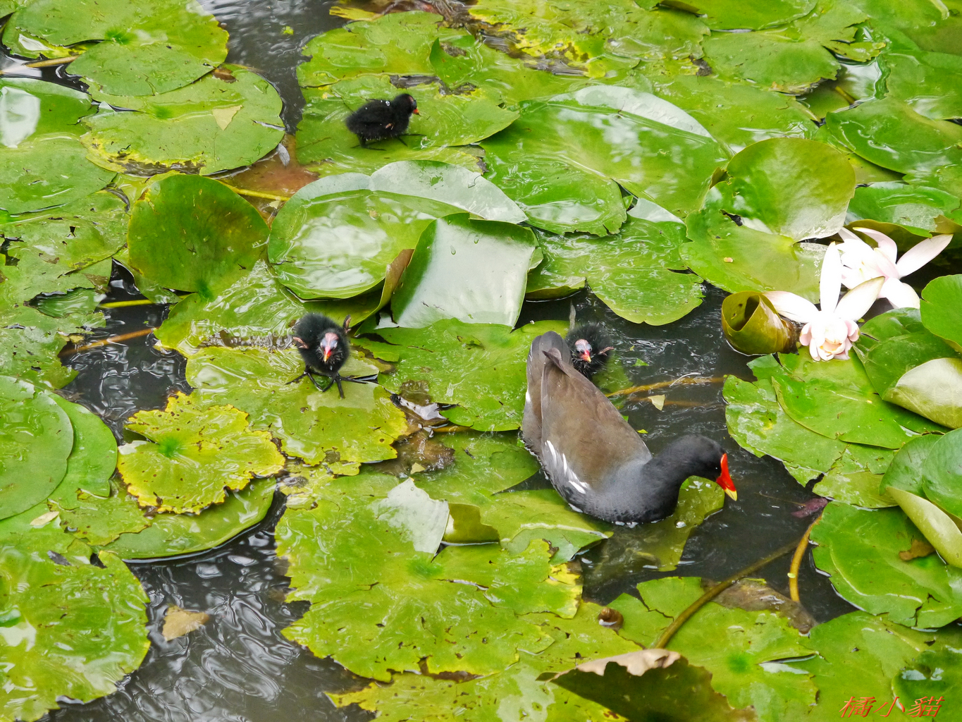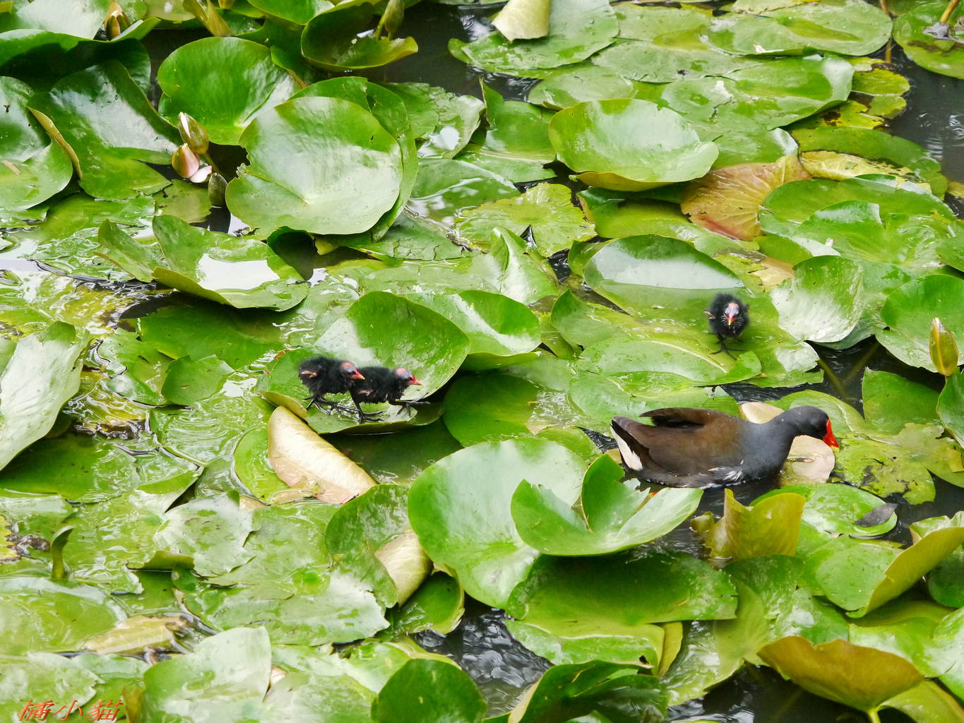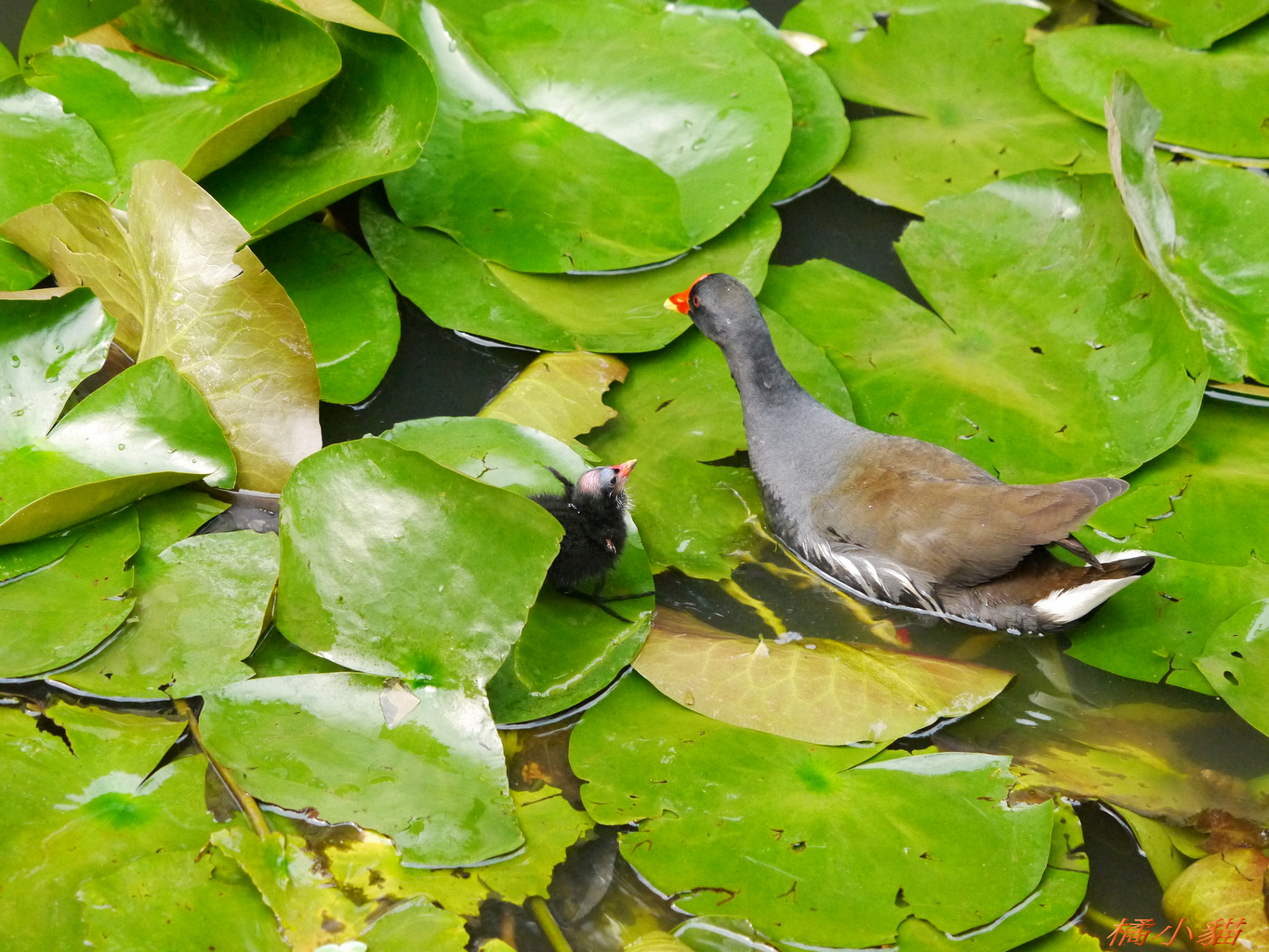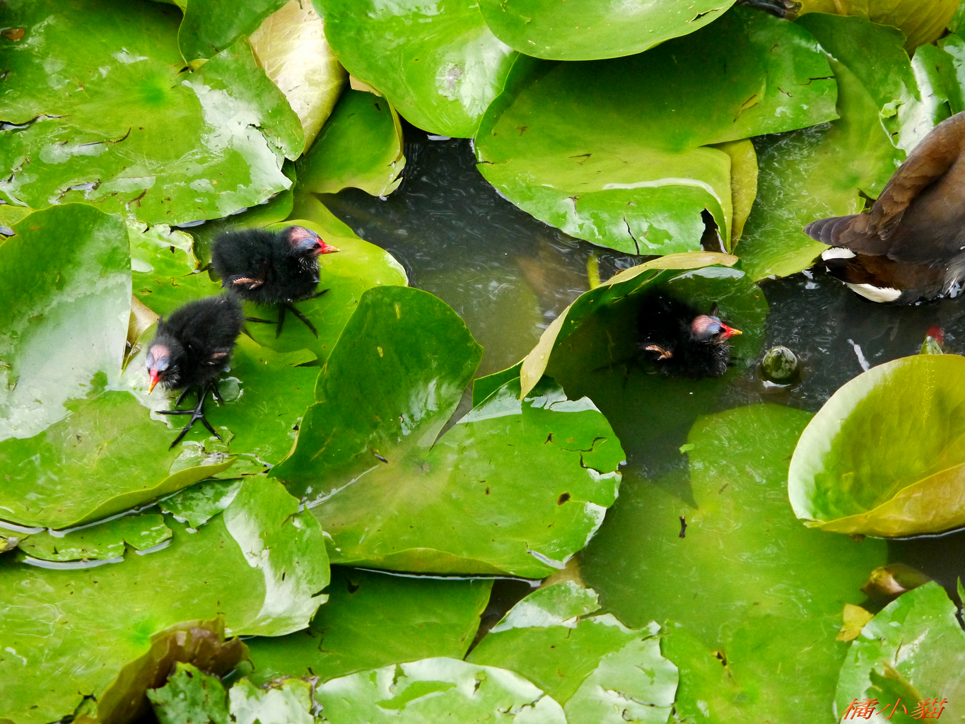 蓮花池裡 蓮花開 但此時的紅冠水雞~餵食秀~~~比蓮花更搶眼 橘小貓真是有耐心 張張精彩紀錄母鴨養小鴨的可愛!