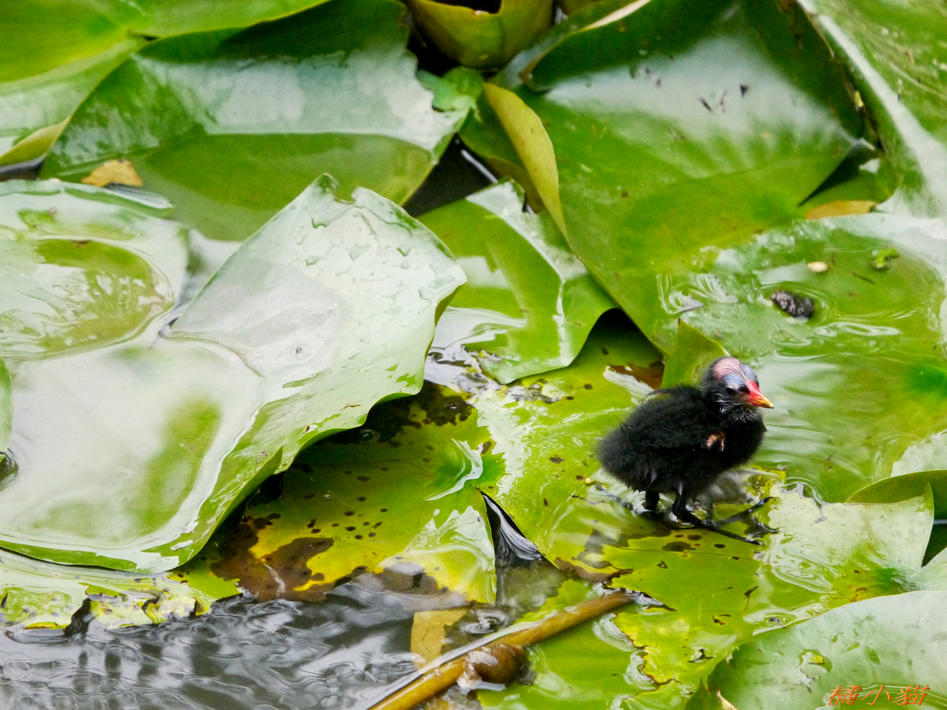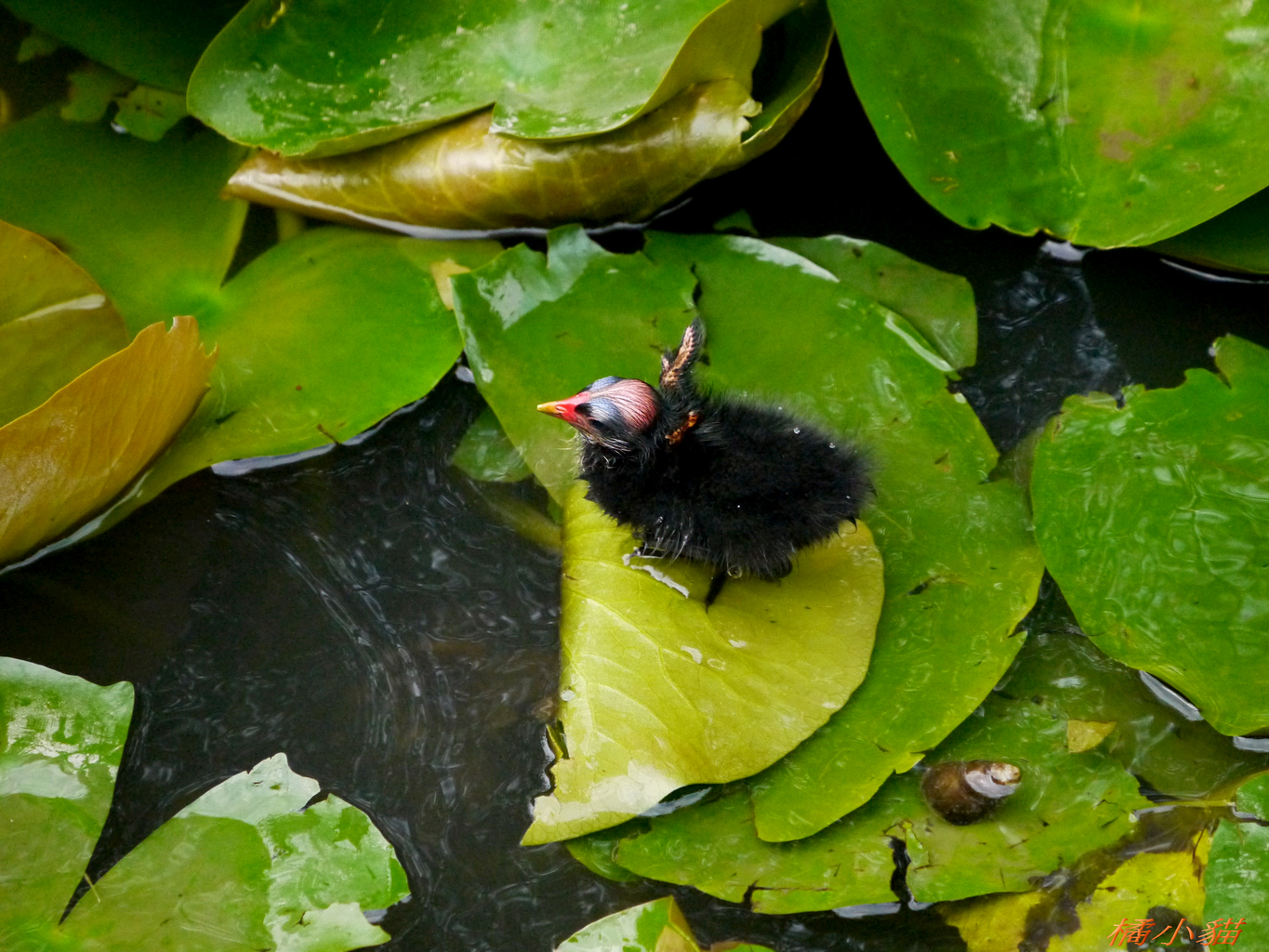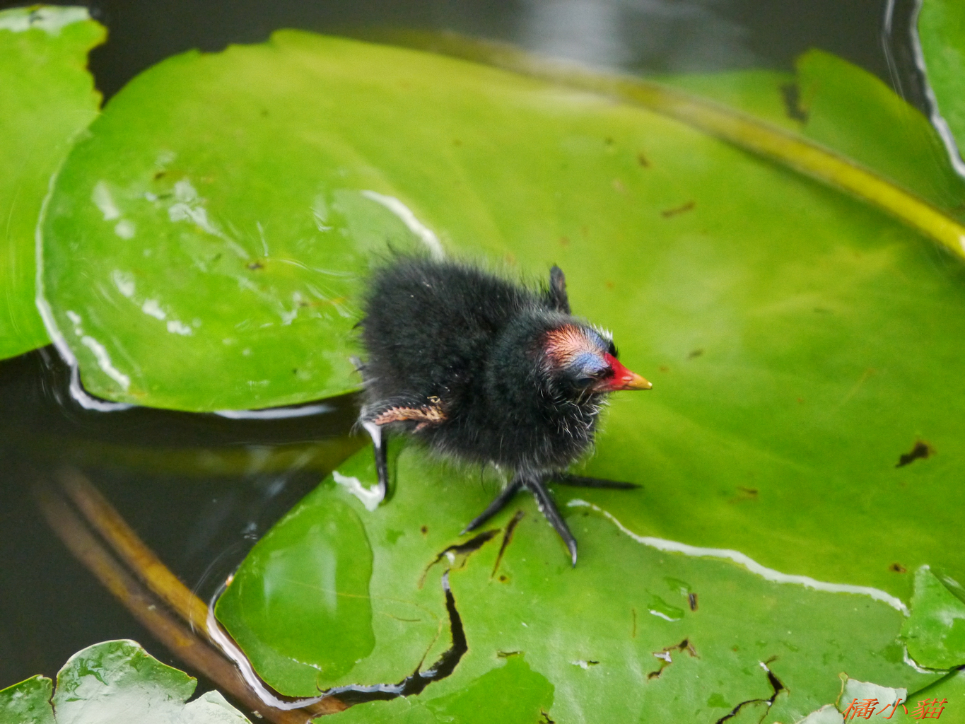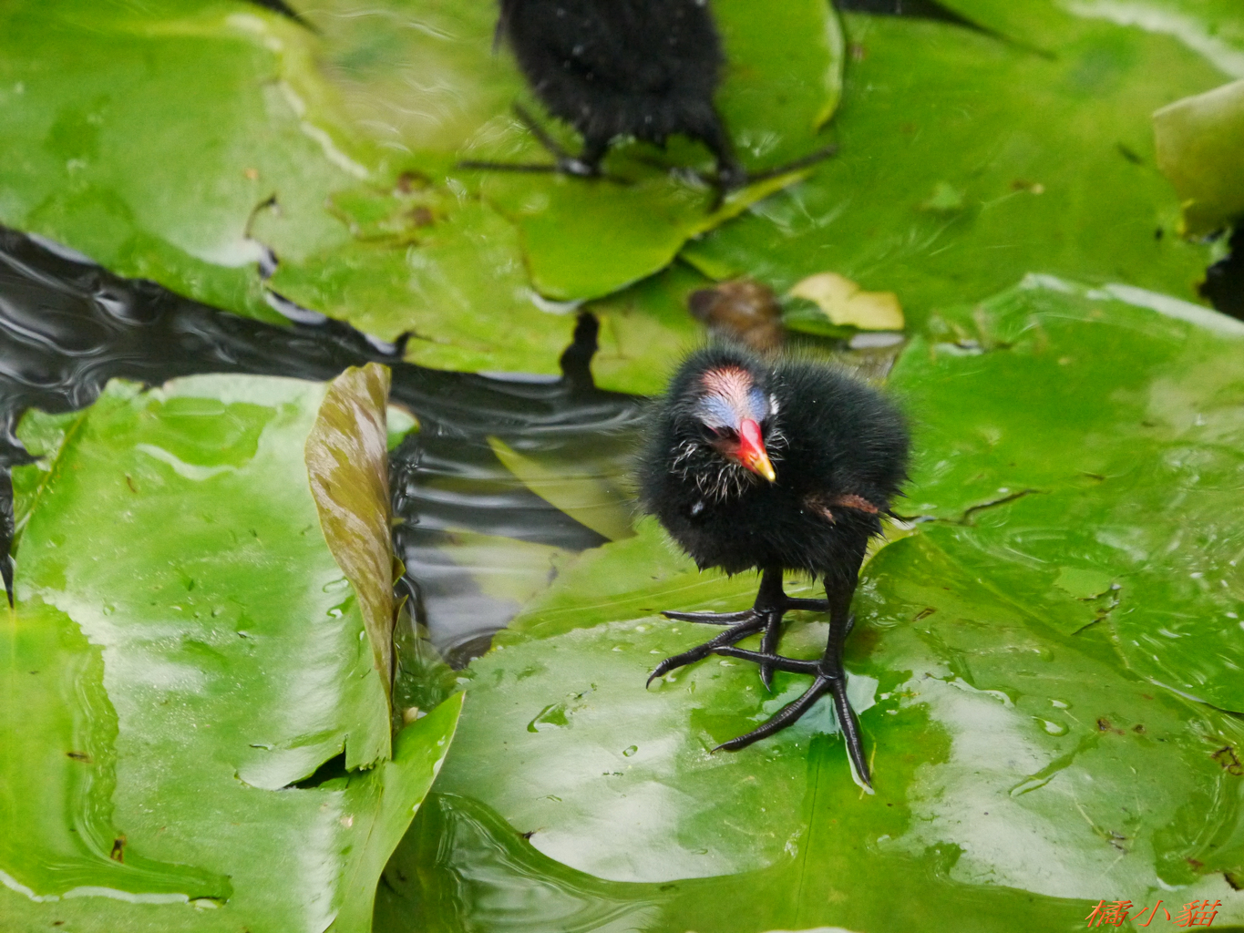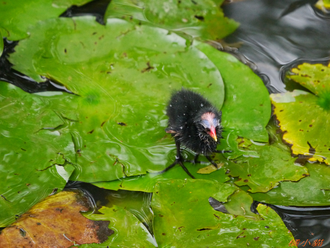 好古椎的紅冠水雞寶寶 黑眼眶像戴墨鏡勒 植物園的紅冠水雞大概很親民吧 我這邊的紅冠水雞 人不躲起來是拍不到的