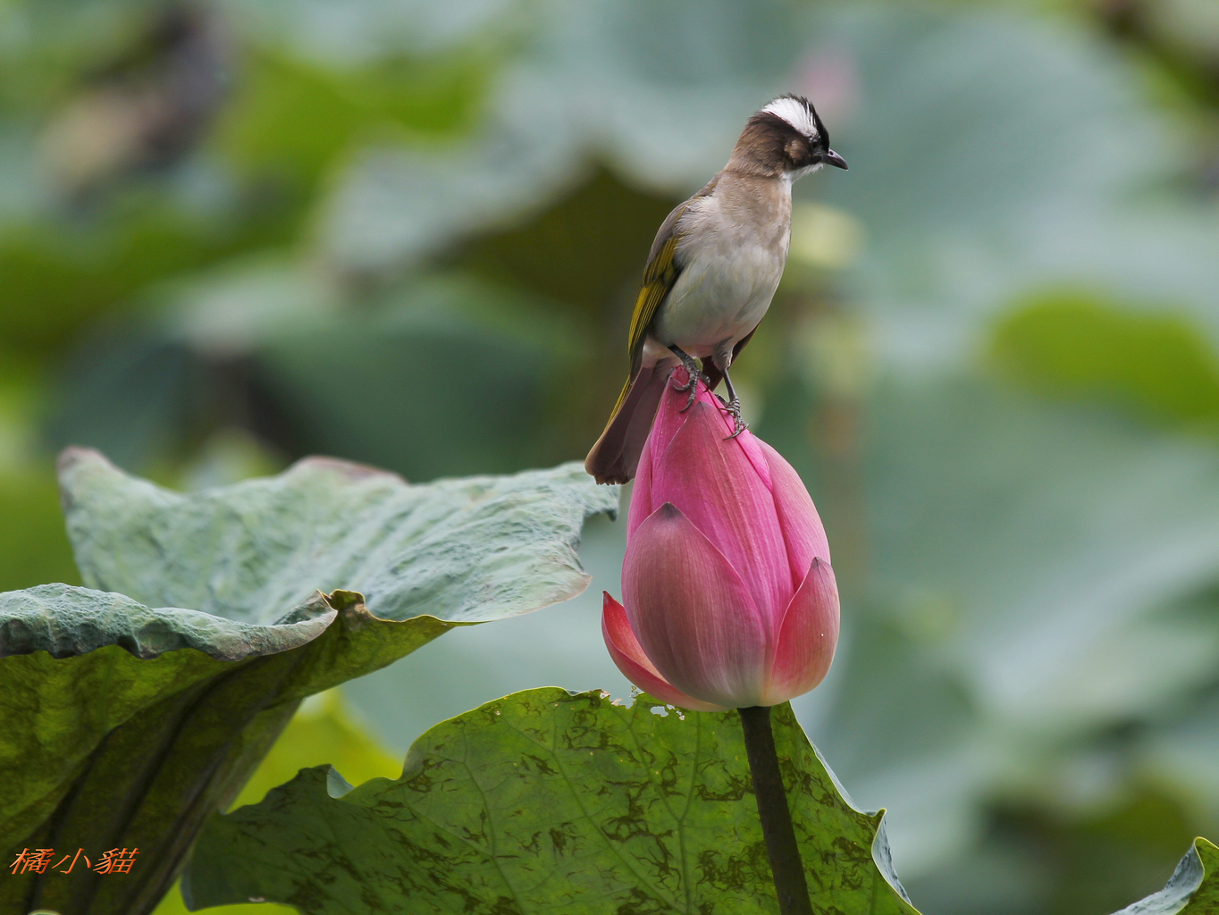 拍到荷花上停白頭翁鳥真的很難得ㄛ,令人印象深刻的一張