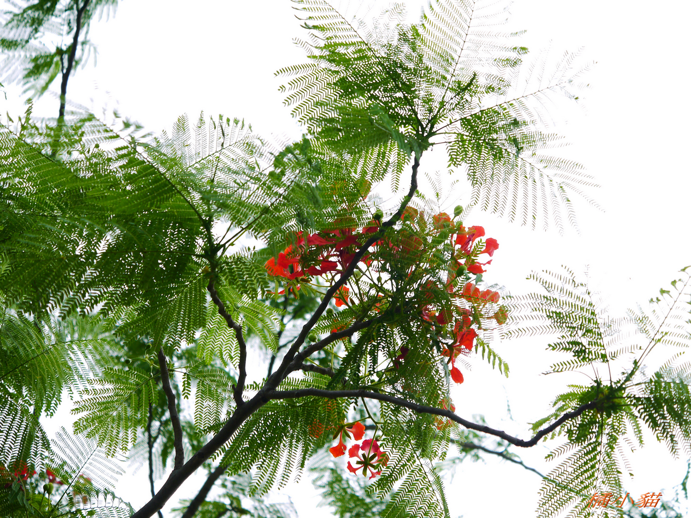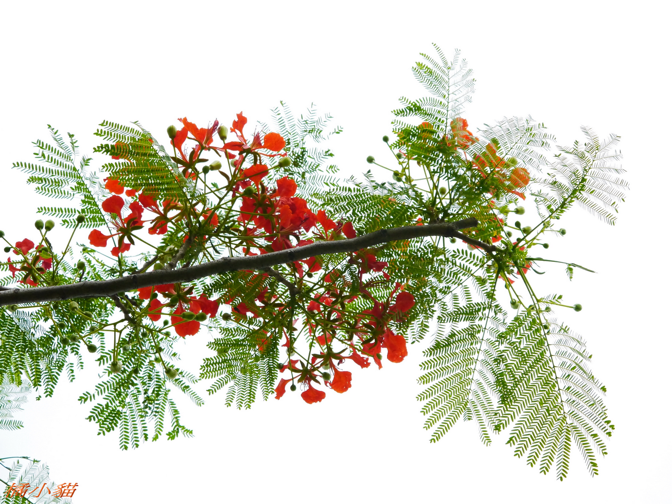 原來這個就是小貓所說的鳳凰花, 真的非常的漂亮, 而且紅花配綠葉,好色系,真的很漂亮。 (謎:感謝分享^^