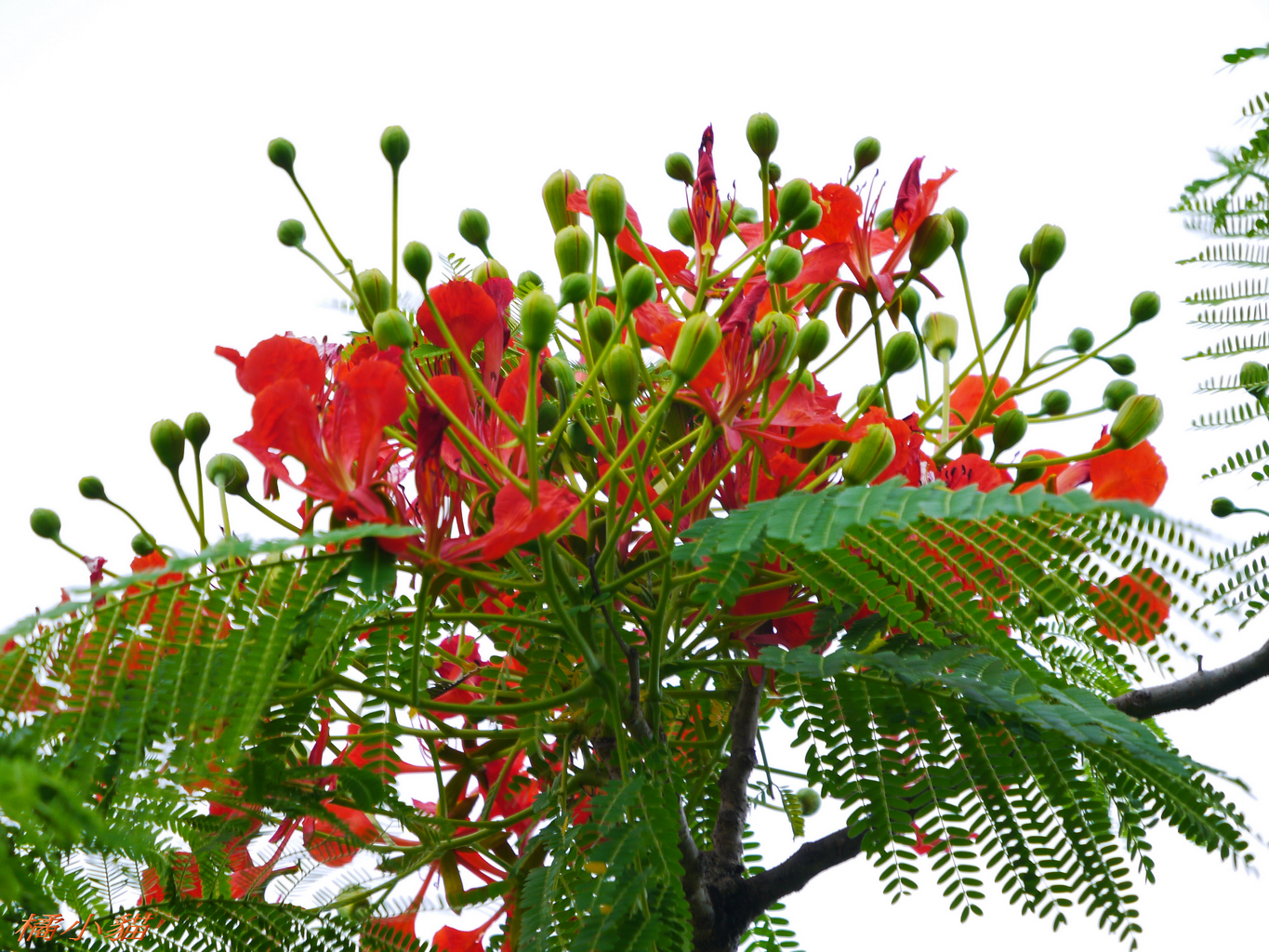 還有不少花苞ㄟ! 記得我之前分享過我家附近盛開的鳳凰花嗎?同一棵最近在開第二次,不過沒有第一次那麼多,看看起來也不比你拍到這個少喔。