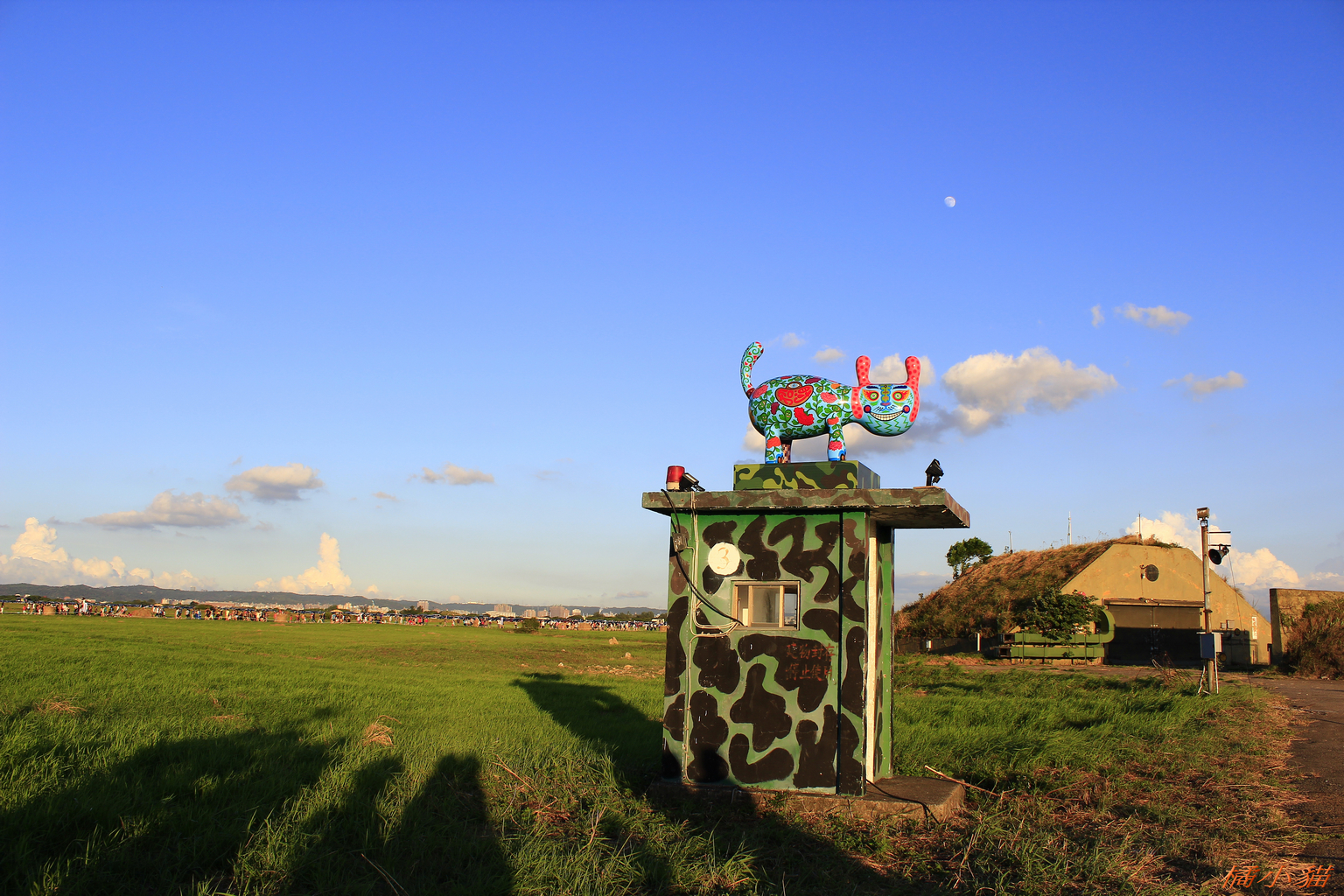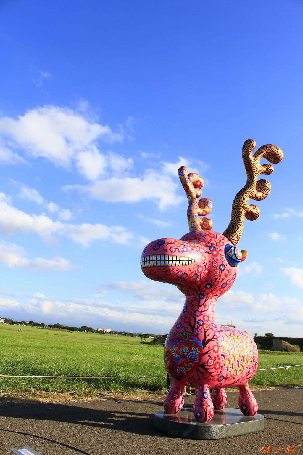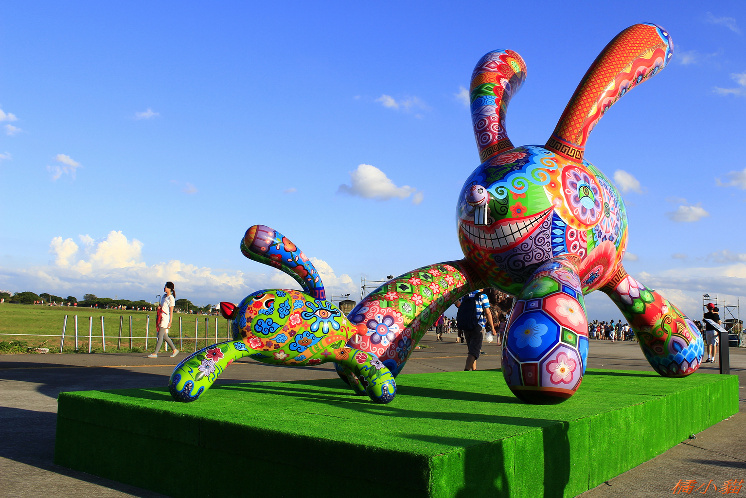這次在海軍基地展出,地方很大,可惜沒什麼遮蔭。 這次展出作品我覺得還不錯,本來以為會移地再展,沒想到並沒有安排,昨天發生意外,月兔被燒了,好可惜。