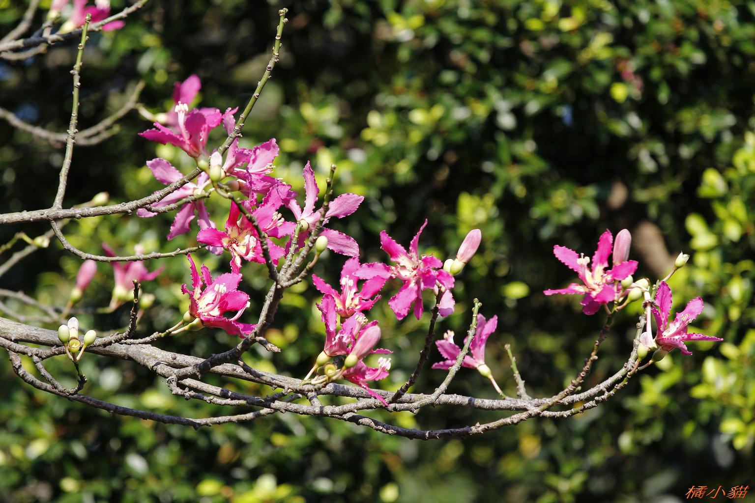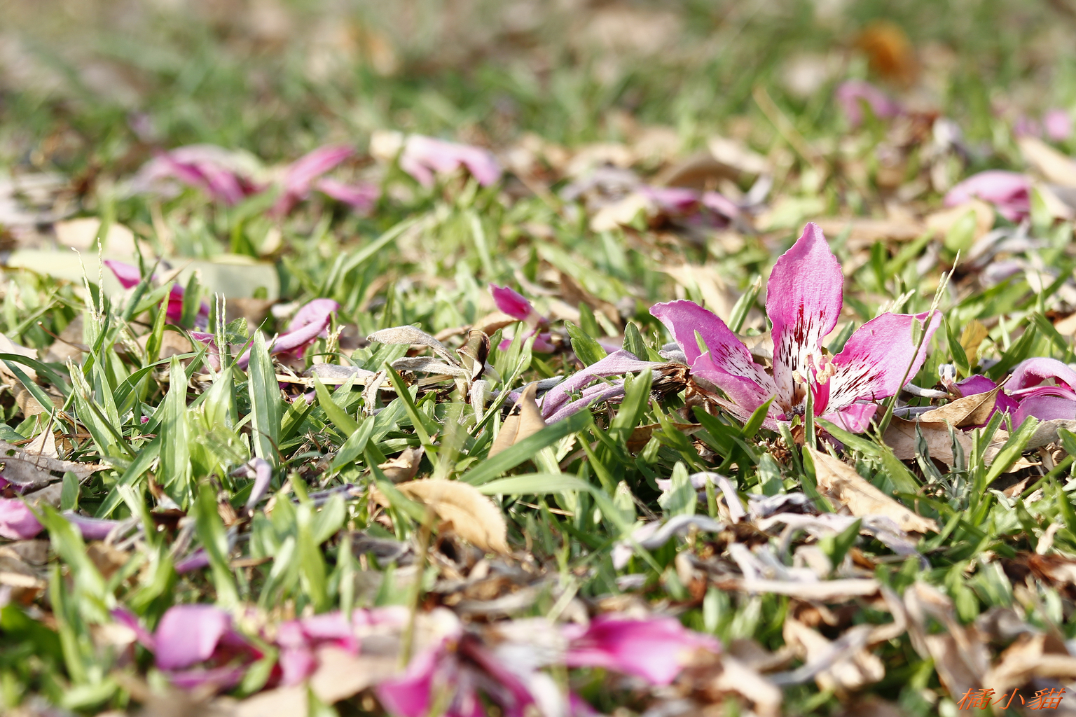 對啊,這幾天新竹這裡的山上美人樹也開得一樹桃紅呢,然後是一地的粉紅落英....看得出來橘小貓很喜歡美人樹吧,照片多到我光是用滑鼠滑都滑得手痠惹. 囧>