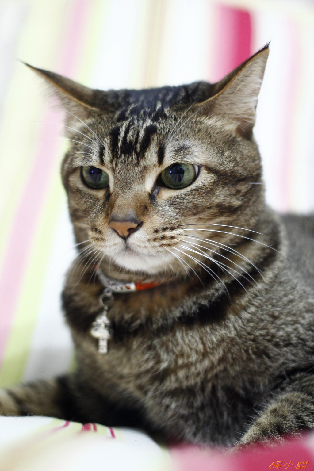 我家貓 從被我撿回家 就被我戴習慣了 讓他帶項圈 給他有種家貓的感覺 而不再是隻小浪浪~