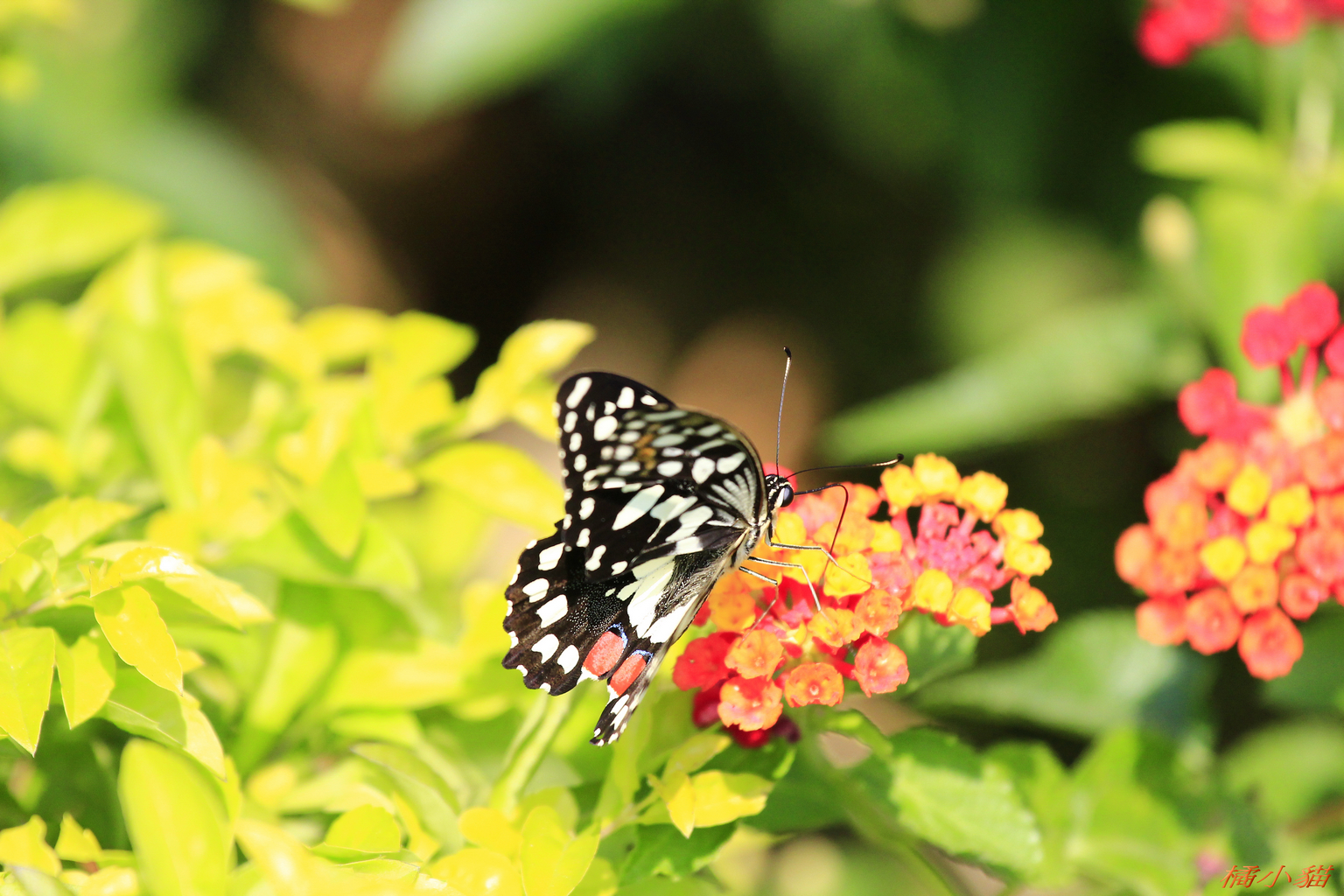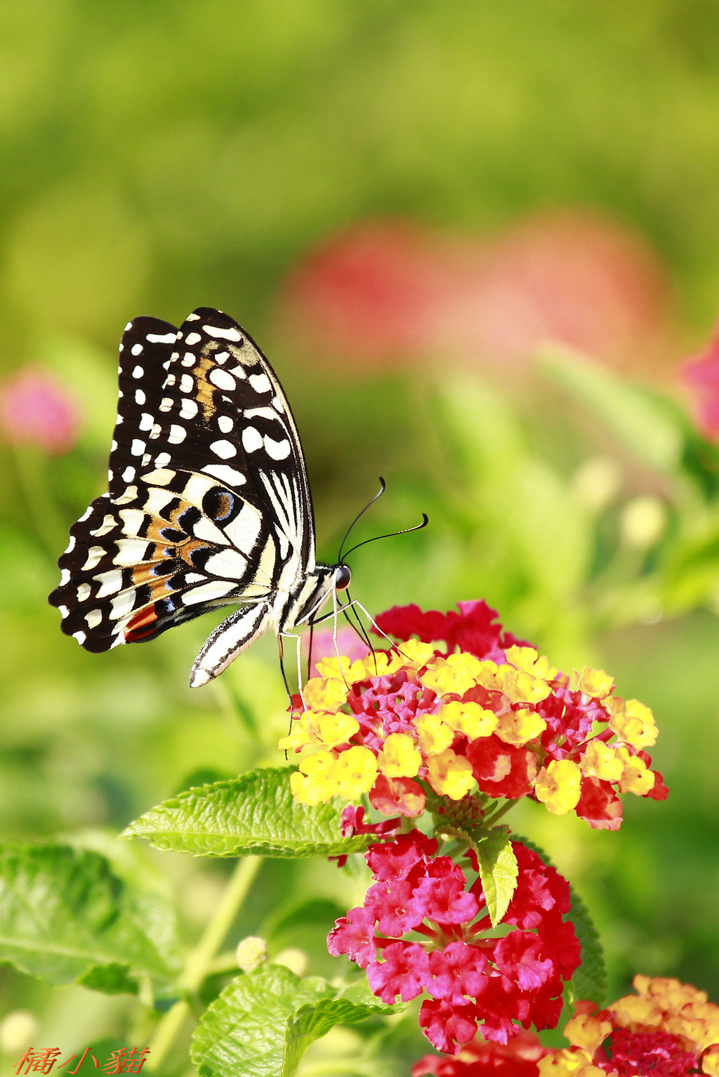 蝴蝶蝴蝶生的真美麗 頭帶著金絲身穿花花衣~ 小貓也要很美麗唷^^