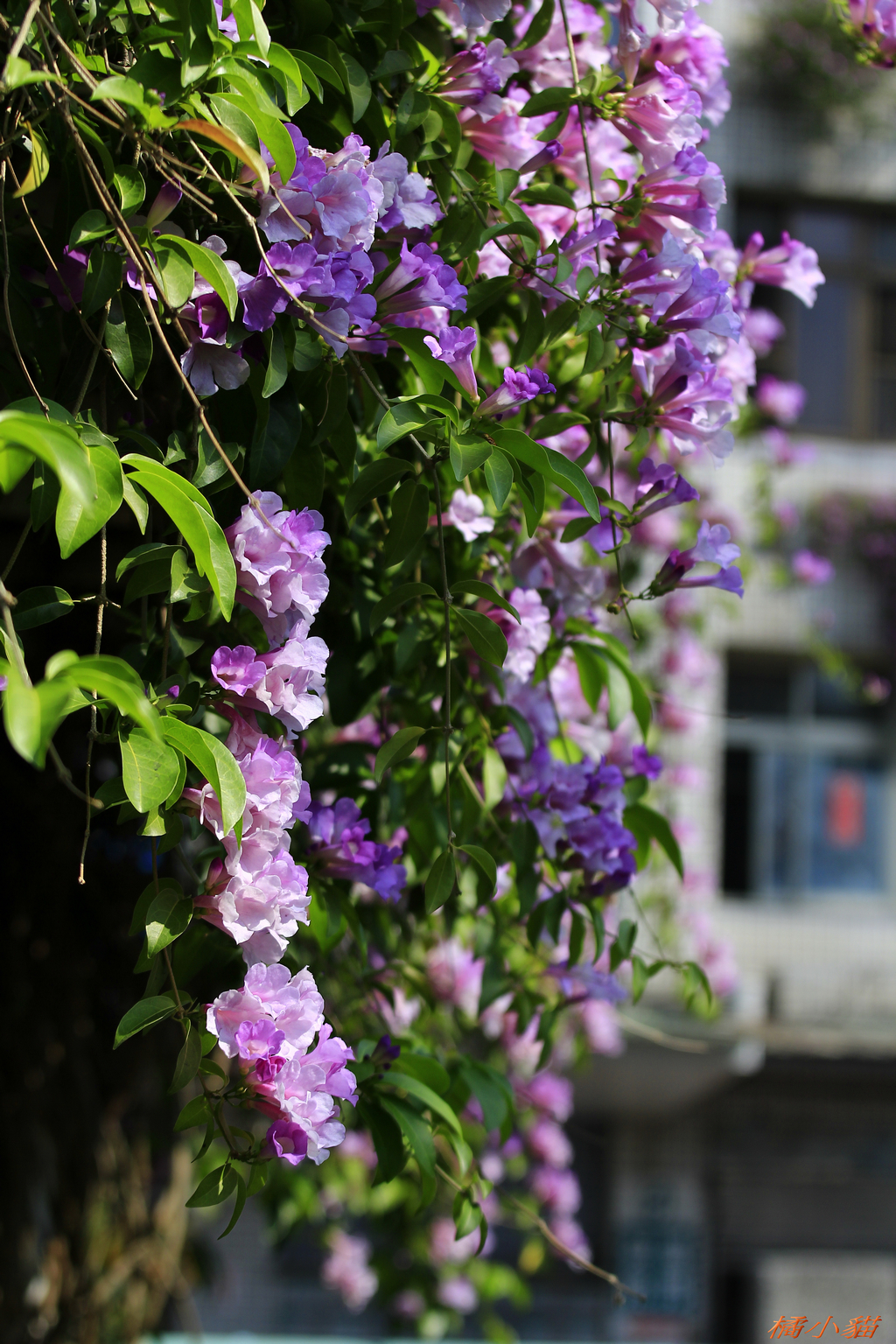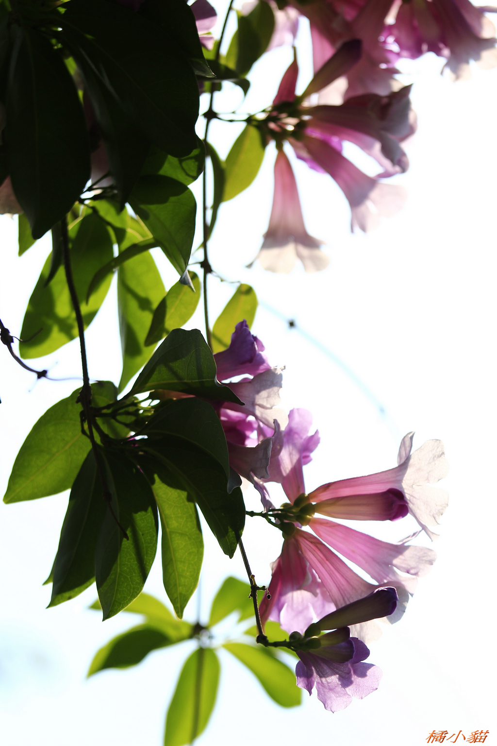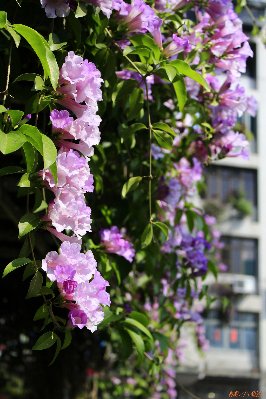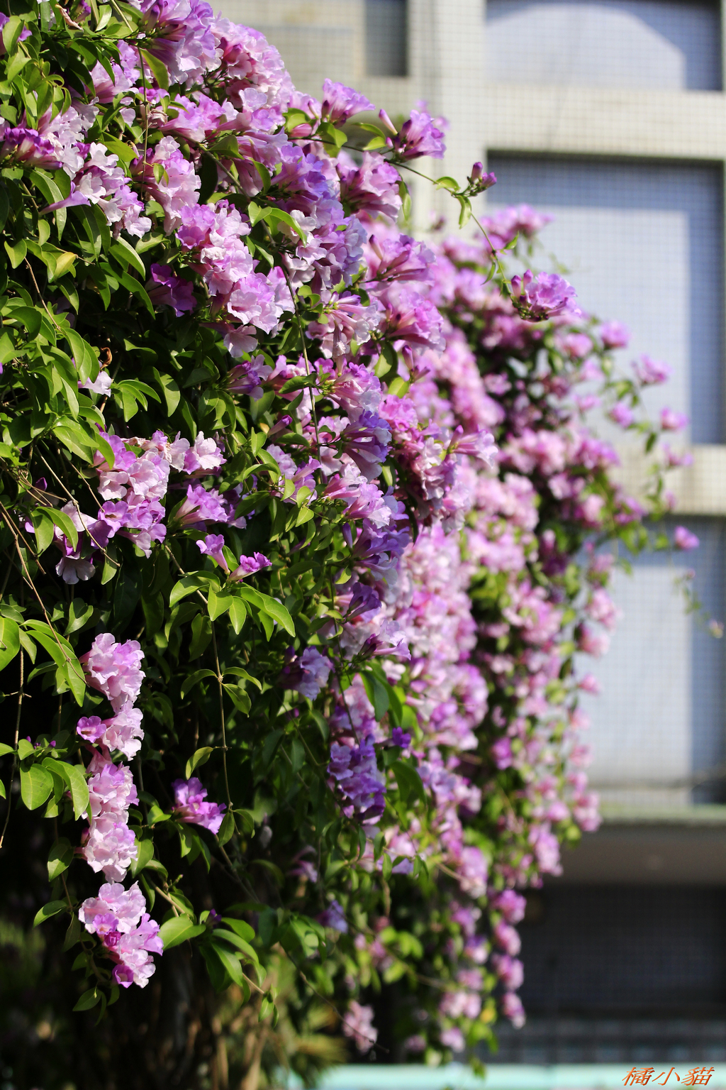 滿開的蒜香藤真的好美,逆光拍好美呀清新可人喔