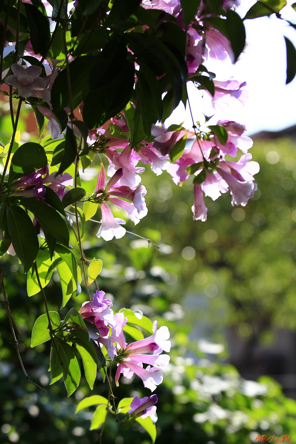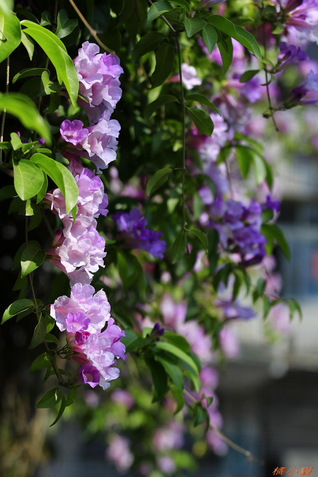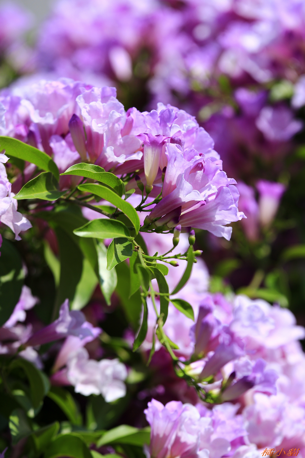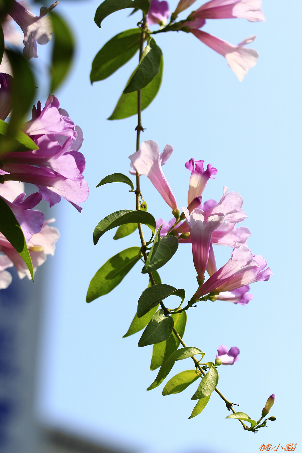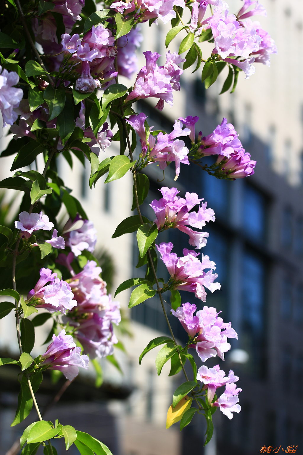 滿開的蒜香藤真的好美,逆光拍好美呀清新可人喔
