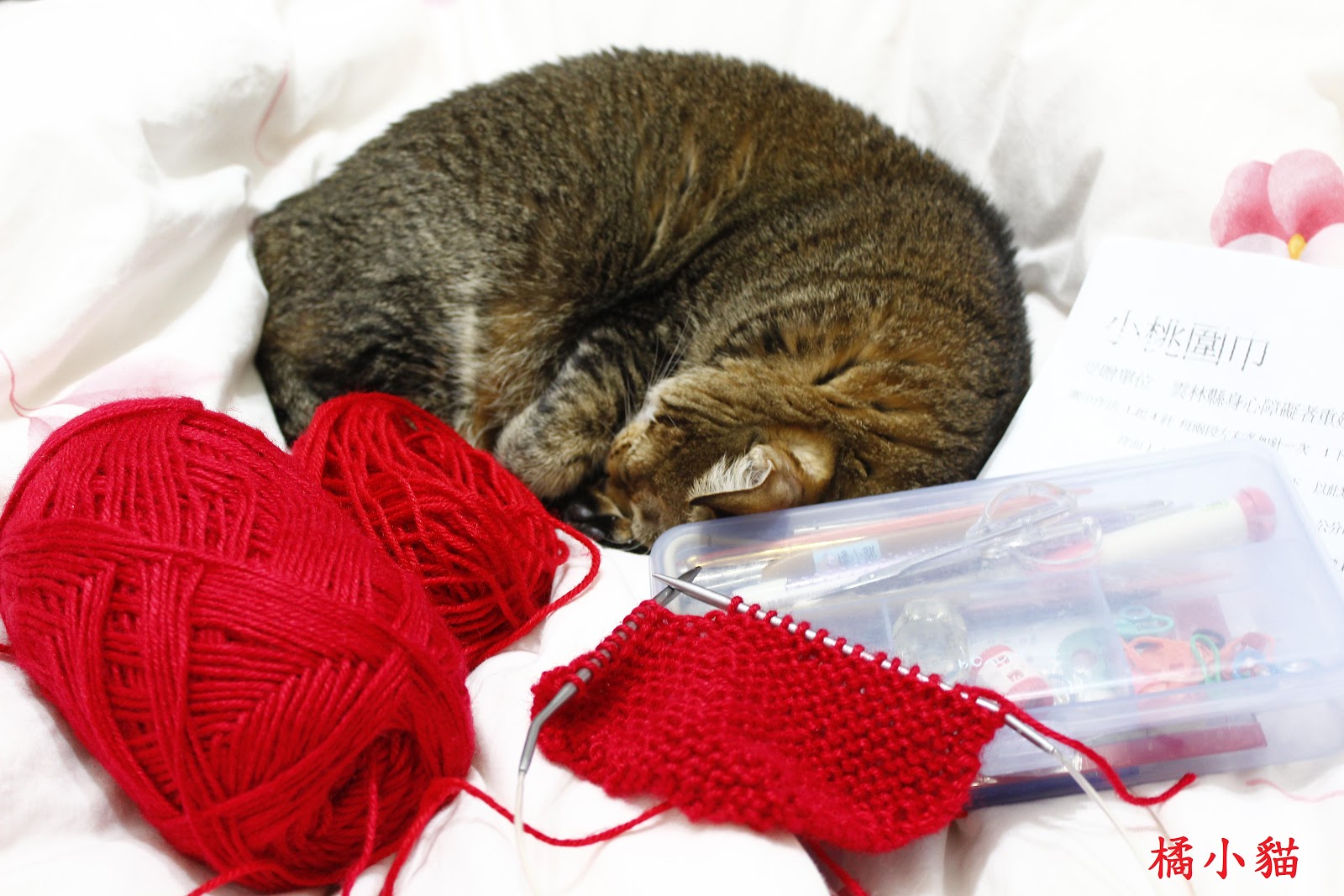手好巧,織的真美麗 我已經忘記怎麼織圍巾了... 橘子睡得香甜超可愛