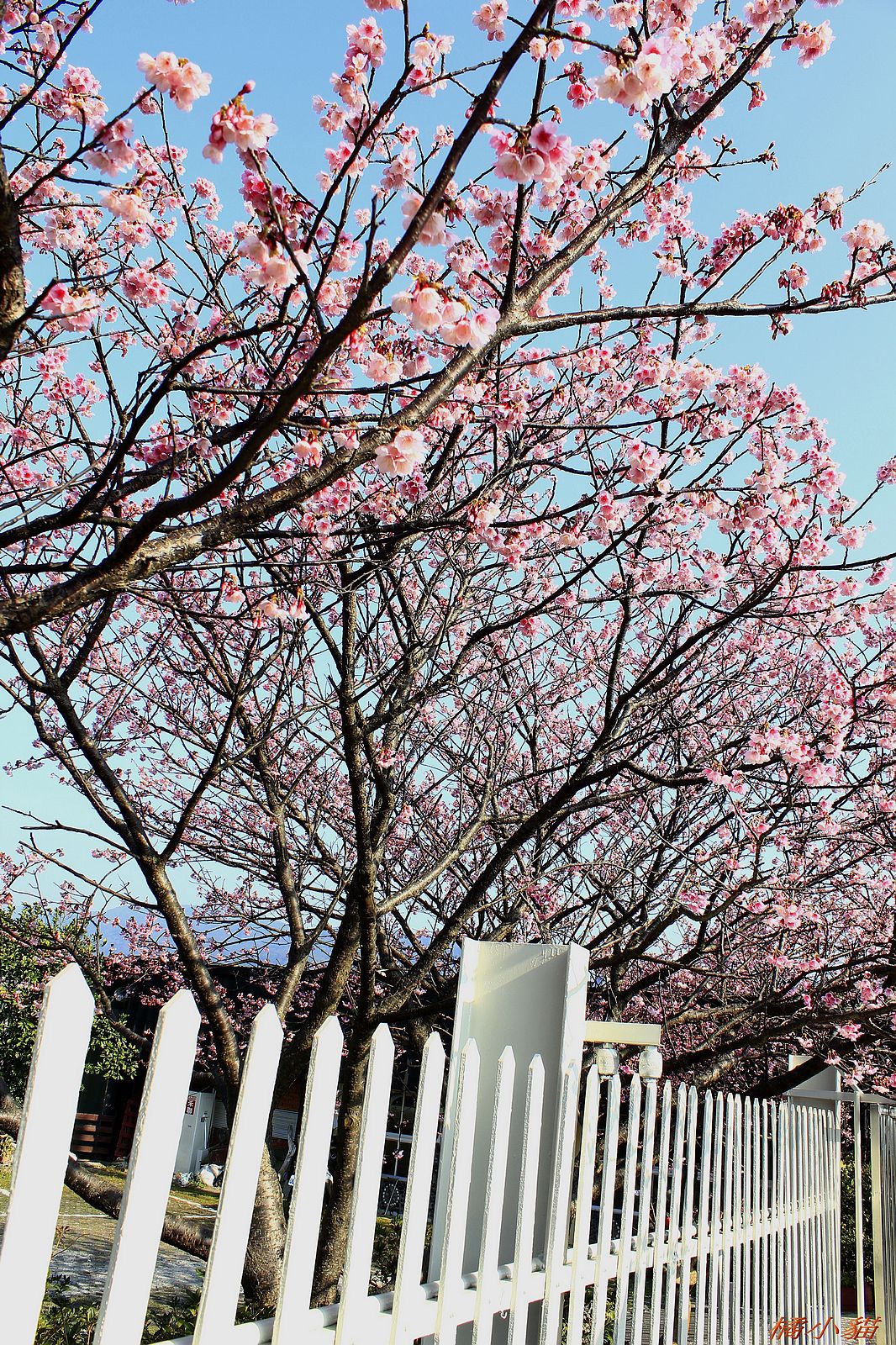 白籬笆關不住櫻紅 燦然春色喜盈盈 一樹粉妍映車窗 一枝花漾出牆圍 都讓人陶醉 拍得好美!! 晚安~~