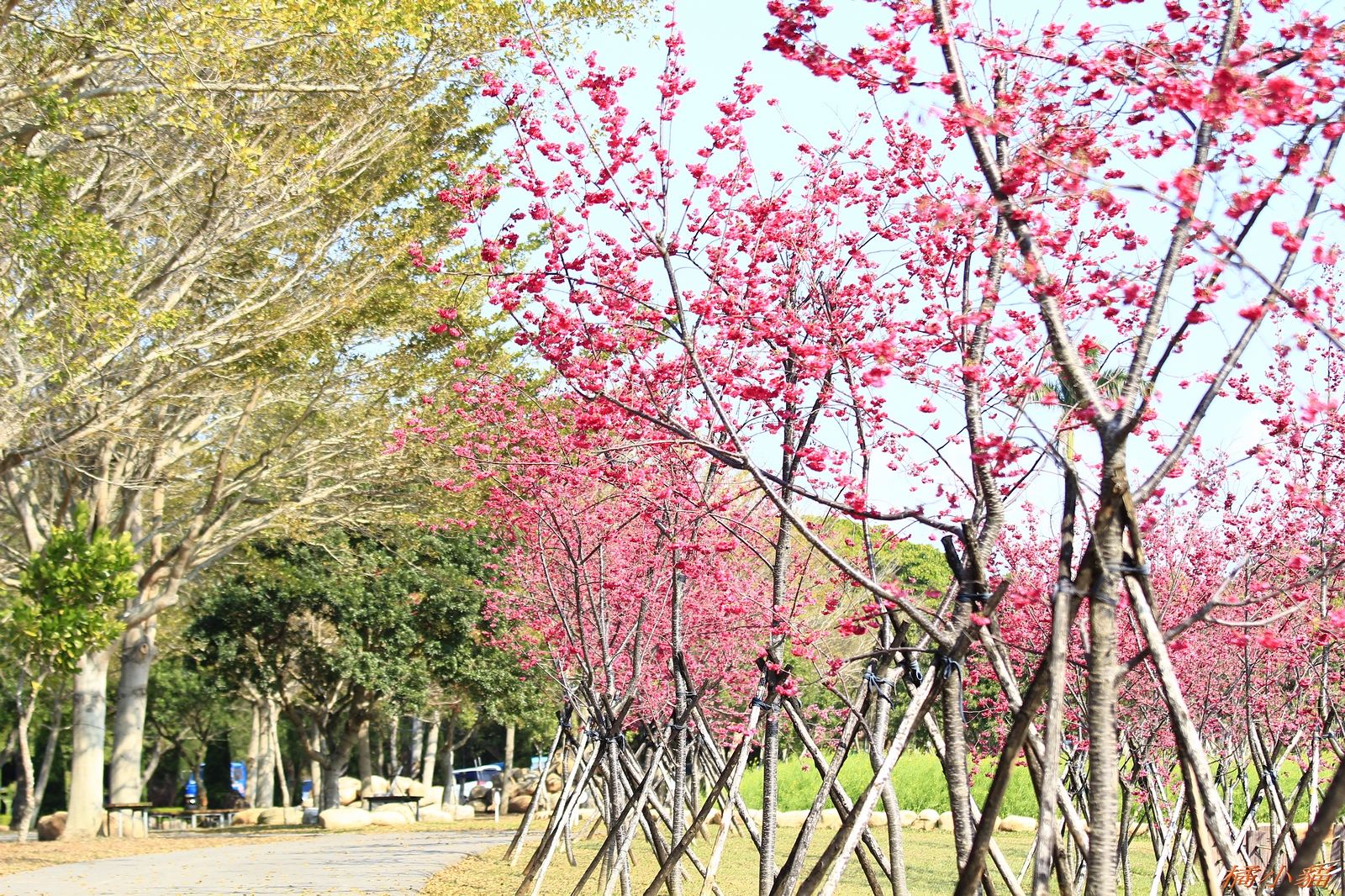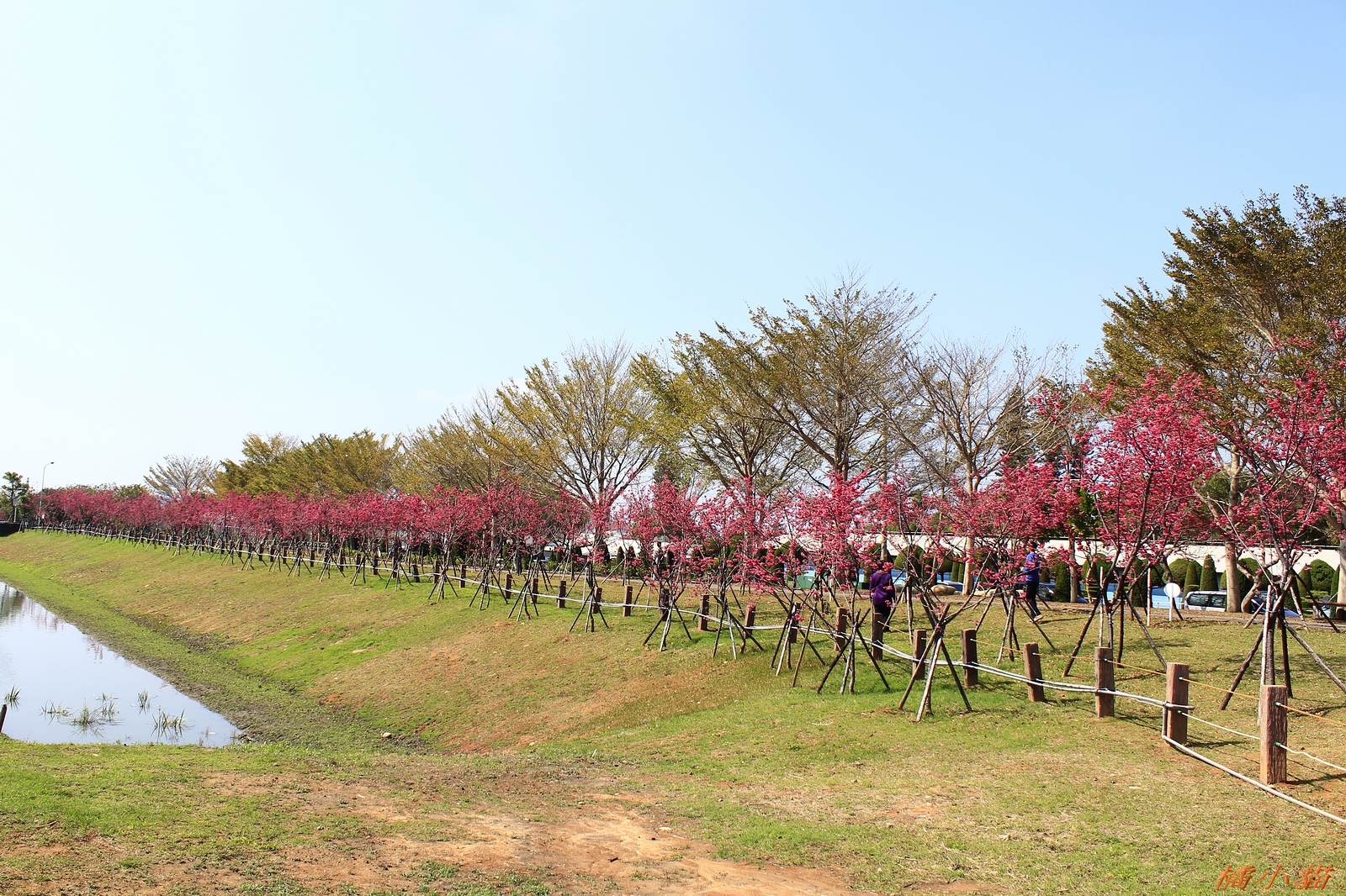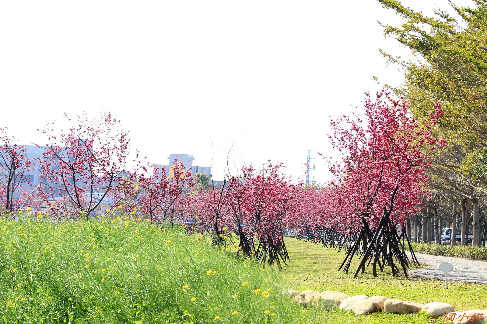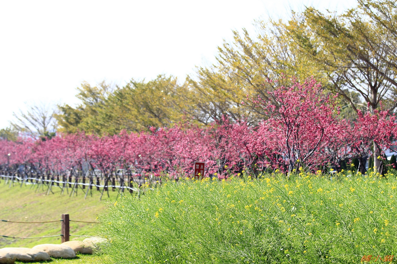 這裡看起來像個公園,規劃得不錯喔,八重櫻看起來還年輕,但開得蠻好的,假以時日也會很壯大的。 油菜花、櫻花、小葉欖仁很有層次,很美。
