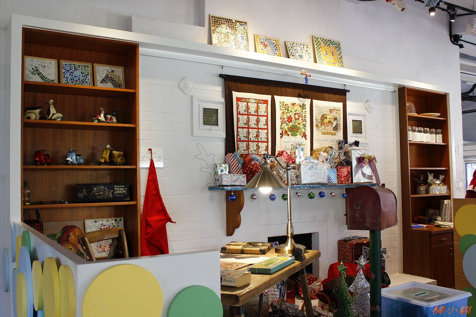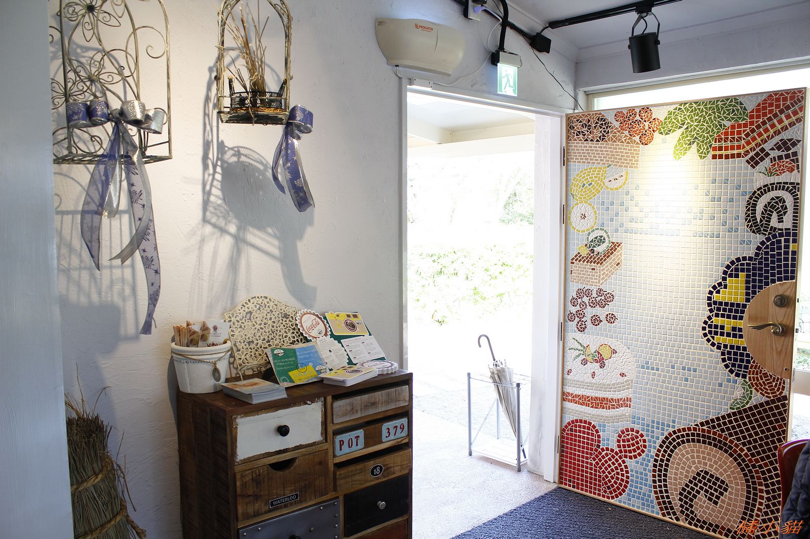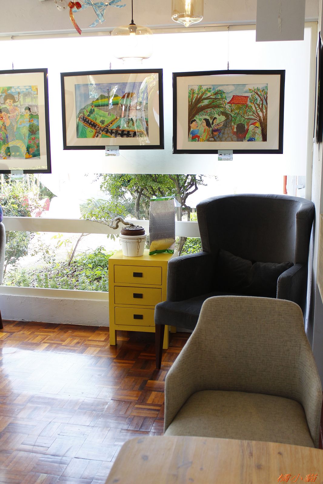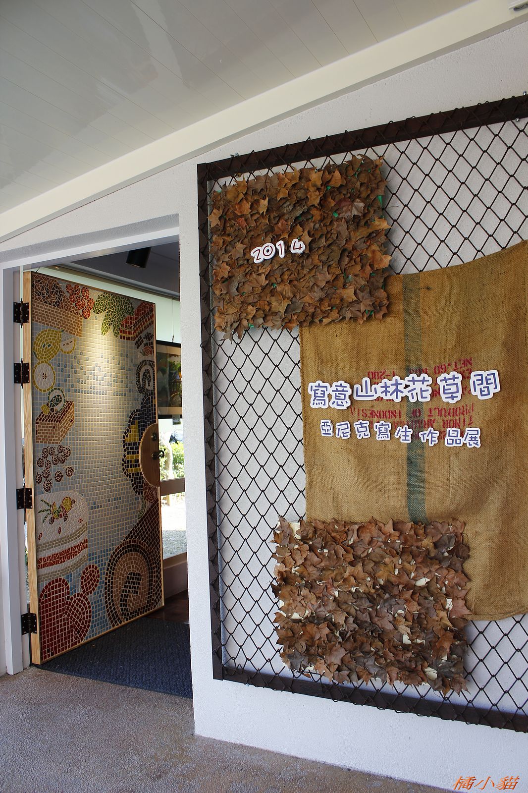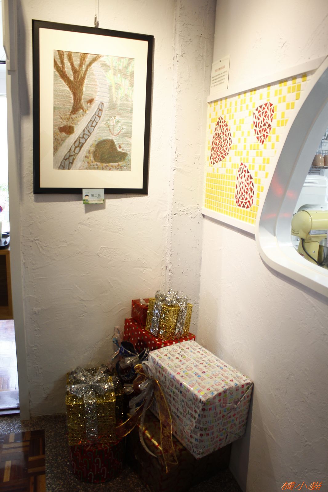 這兒的舊美軍宿舍總算整理起來了 荒廢好久一段時間 很可惜 馬賽克拼貼的門 真有創意 天花板吊著各種繽紛禮物 帶來歡樂氣氛 寫生展第一名作品 生動 有意境 ! 推 ~