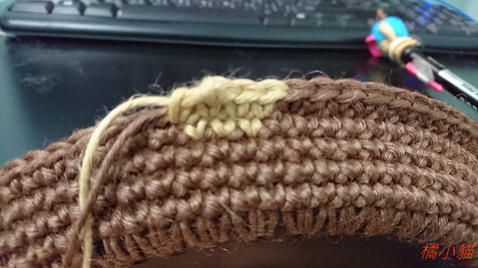 (就是 深色先鉤出一個小圈後 換色鉤另半針)
